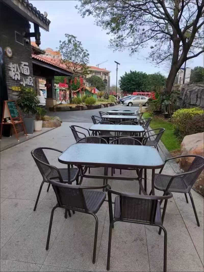 • 80 검정색 원형 테이블, 의자 4개 + 중형 우산