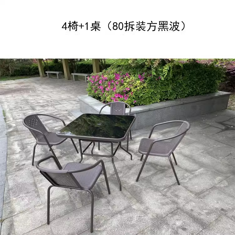 • 80 블랙 사각 테이블과 의자 4개 + 중형 우산