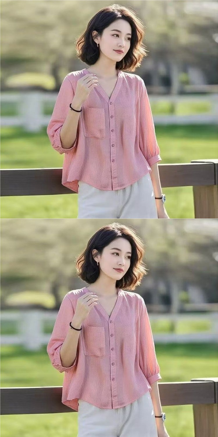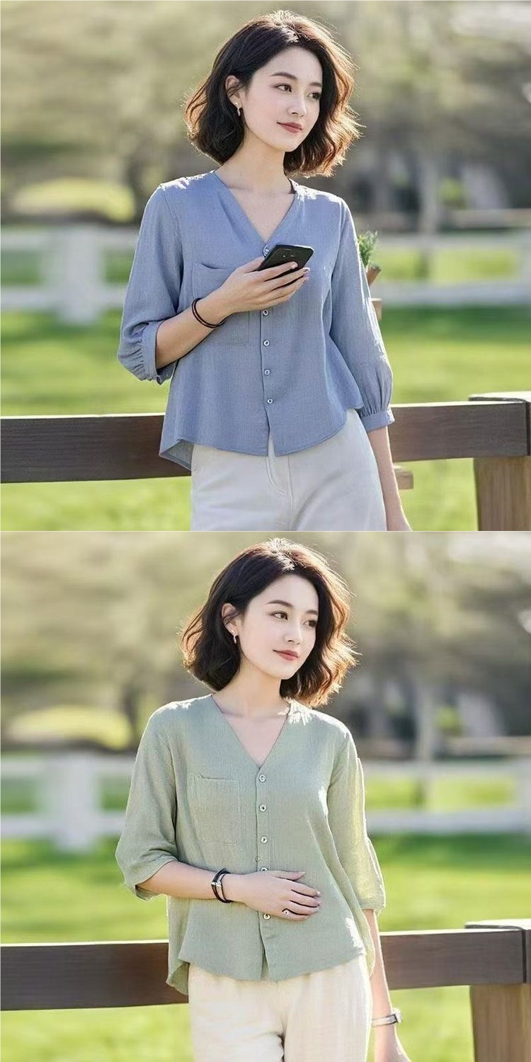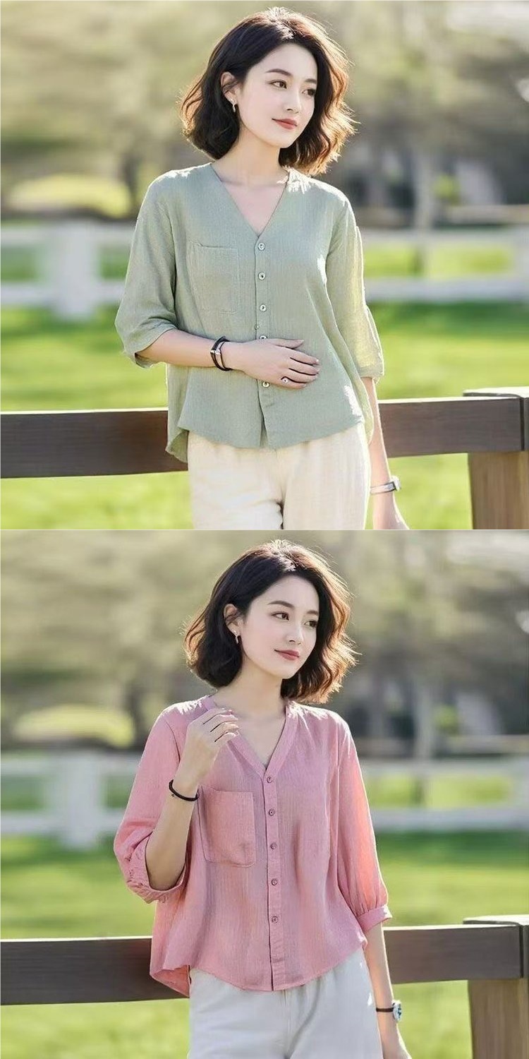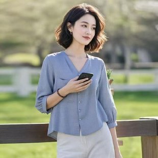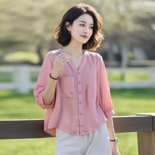 엄마 여름 쉬폰 미드슬리브 셔츠, 외국 스타일 반팔 티셔츠, 중국풍 셔츠 상의, 중노년 여성 상의스토어 가기