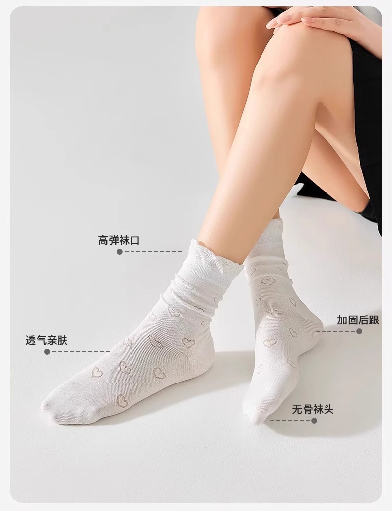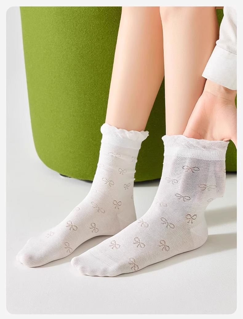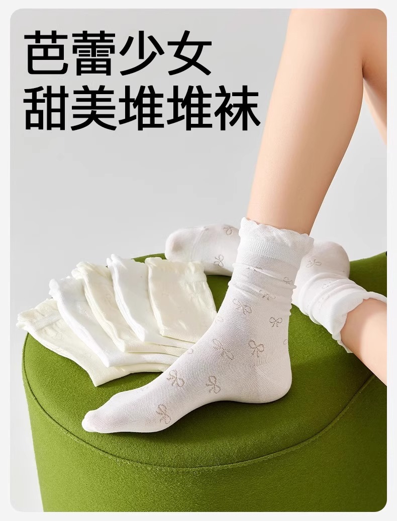 양말 여성 여름 얇은 발레 바람 튜브 양말 흰색 파일 단색 활 뼈없는 2025 새로운 폭발