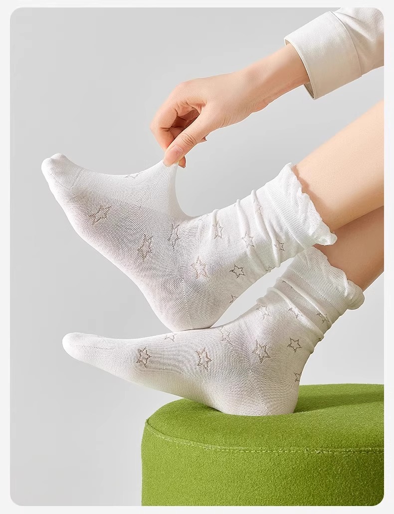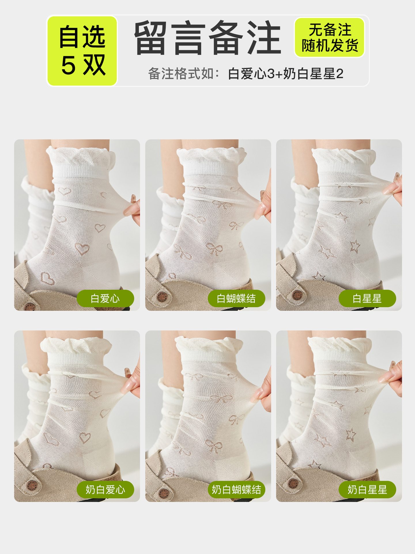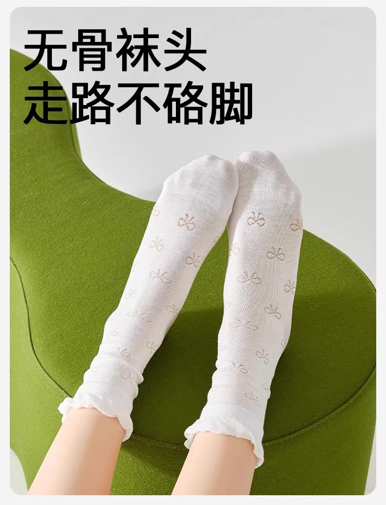 양말 여성 여름 얇은 발레 바람 튜브 양말 흰색 파일 단색 활 뼈없는 2025 새로운 폭발스토어 가기
