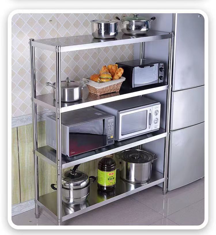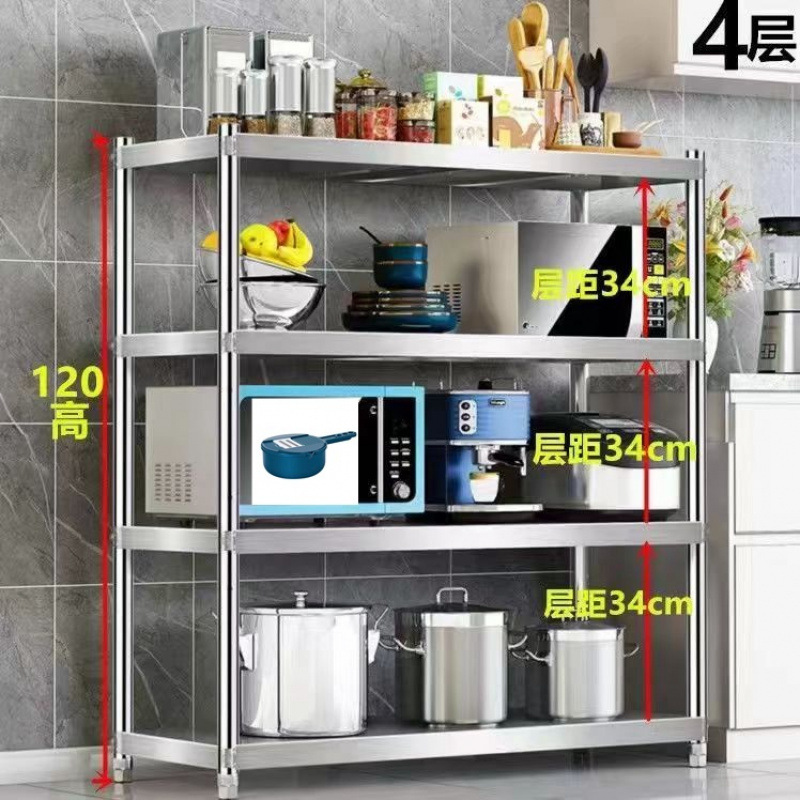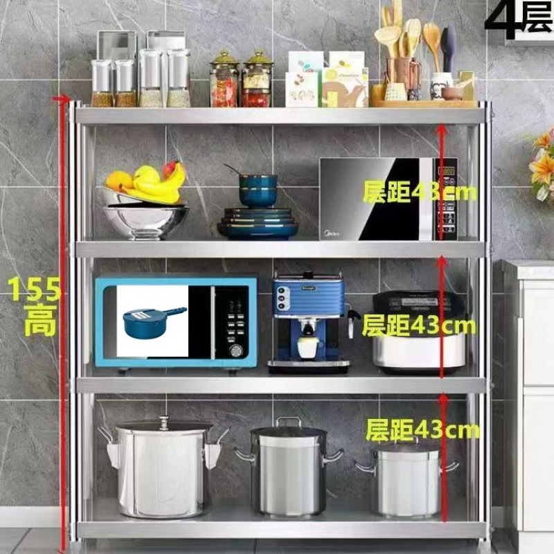 스테인레스 스틸 주방 선반 보관 랙 바닥에 놓인 다층 보관 랙 전자 레인지 랙 4 층 5 층 선반스토어 가기