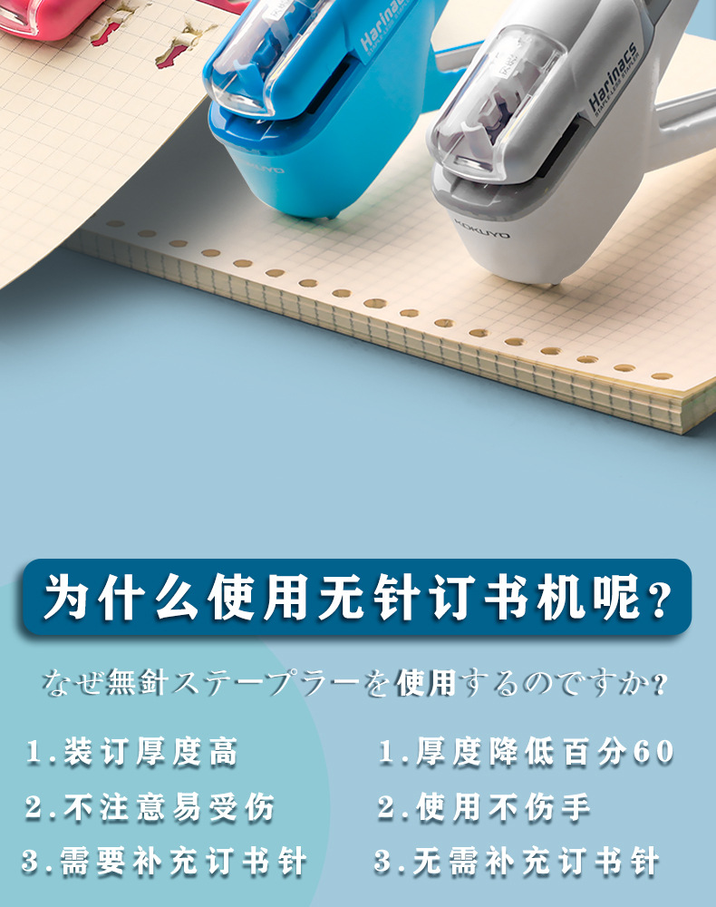 스테이플리스 학생용 스테이플러 일본산 무료 미니 양각 대형 스테이플리스 소형 문구 사무용