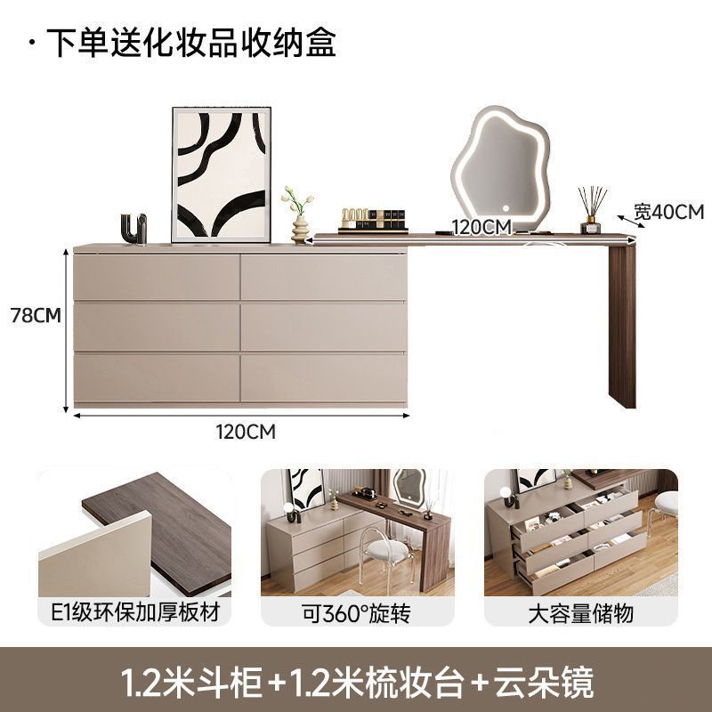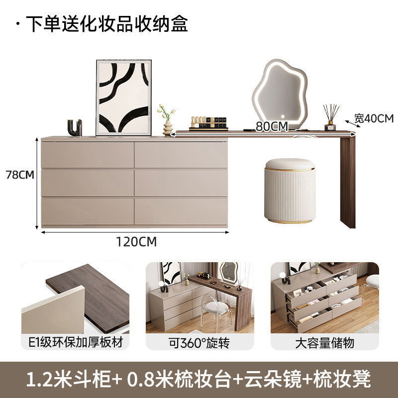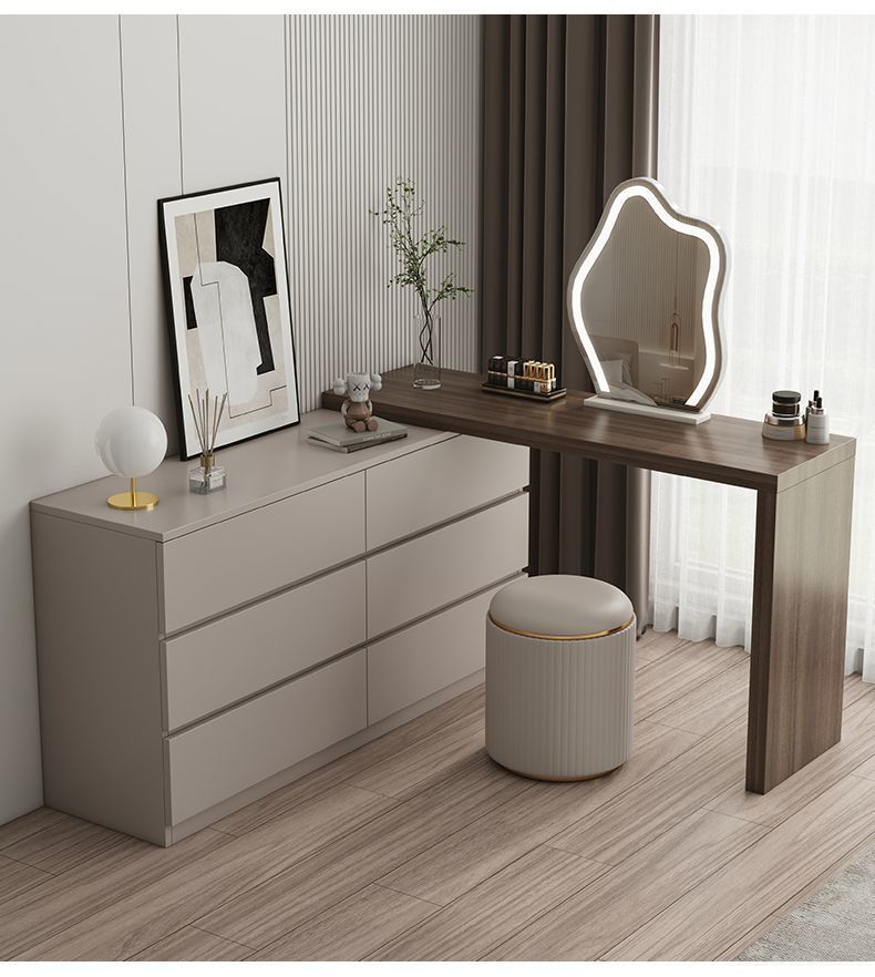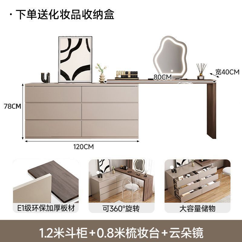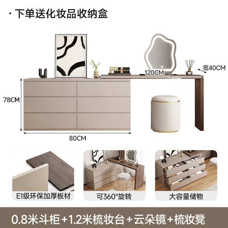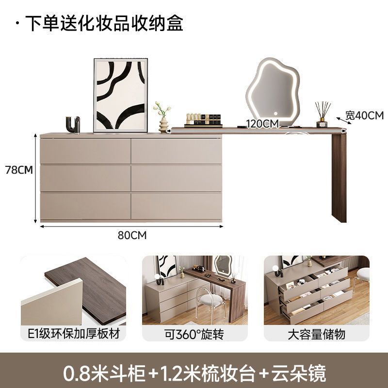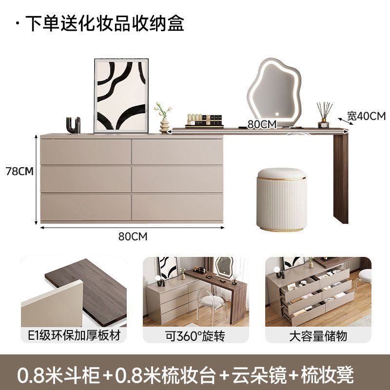 고화질 거울 화장대 및 서랍장 일체형 홈 침실 현대식 단순 소형 아파트 개폐식 크림 풍화