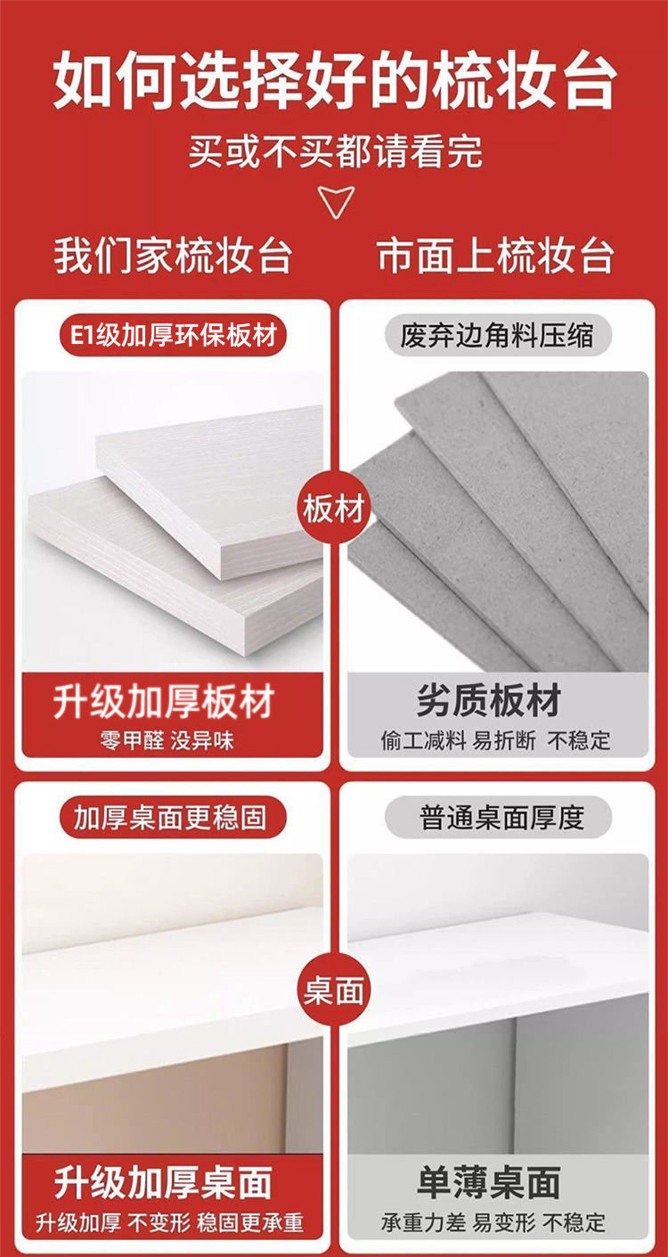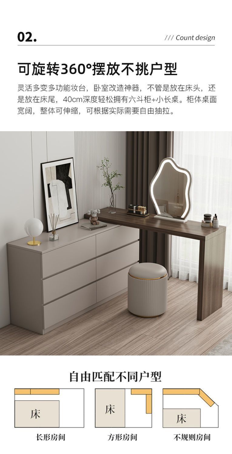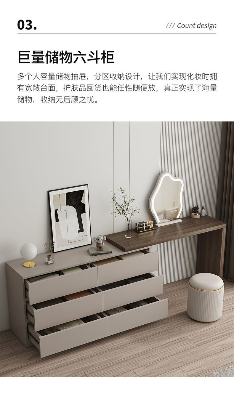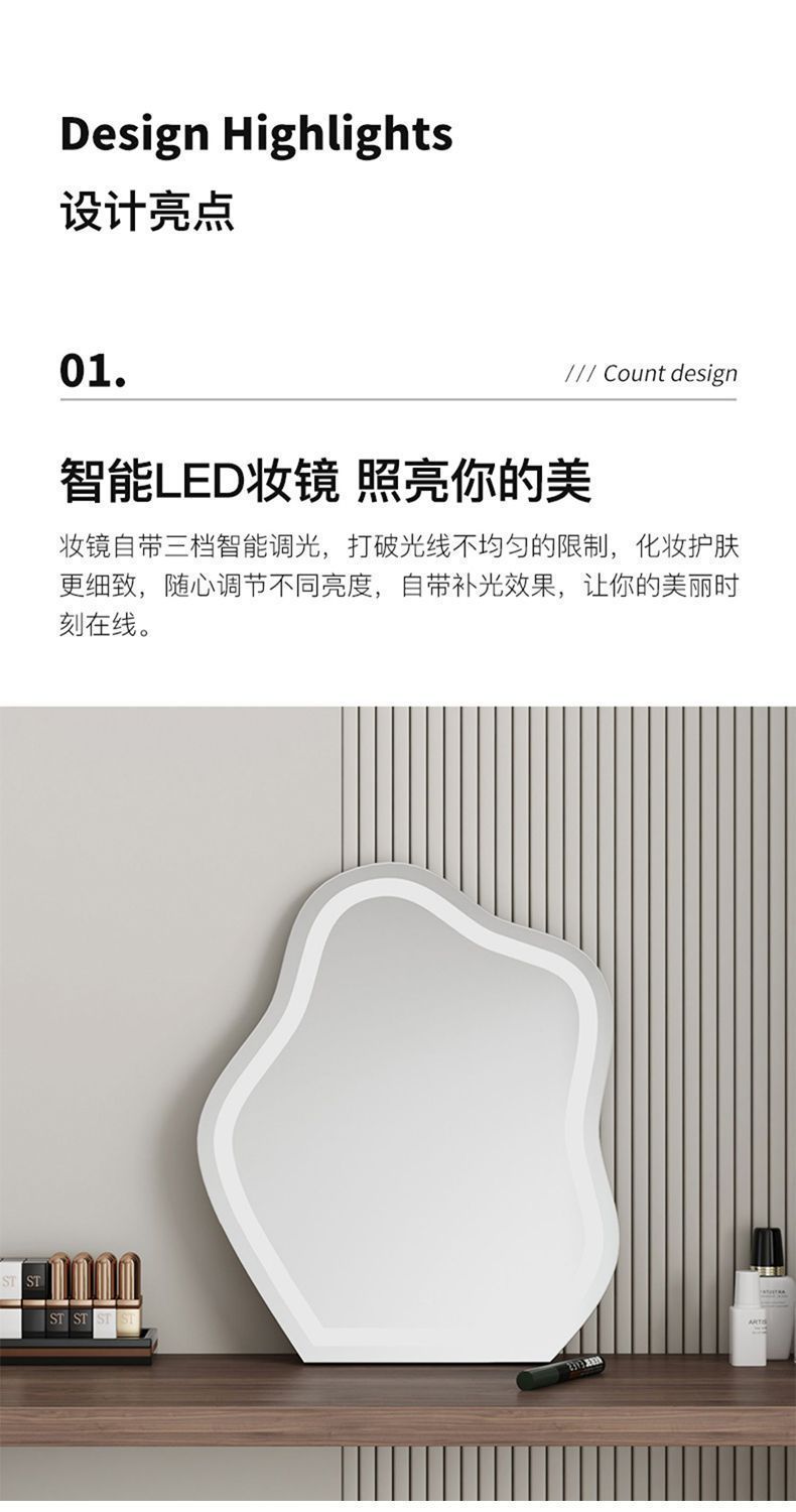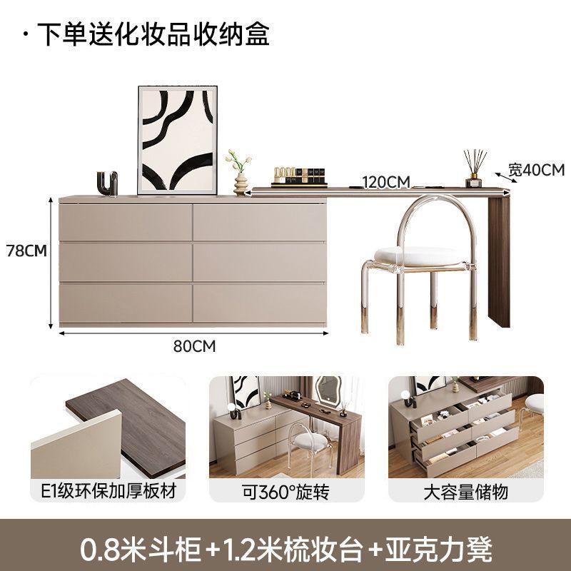 고화질 거울 화장대 및 서랍장 일체형 홈 침실 현대식 단순 소형 아파트 개폐식 크림 풍화