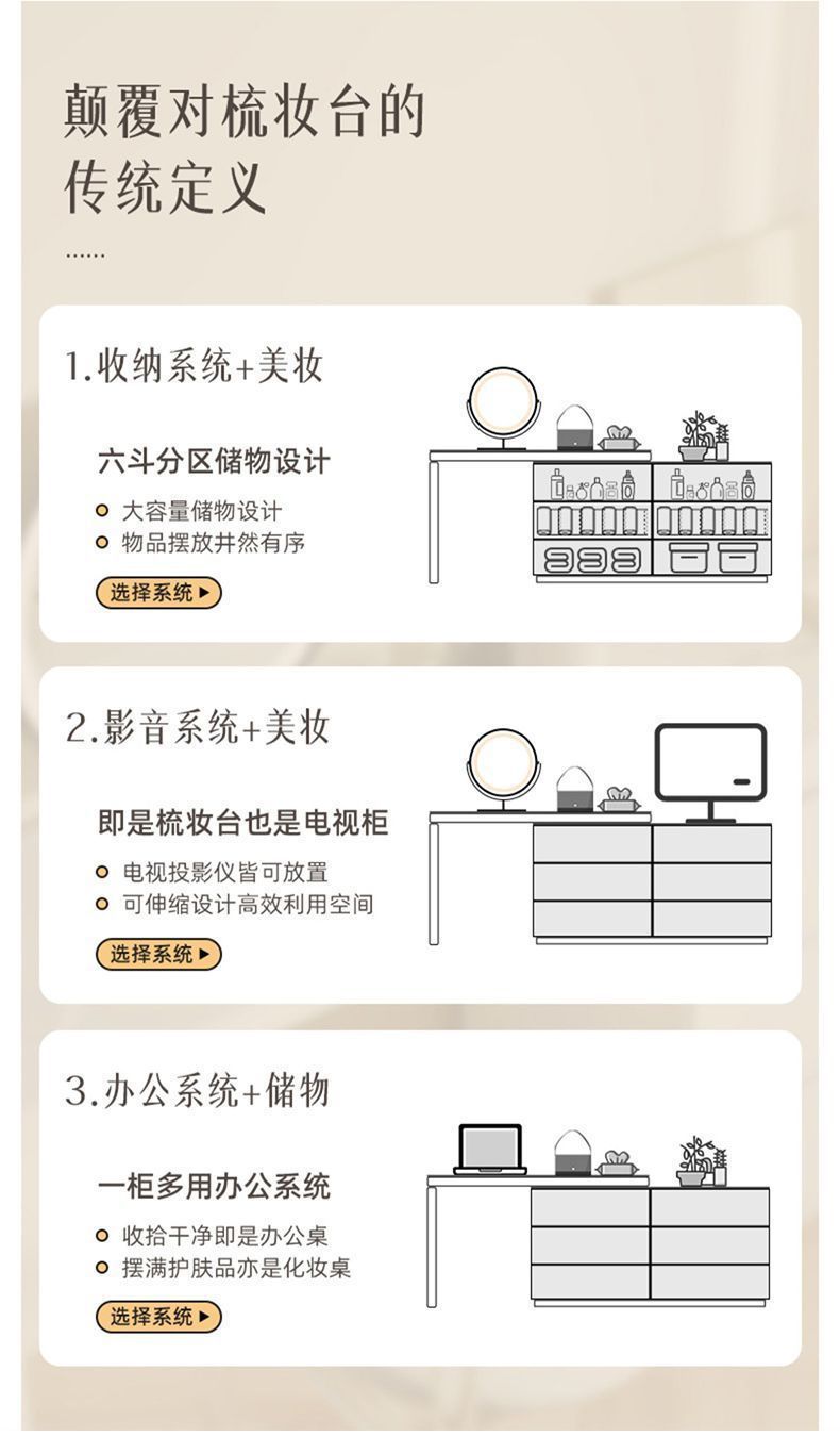 • 80 서랍장 + 화장대 120 + 스툴 [강력한 수납]