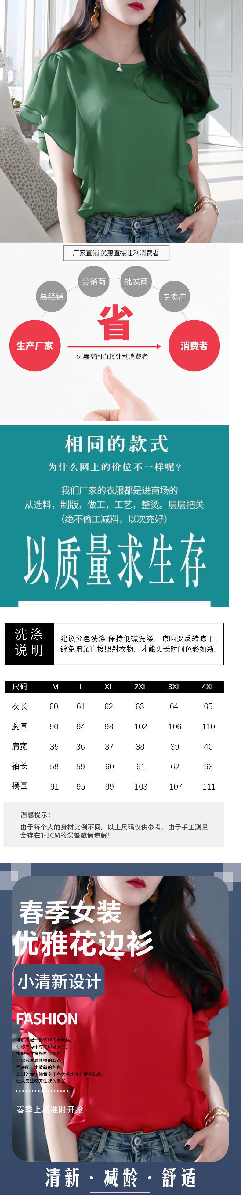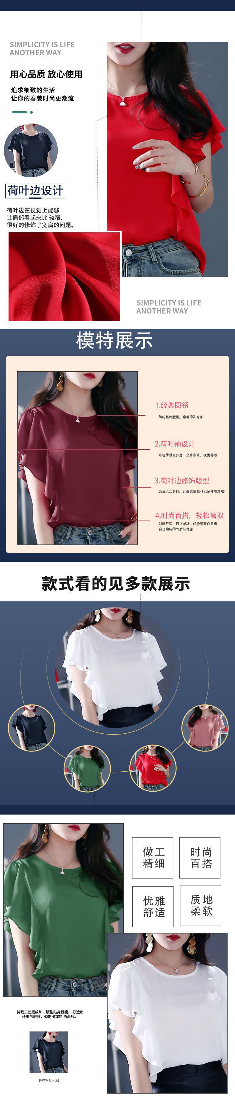 우아한 러플 쉬폰 셔츠 반팔 여름 신작 대형 루즈 슬리밍 티셔츠 여성용 배 커버 탑스토어 가기