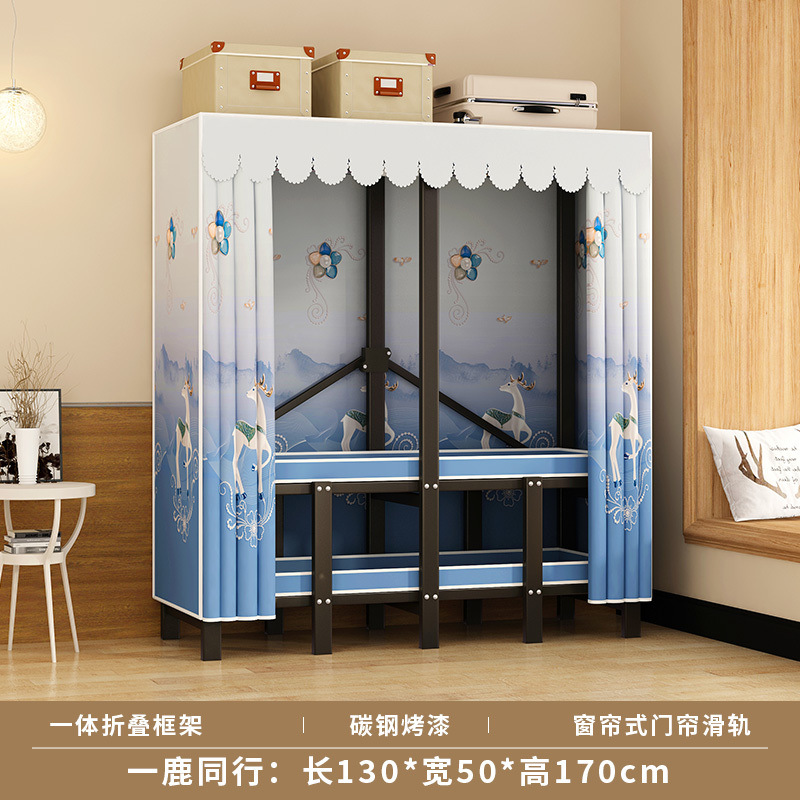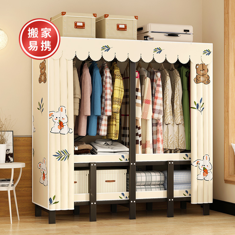 설치가 필요 없는 옷장, 두꺼운 접이식 간이 천 옷장, 가정용 침실 임대실, 전체 강철 프레임, 견고하고 내구성이 뛰어난 옷장