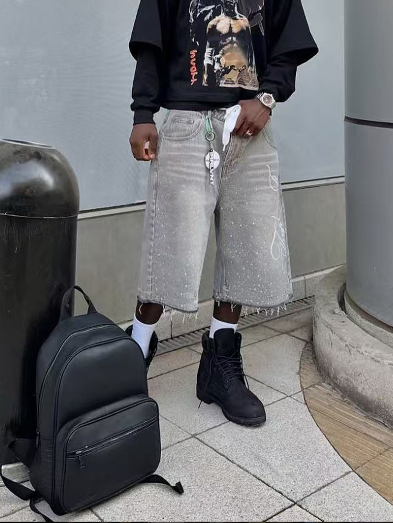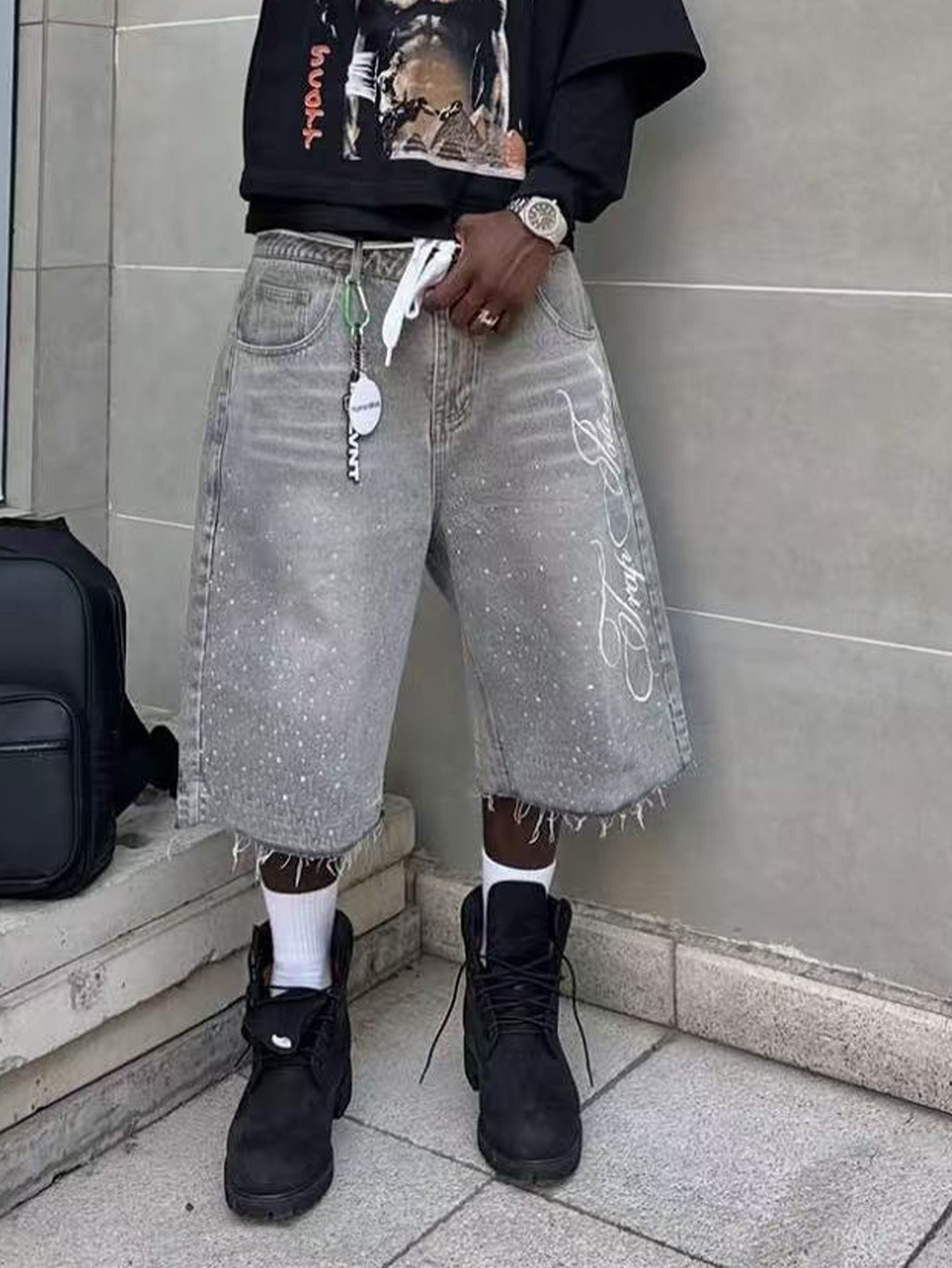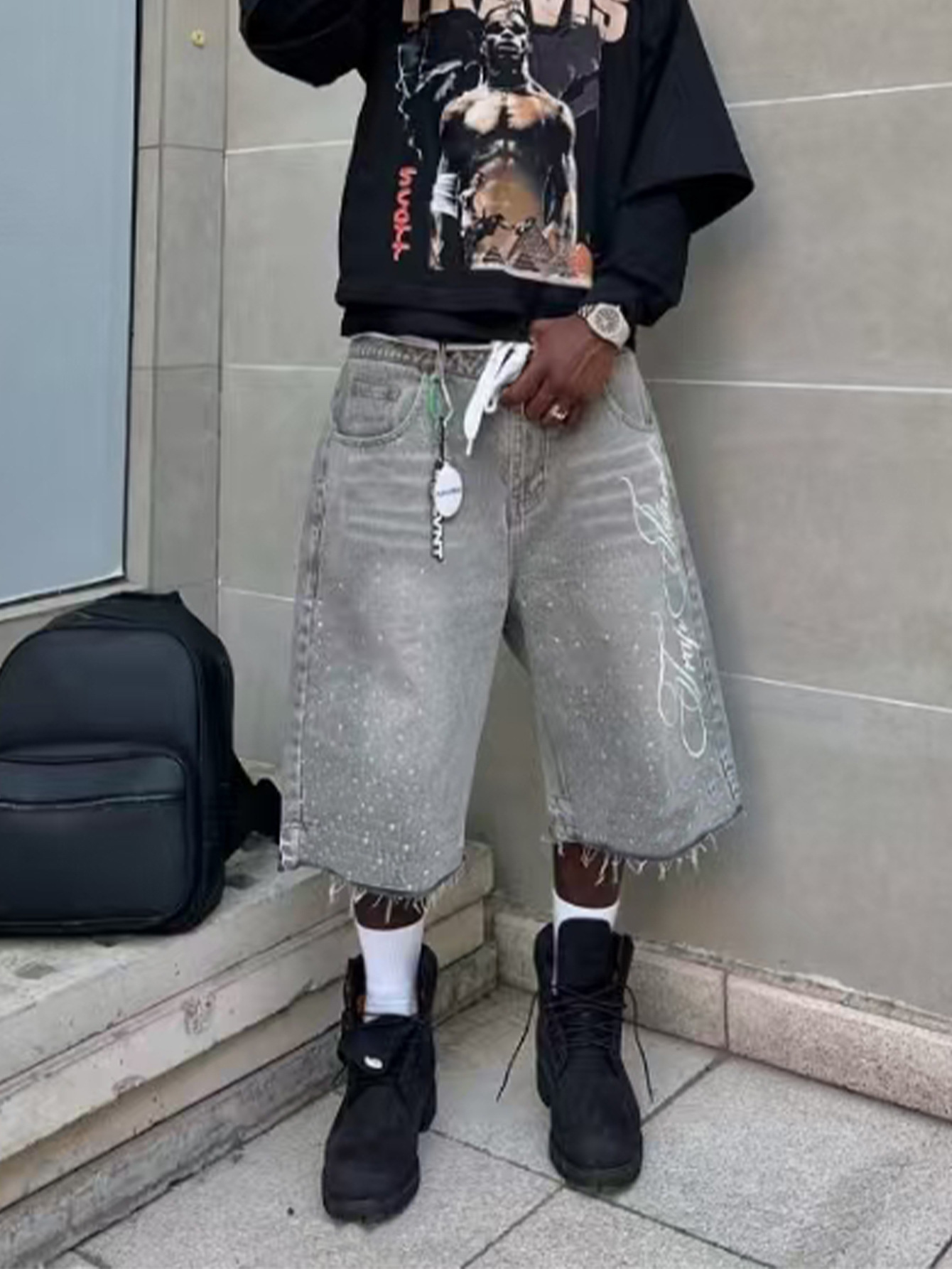 TEMU 외국 무역 미국 레트로 워싱 하이 스트리트 데님 반바지 남녀공용 스트레이트 와이드 레그 루즈핏 캐주얼 다용도스토어 가기