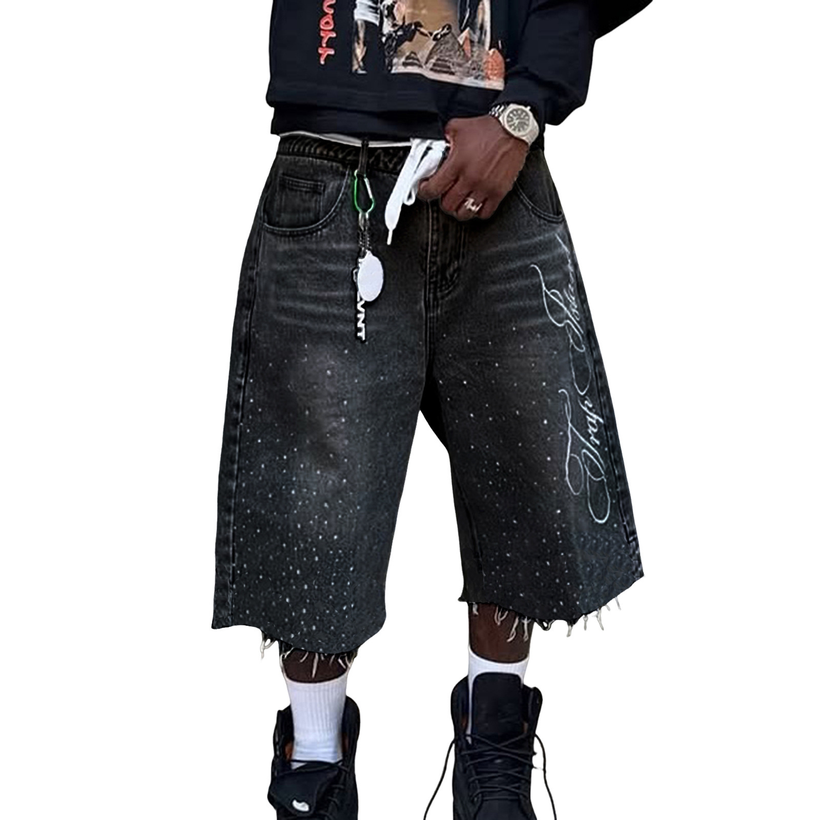 TEMU 외국 무역 미국 레트로 워싱 하이 스트리트 데님 반바지 남녀공용 스트레이트 와이드 레그 루즈핏 캐주얼 다용도