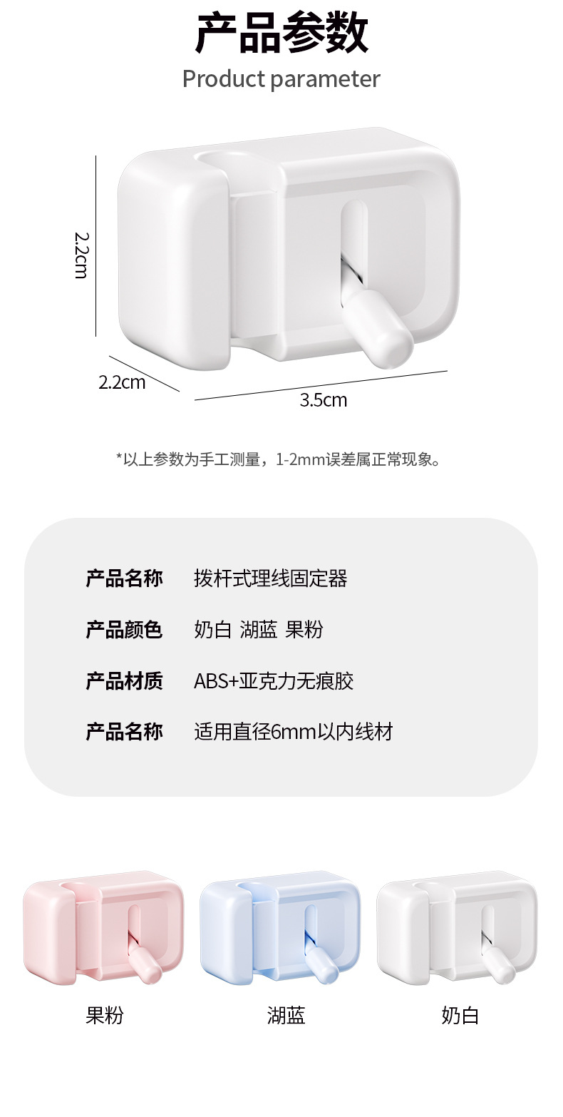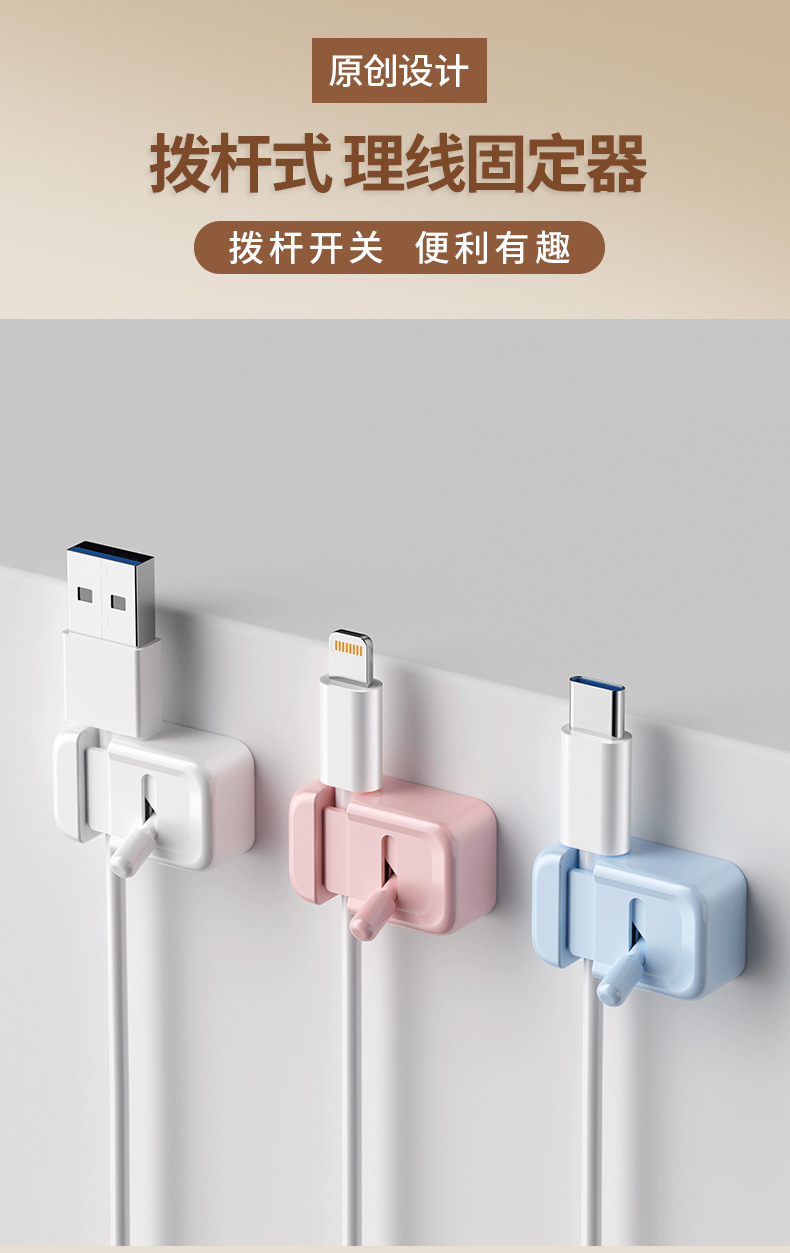 • 商品名称:拨杆式理线器桌面车载数据线充电线收纳固定器走线卡扣插头-湖蓝(单个装)