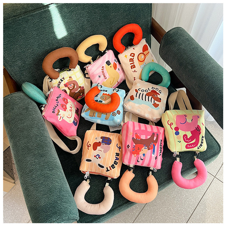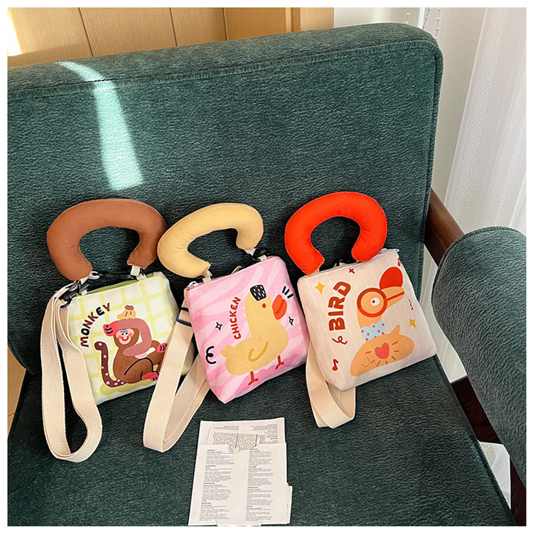 여자 아기 휴대용 어깨 가방 숲 스타일 작은 로리 만화 어린이 가방 패션 소녀 인쇄 천 가방 크로스 바디 가방스토어 가기