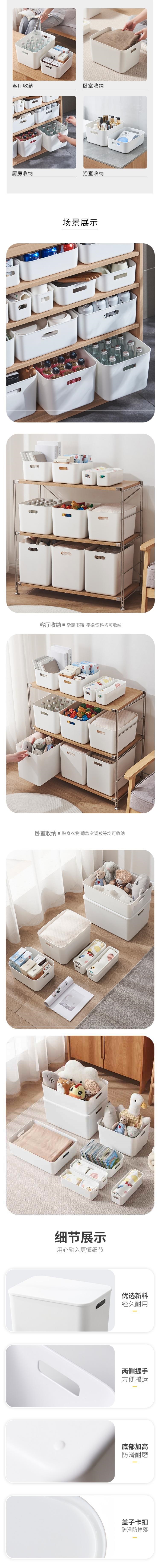 두꺼운 보관 상자 잡다한 보관 바구니 주방 캐비닛 플라스틱 보관 상자 직사각형 흰색 보관 바구니 책상 프레임스토어 가기