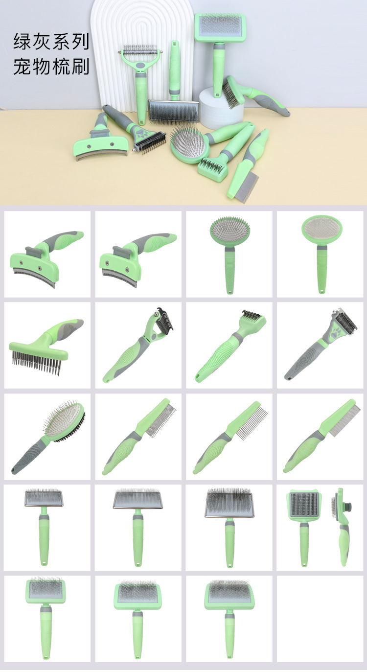 반려견과 고양이를 위한 녹색 및 회색 청소 및 미용 털이 풍성한 바늘 빗, 매듭 빗, 헤어 빗, 제모 및 제모 칼 도매
