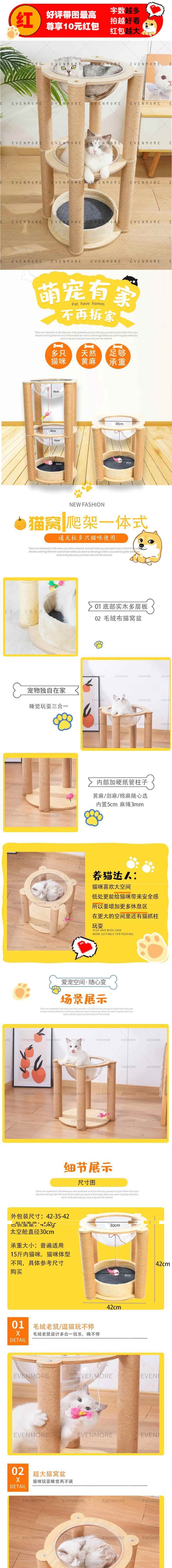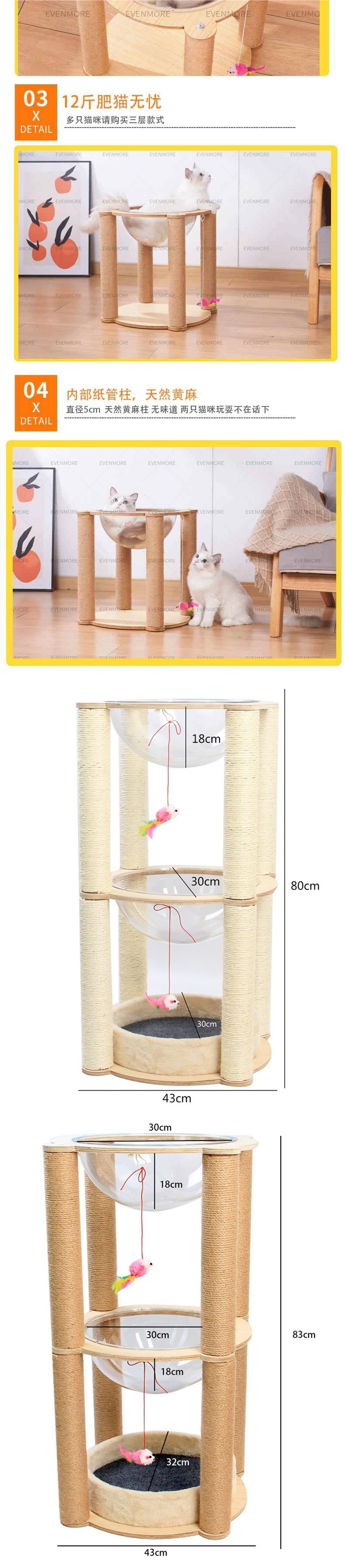 다층 이중 우주 캡슐 고양이 클라이밍 프레임, 고양이 둥지, 고양이 빌라, 목조 대형 3층 고양이 프레임, 스크래치 컬럼, 발톱 연삭 고양이 장난감스토어 가기