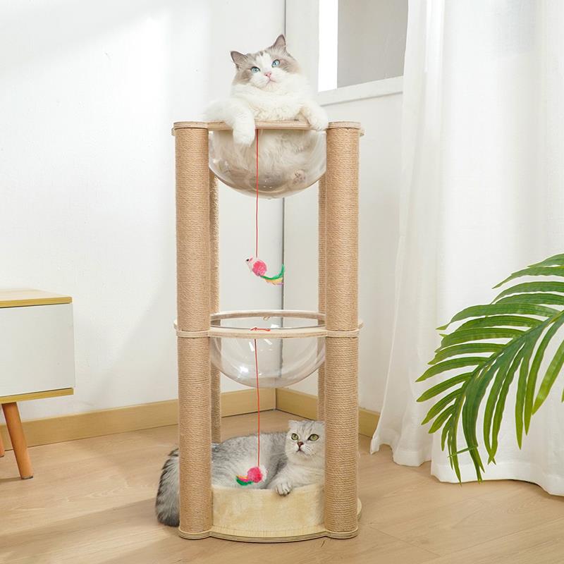 다층 이중 우주 캡슐 고양이 클라이밍 프레임, 고양이 둥지, 고양이 빌라, 목조 대형 3층 고양이 프레임, 스크래치 컬럼, 발톱 연삭 고양이 장난감