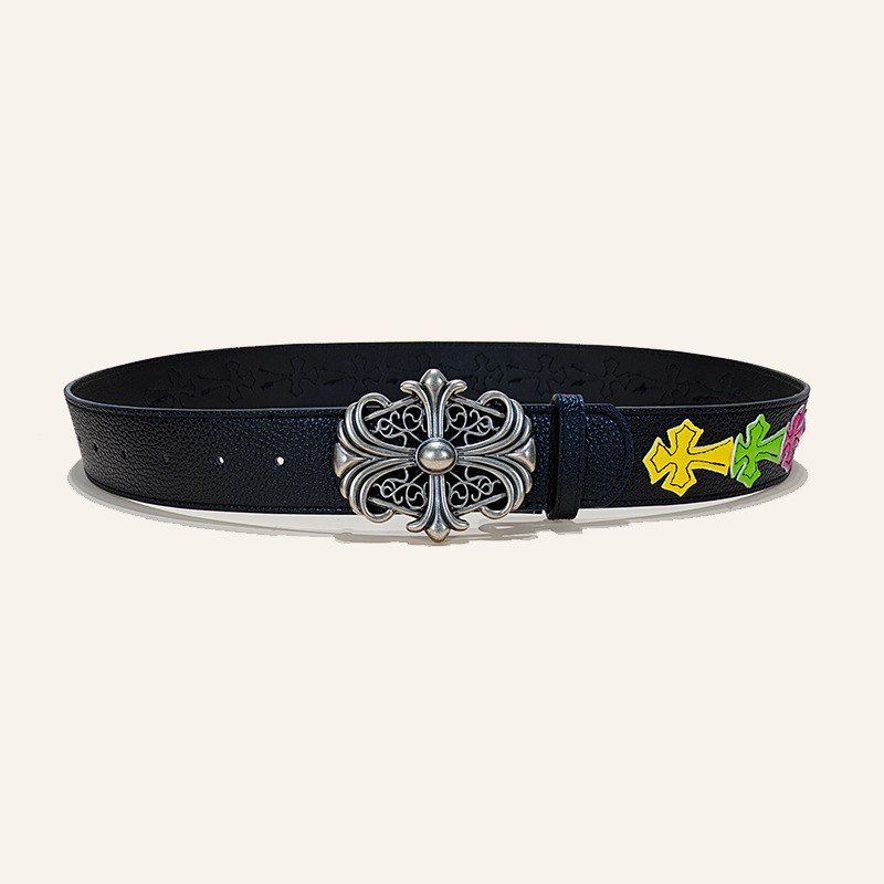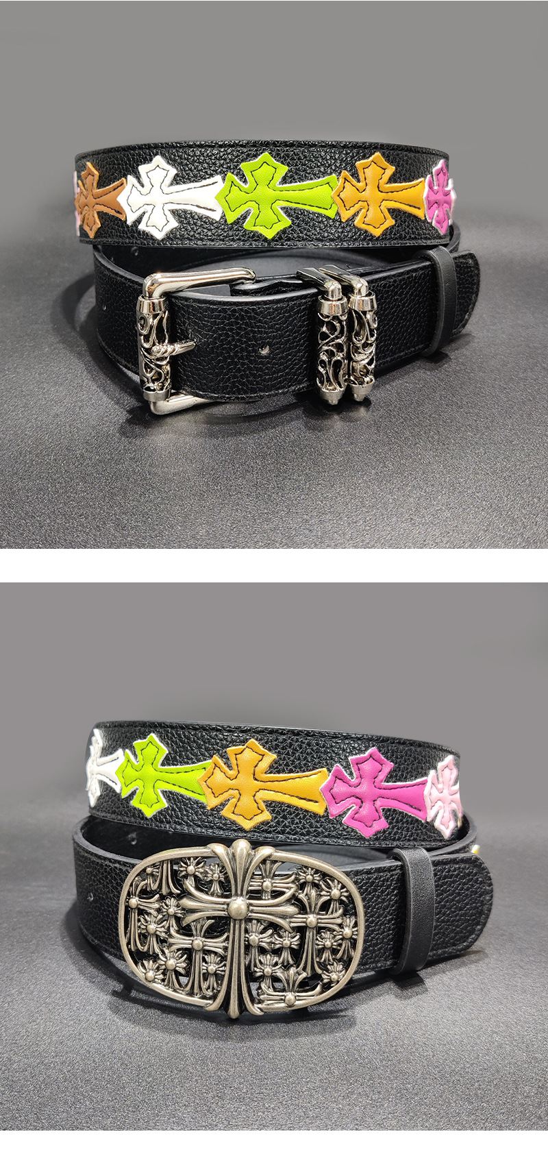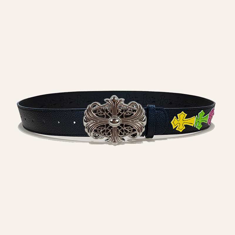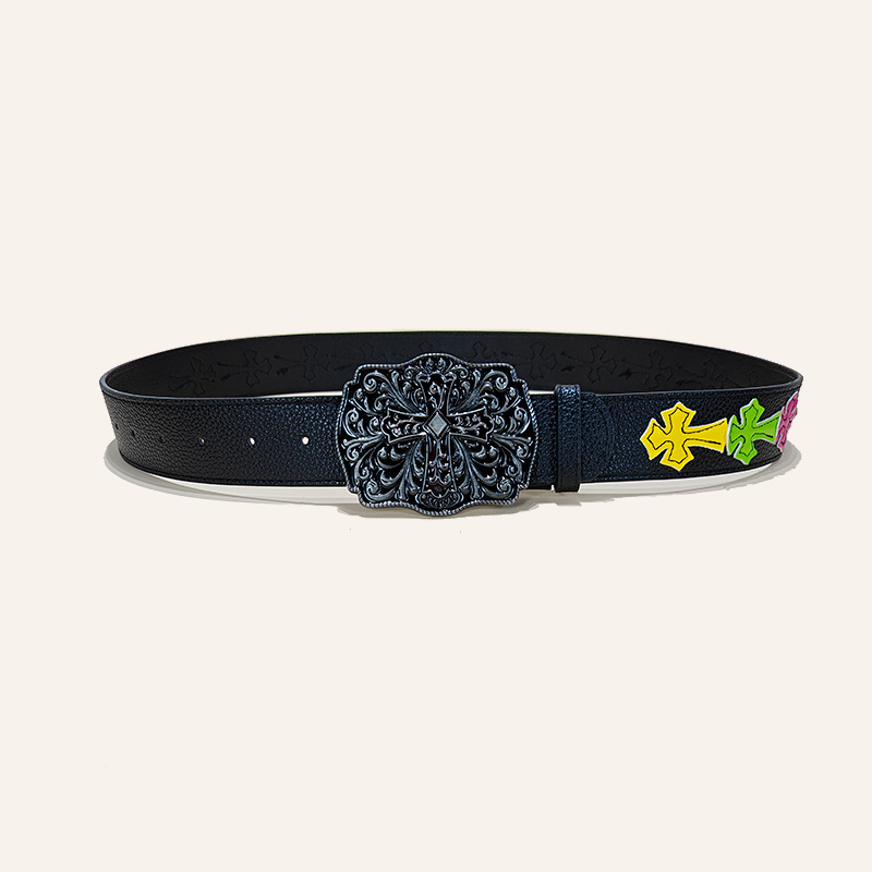 • C타입 : 3.8cm 디스트레스드 실버버클 + 블랙벨트 [컬러풀한 자수]