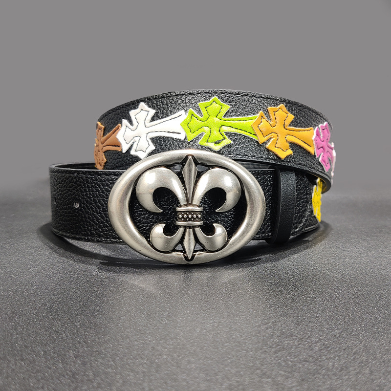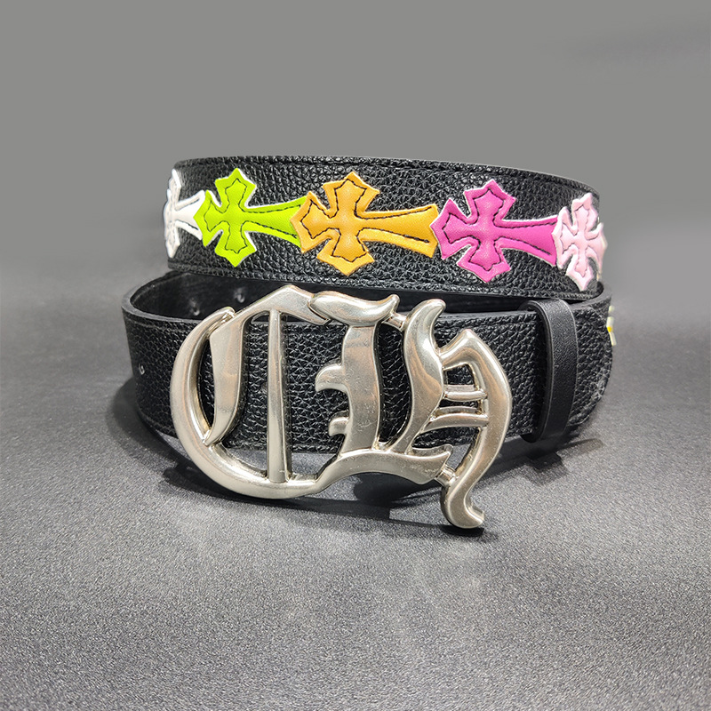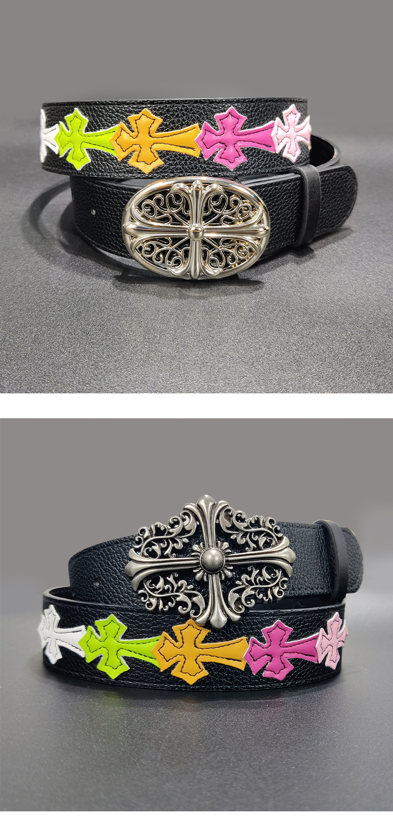 • H 스타일: 3.8cm 디스트레스드 실버 버클 + 블랙 벨트 [컬러 자수]