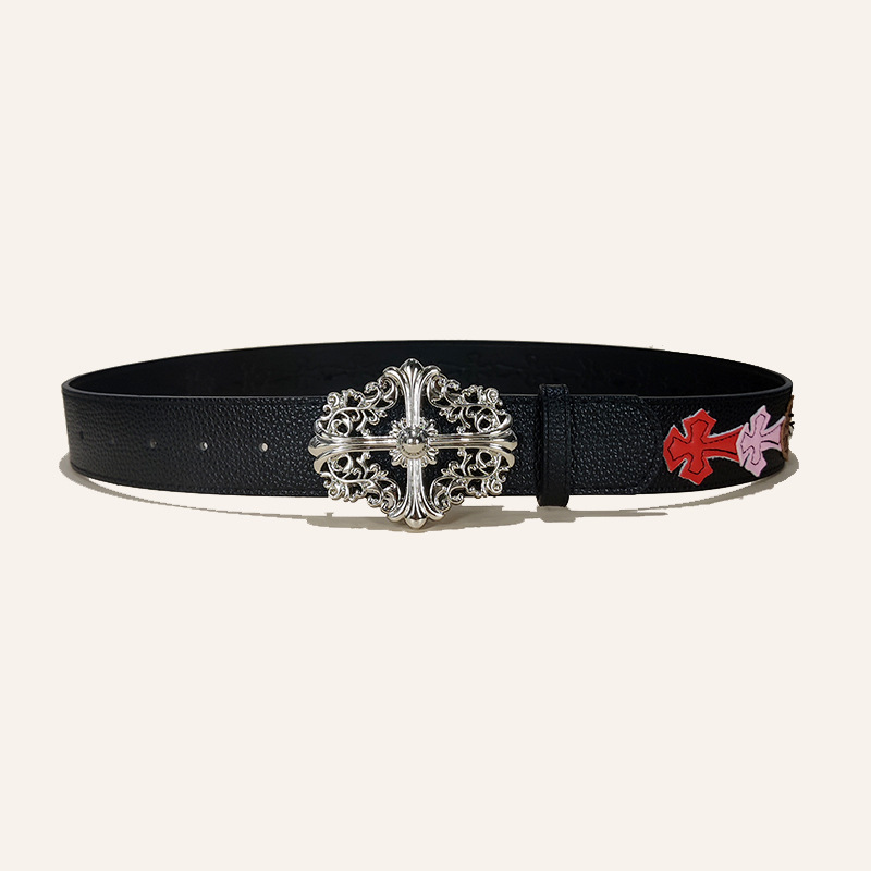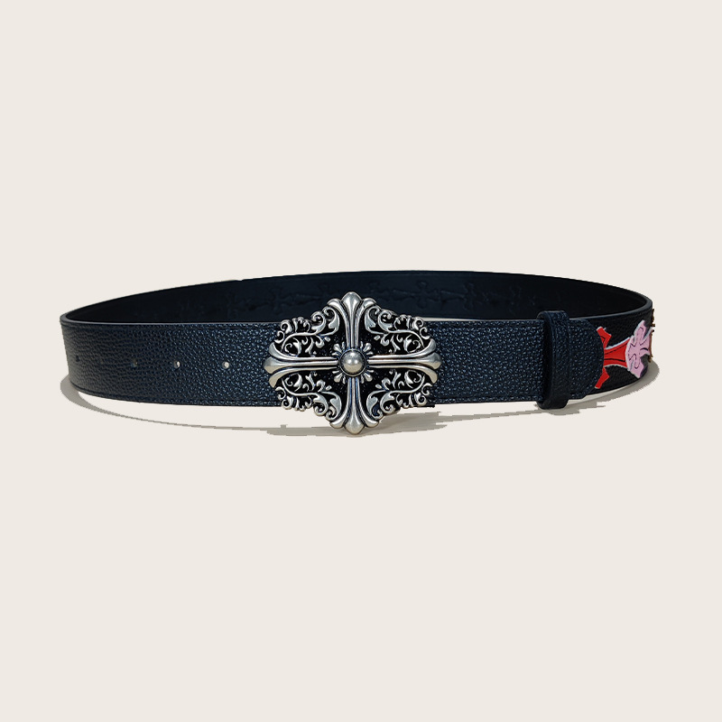 • 3.8cm 디스트레스드 실버 크로스 버클 벨트