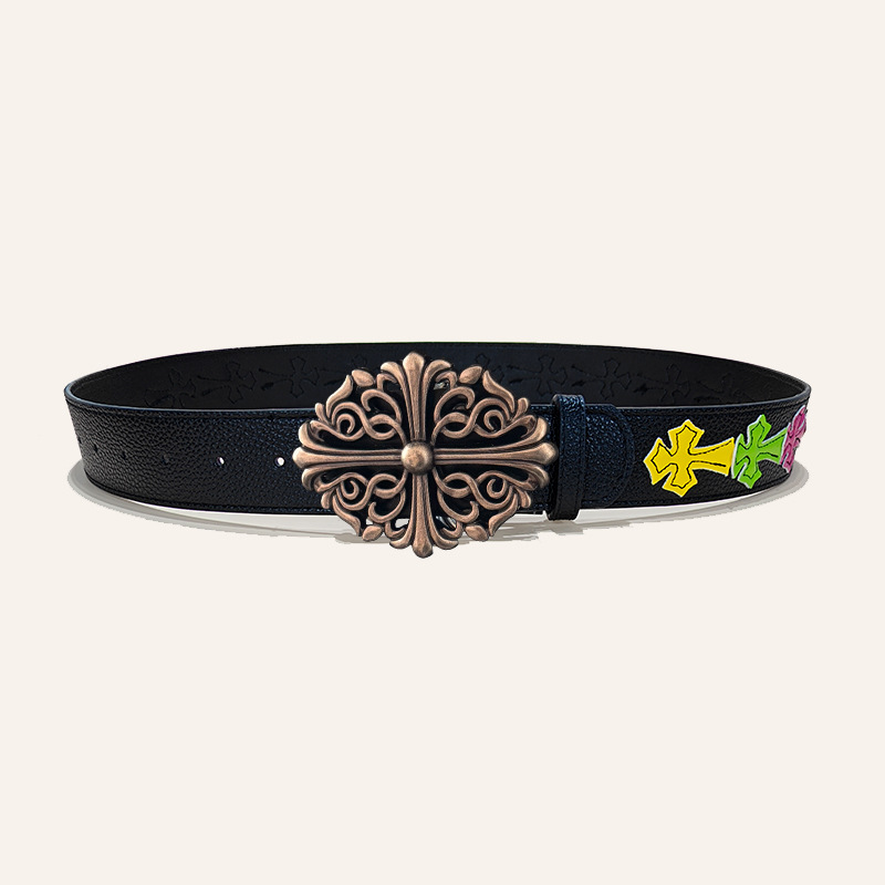 • H 스타일 : 3.8cm 브론즈 골드 버클 + 블랙 벨트 [컬러 자수]