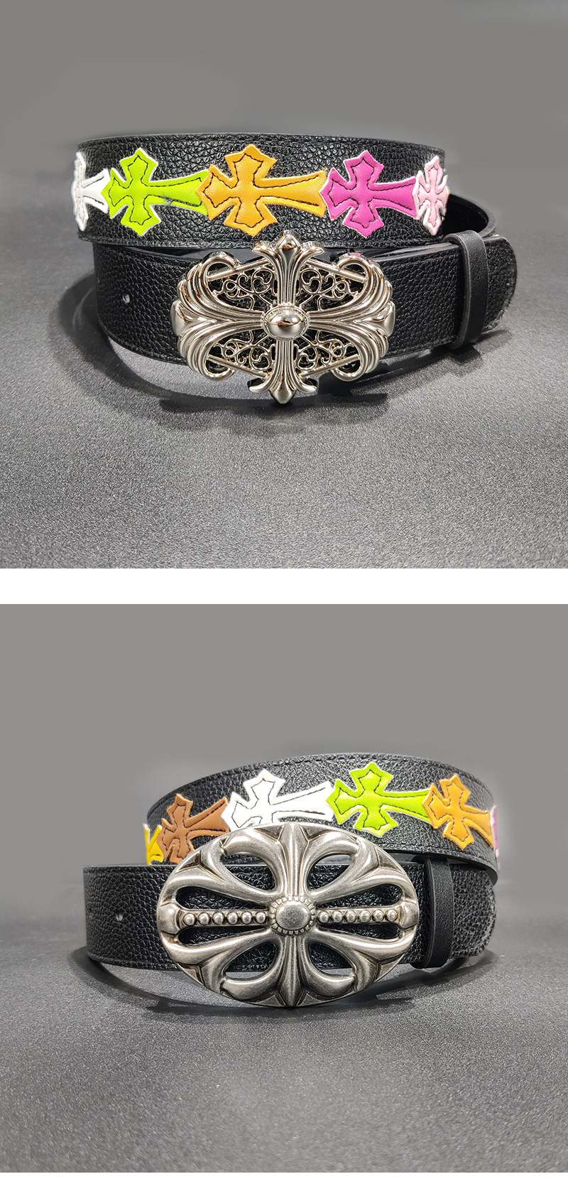 • 모델 G: 3.8cm 브라이트 실버 버클 + 블랙 벨트 [컬러 자수]