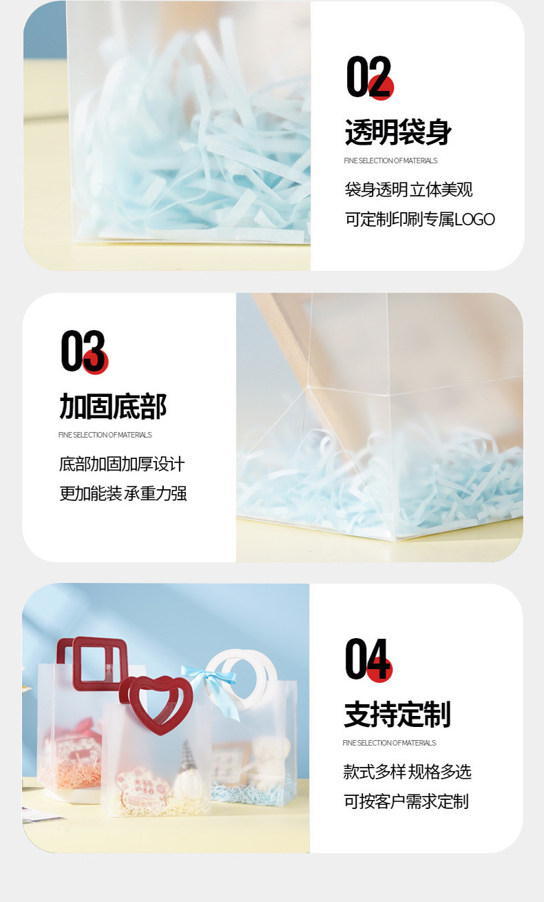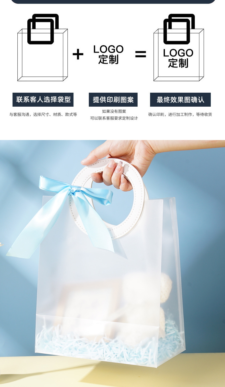재고 있음 PP 플라스틱 반투명 투명 핸드백 결혼식 사탕 선물 가방 고급 선물 가방 어린이 생일