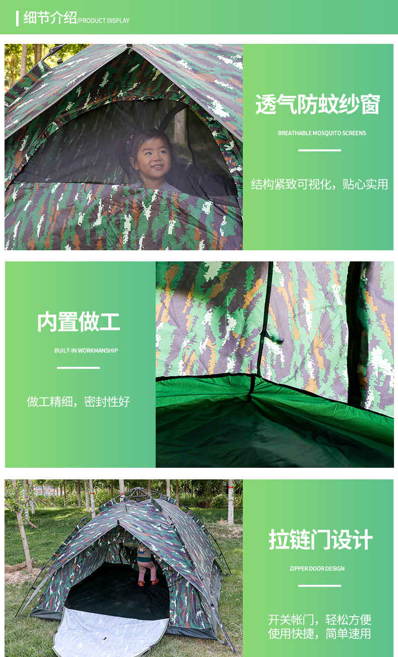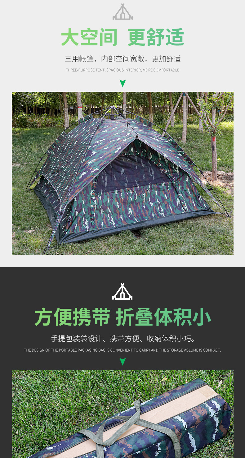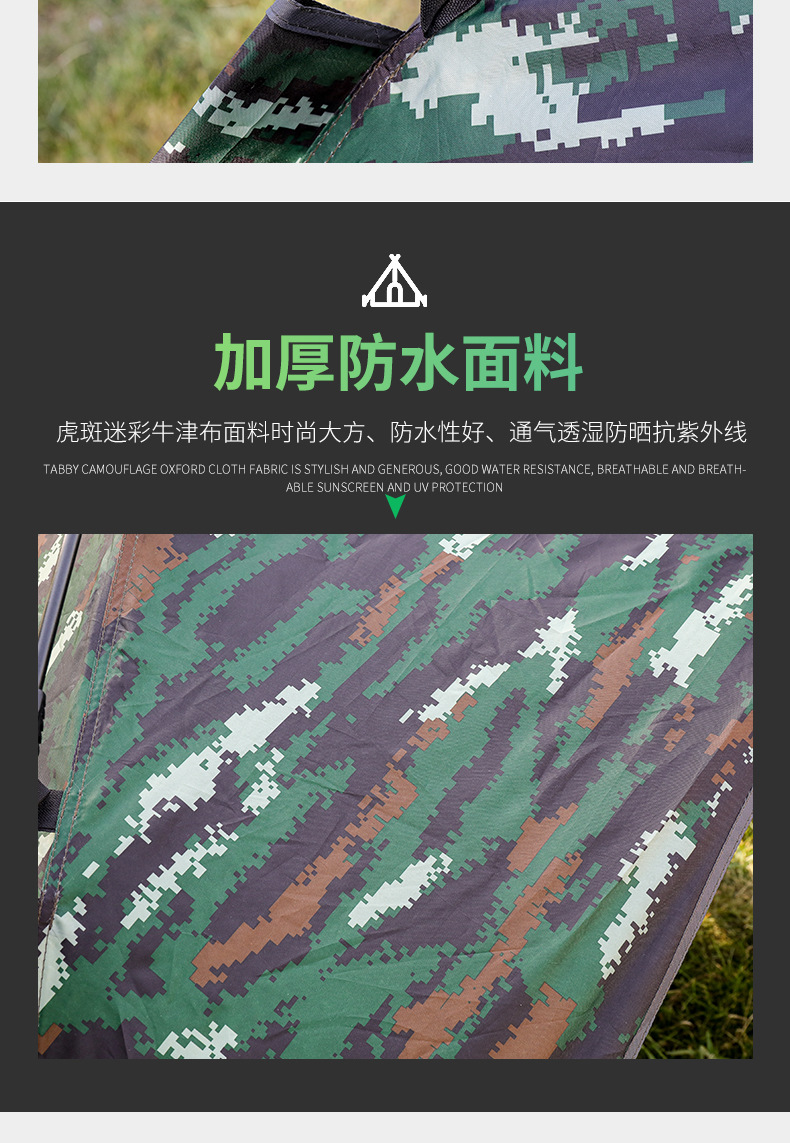 야외 캠핑 및 피크닉을 위한 이중 목적 위장 텐트, 넓은 공간, 방수 및 자외선 차단, 고품질 캠핑 자동 텐트스토어 가기