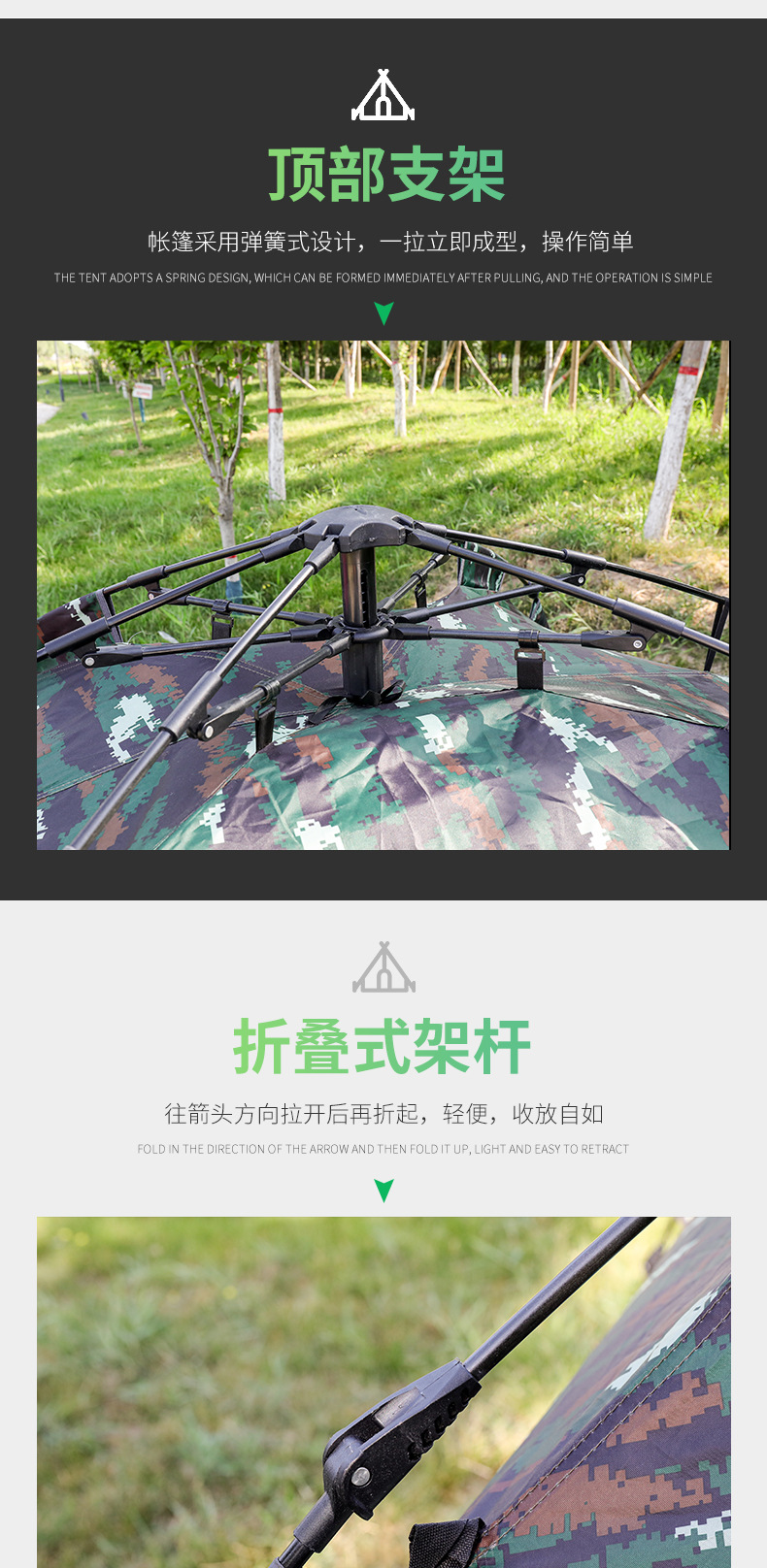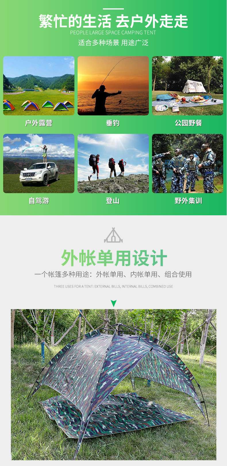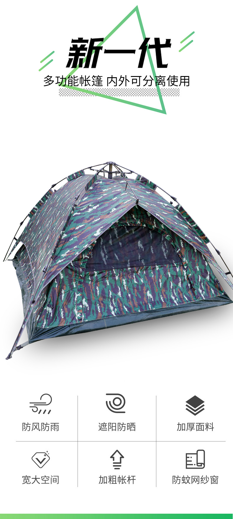 야외 캠핑 및 피크닉을 위한 이중 목적 위장 텐트, 넓은 공간, 방수 및 자외선 차단, 고품질 캠핑 자동 텐트스토어 가기