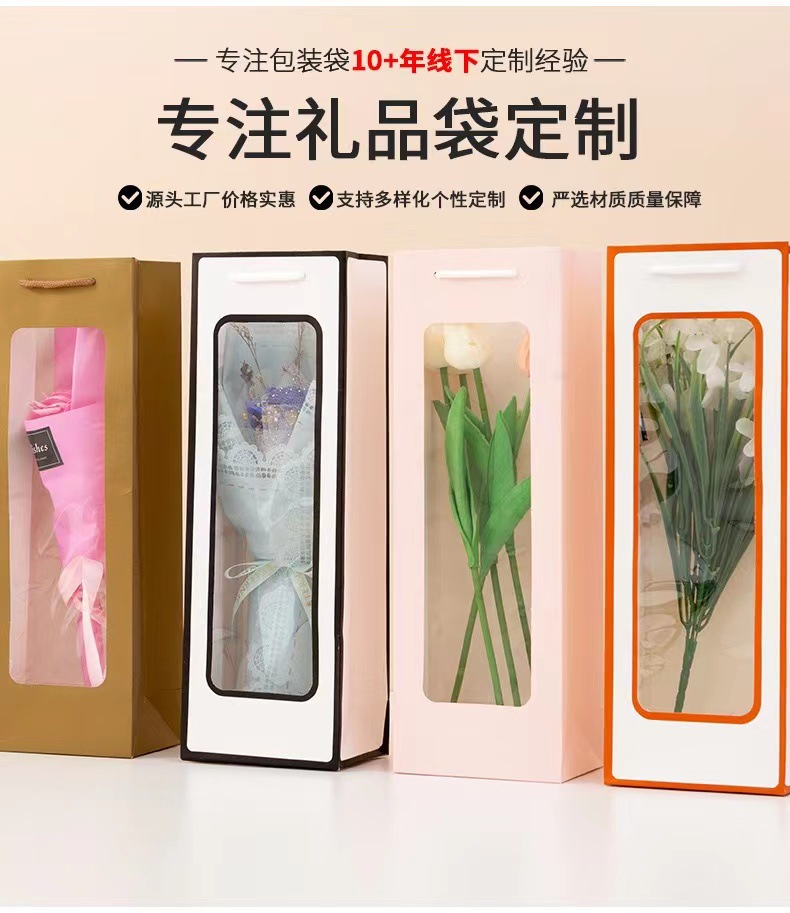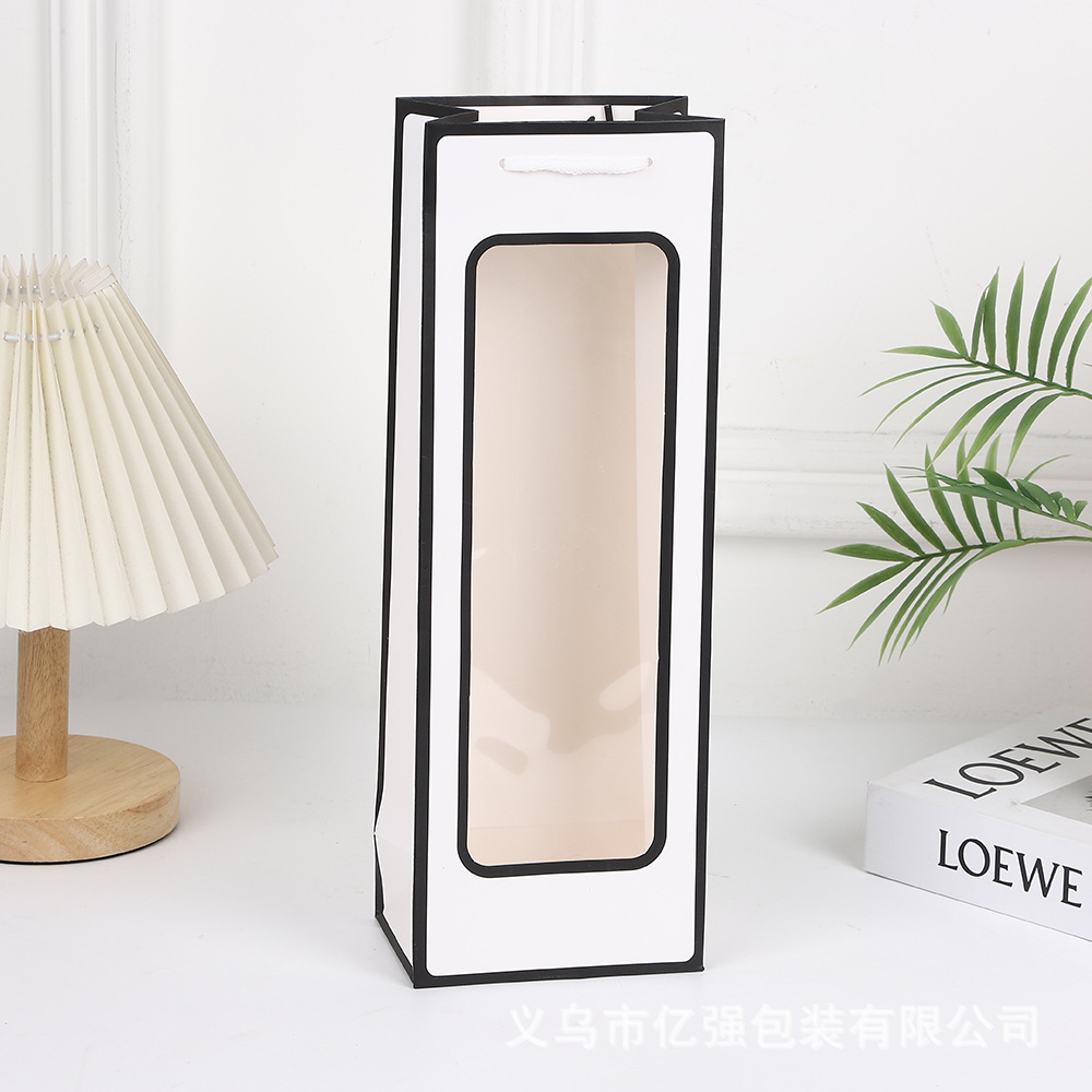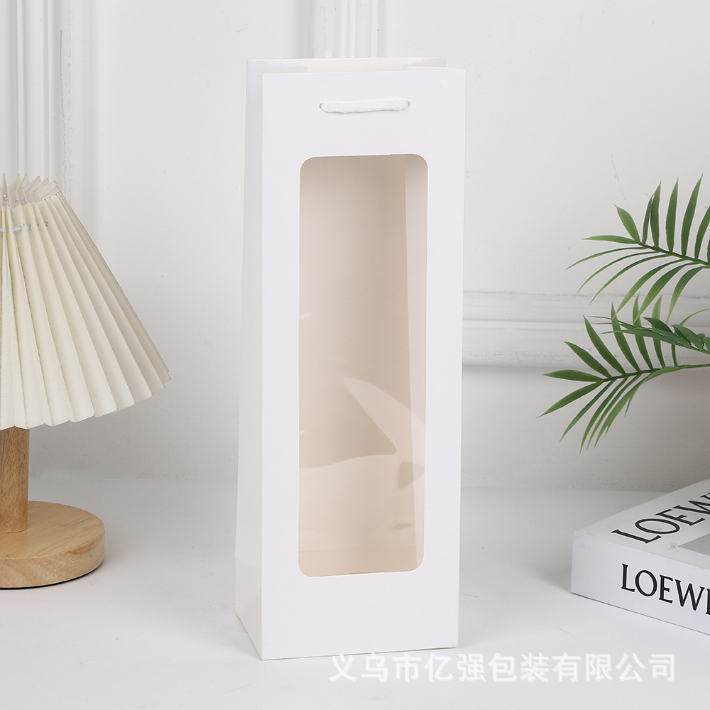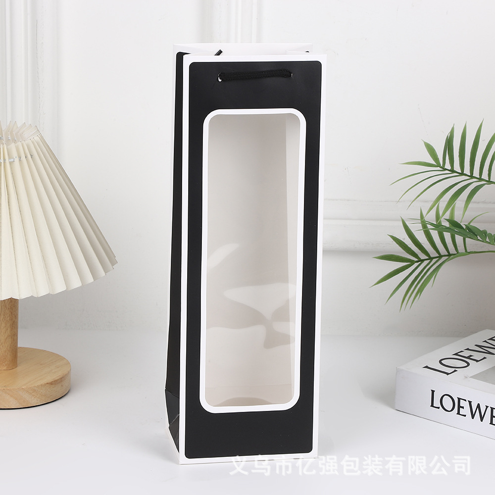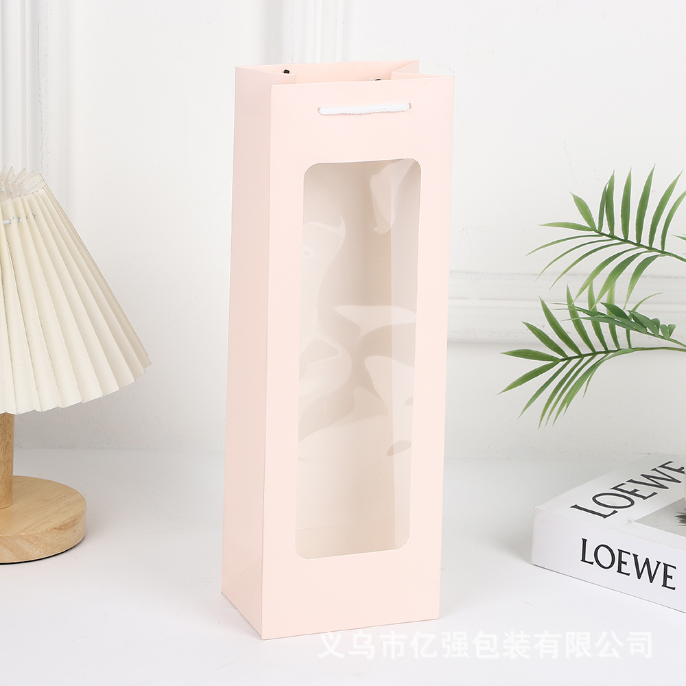 창 선물 가방 레드 와인 가방 창 투명 핸드백 직사각형 꽃 꽃다발 포장 가방 동반자 선물 가방