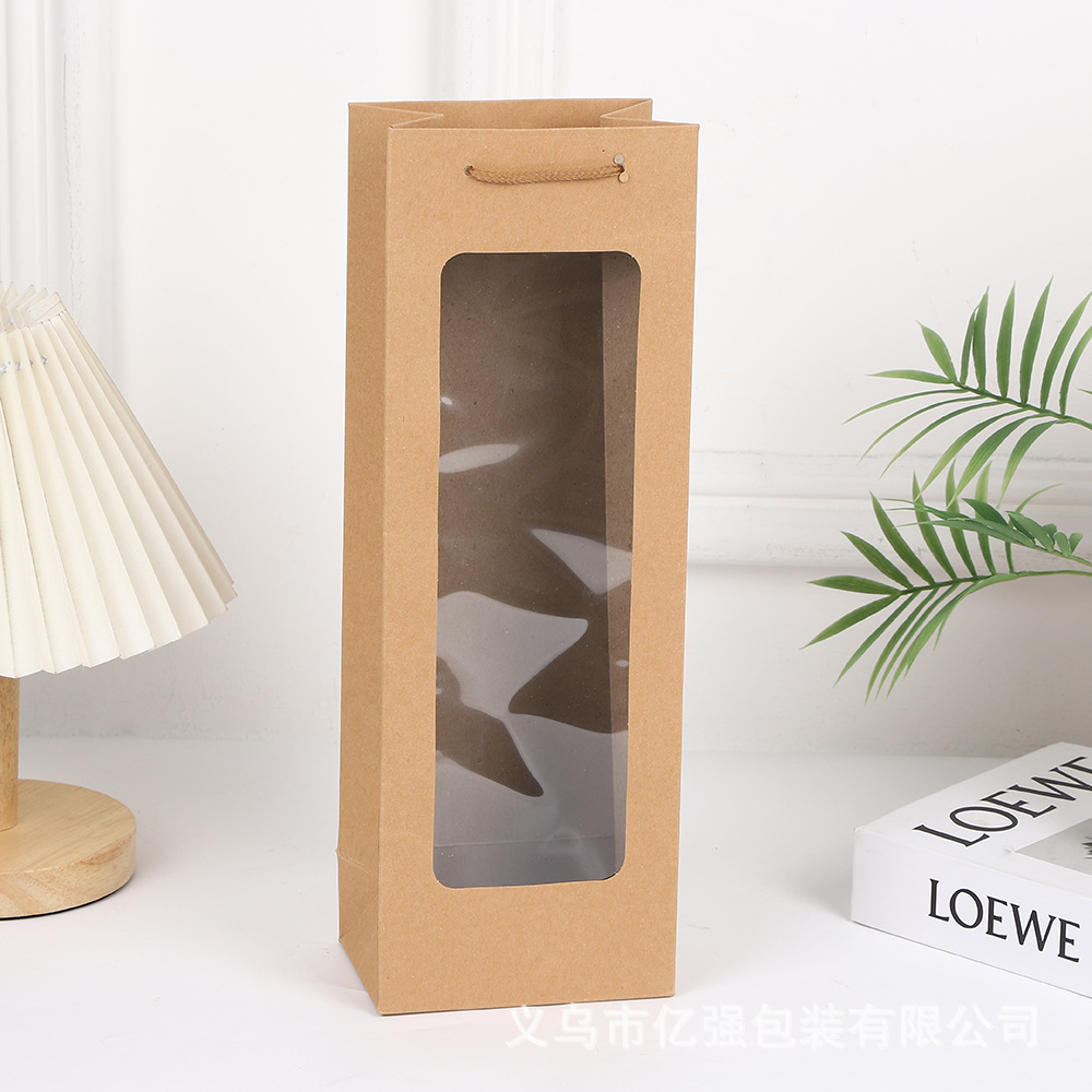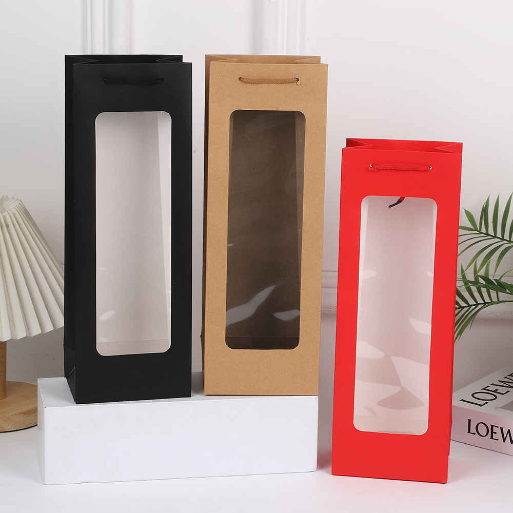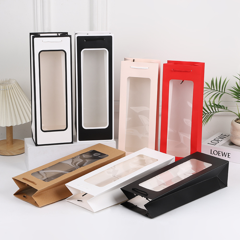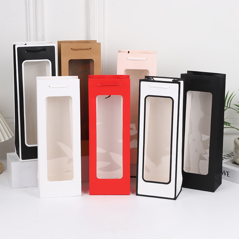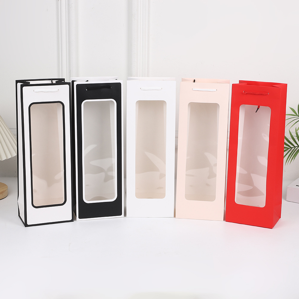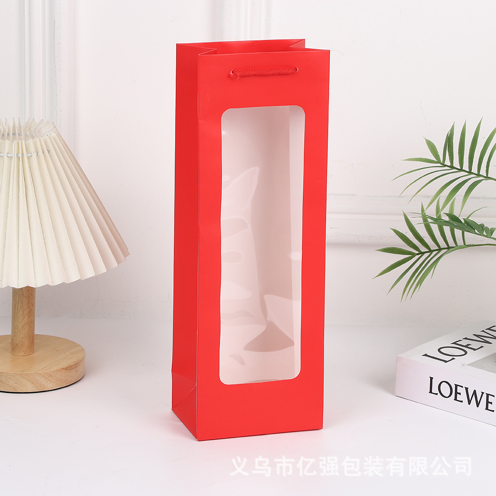 창 선물 가방 레드 와인 가방 창 투명 핸드백 직사각형 꽃 꽃다발 포장 가방 동반자 선물 가방스토어 가기