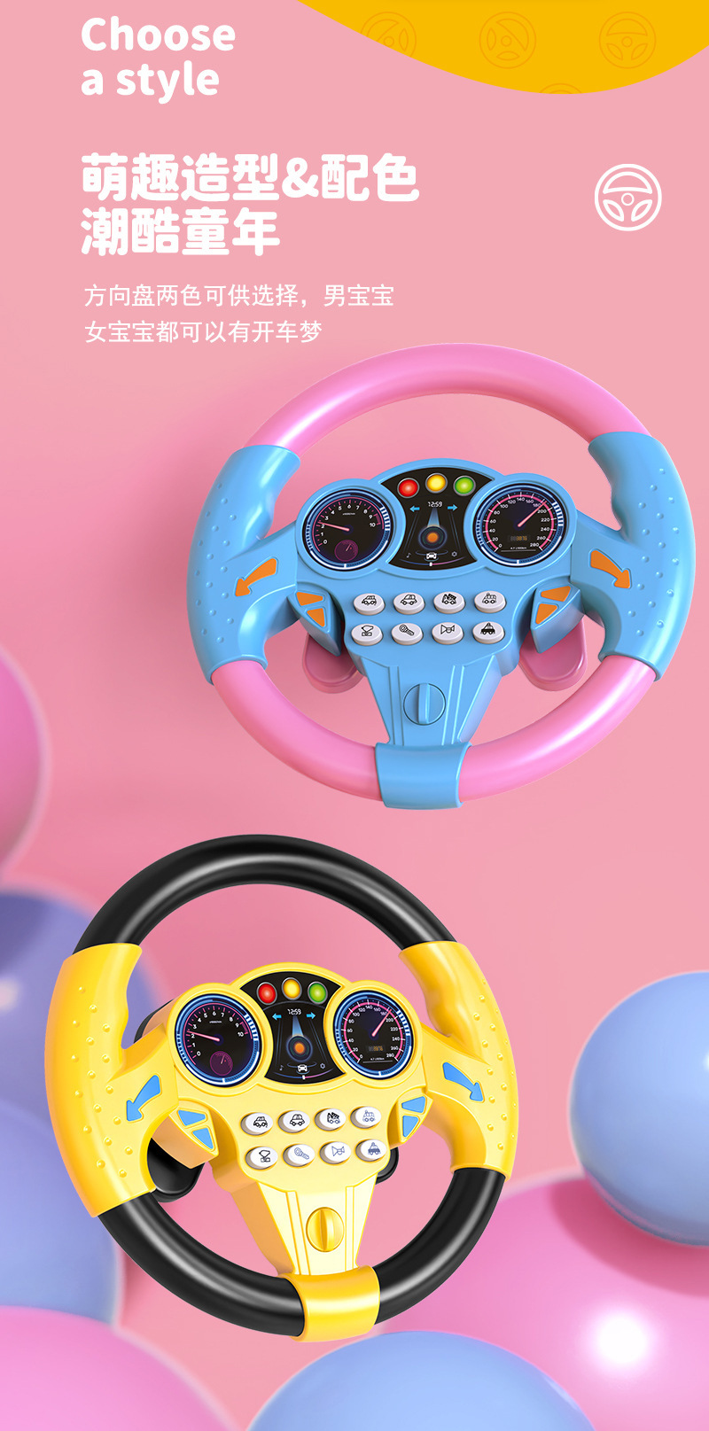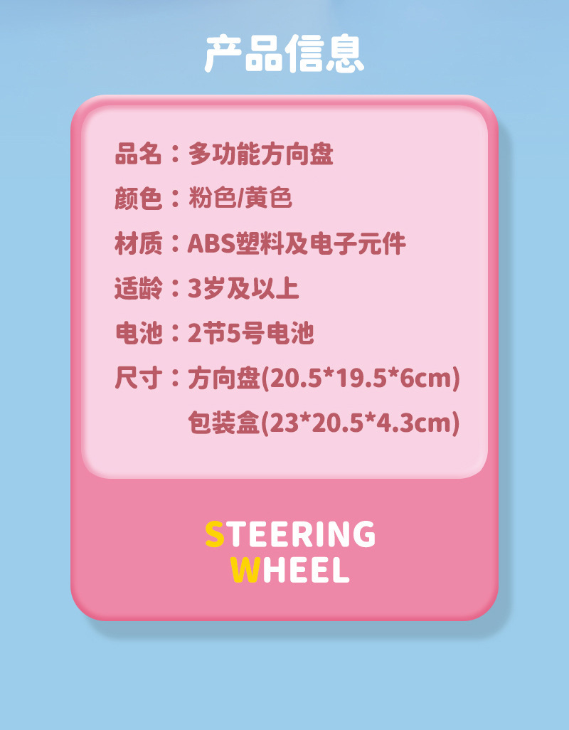 • 반투명 라이트 핑크 스티어링 휠 + 흡입 컵 섀시 색상 상자