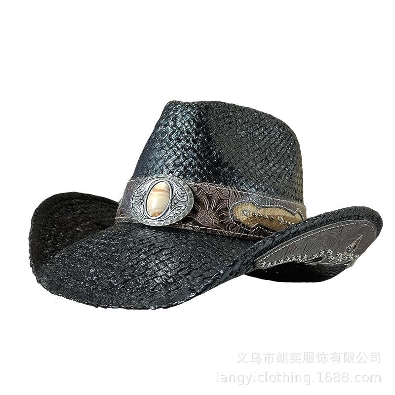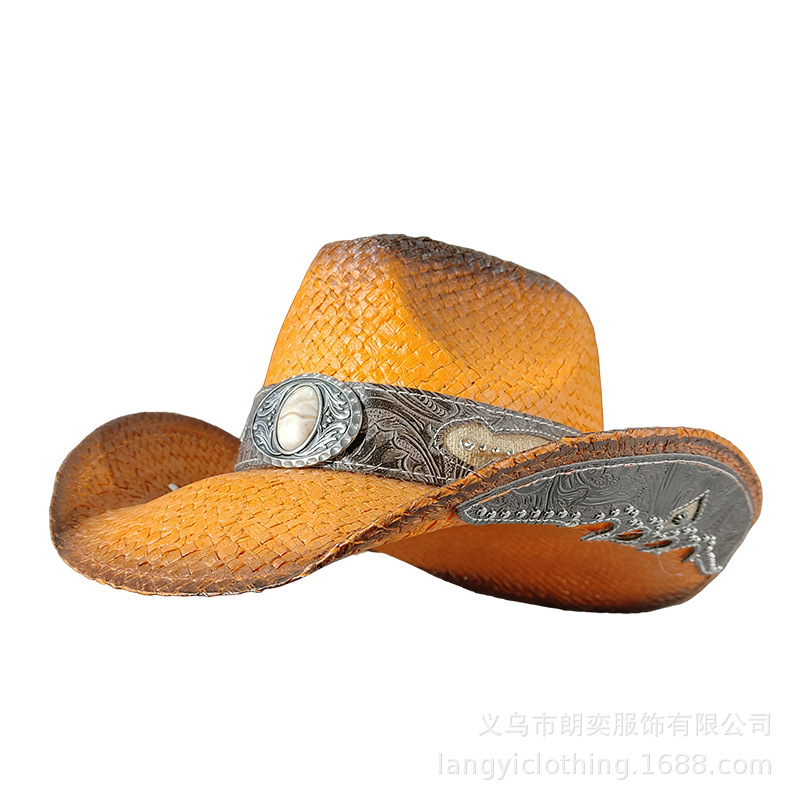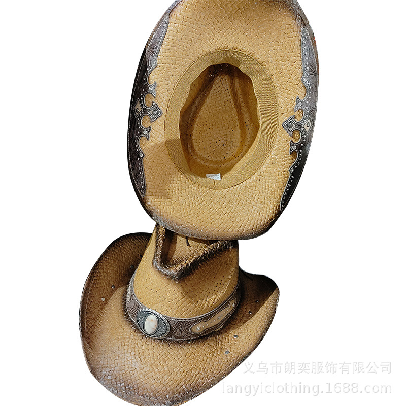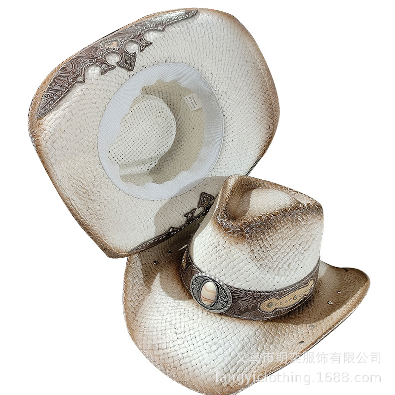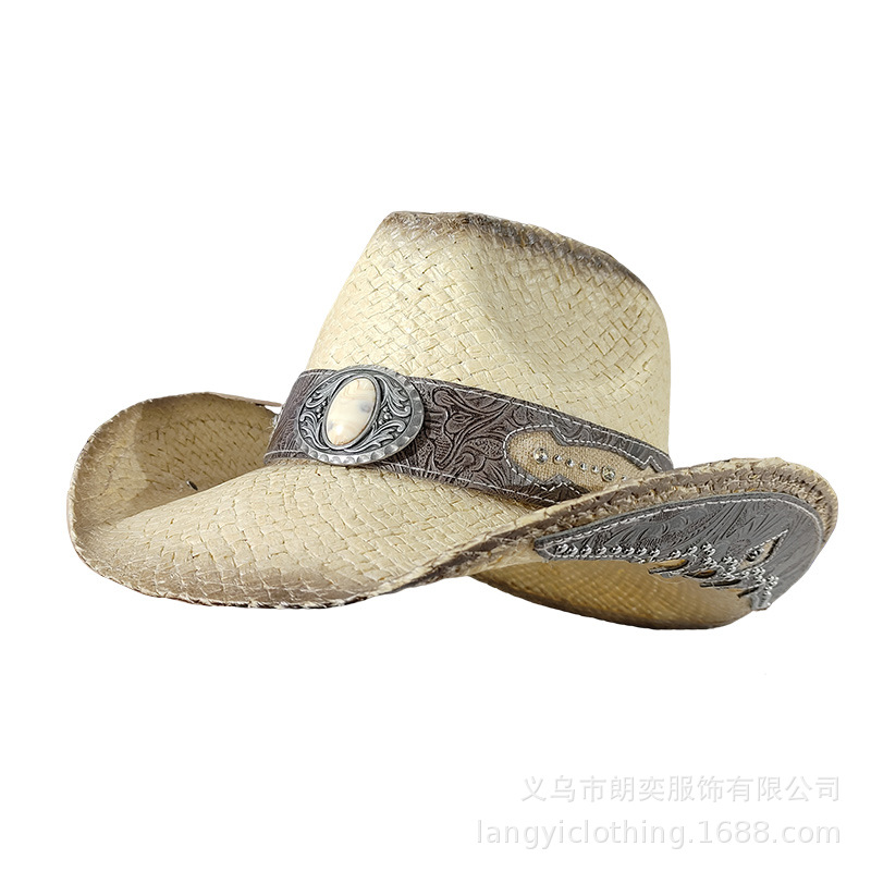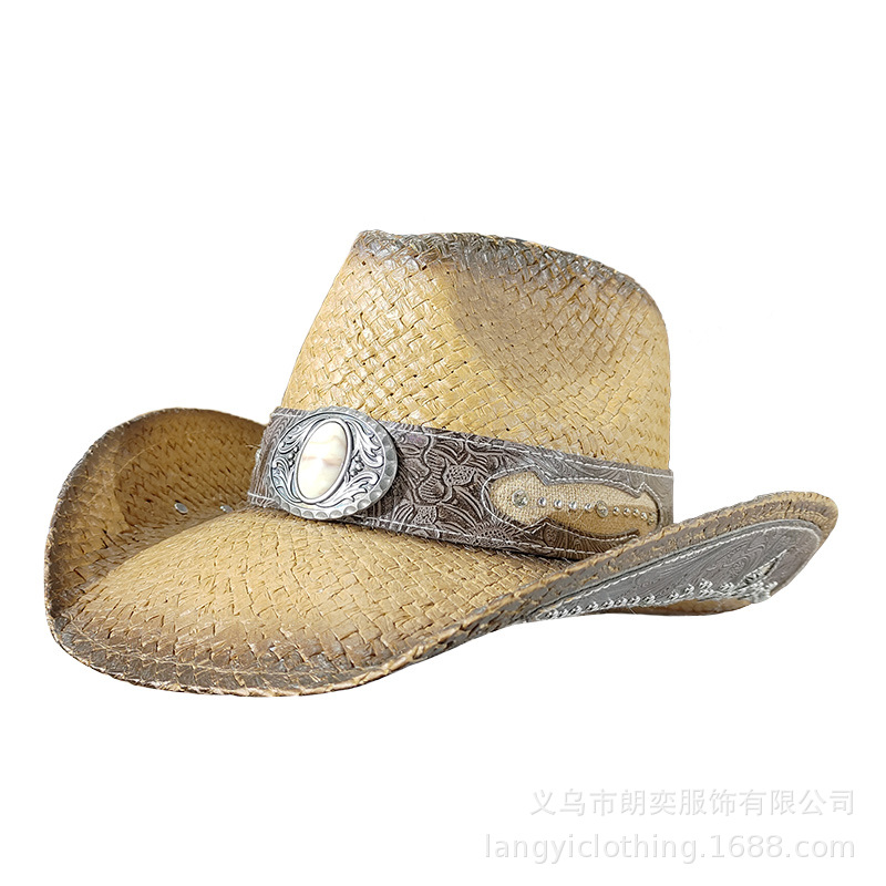 서양 카우보이 밀짚 모자 기사 모자 여성 여름 등산 태양 모자 서양 카우보이 태양 보호 밀짚 모자 남성 티베트 스타일스토어 가기