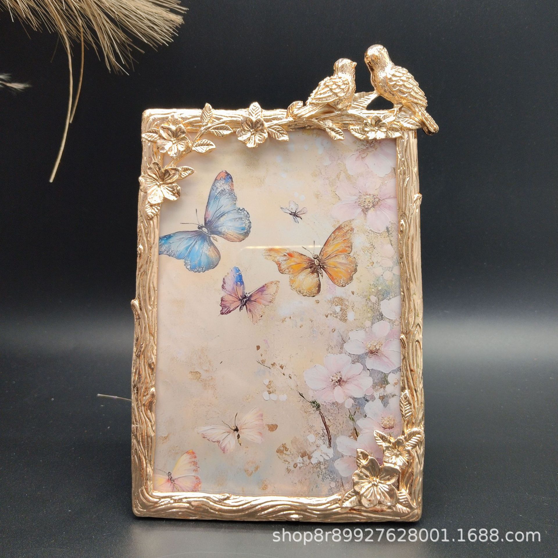 입체적인 패셔너블한 밝은 금색 금속 사진 프레임, 모델 하우스 부드러운 장식 테이블 장식 금속 사진 프레임
