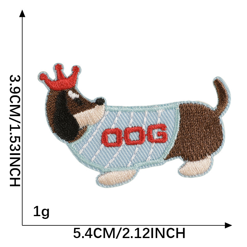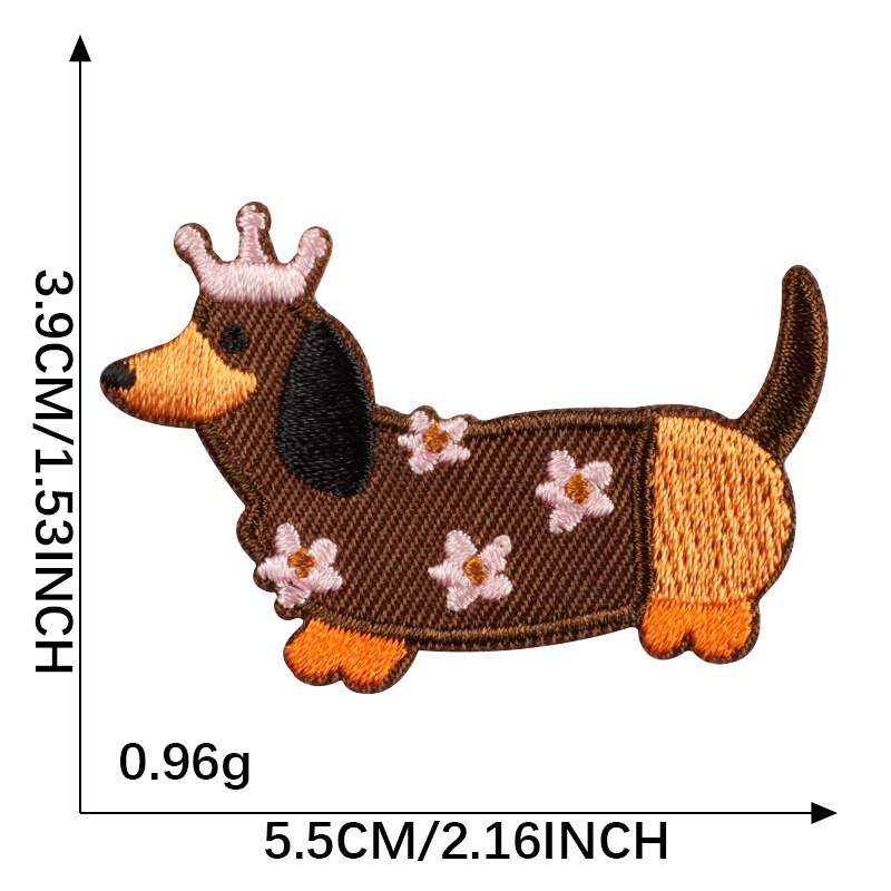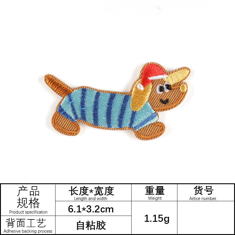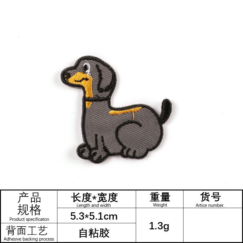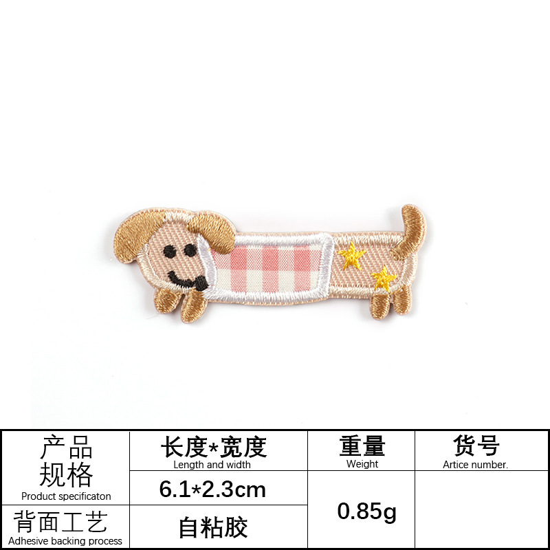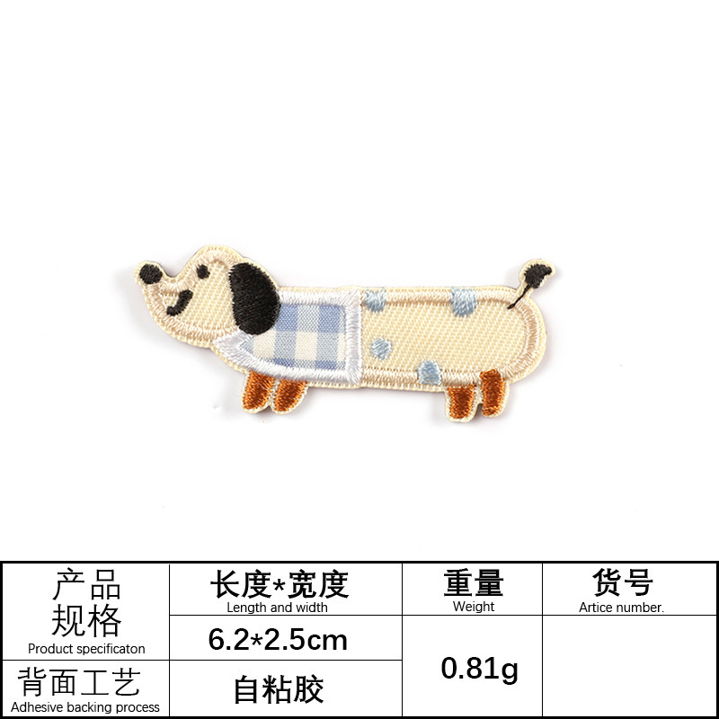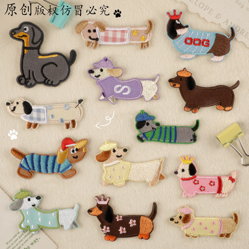 만화 소시지 개 천 스티커 자체 접착 무료 바느질 패치 귀여운 동물 자수 스티커 diy 의류 액세서리 구멍 스티커스토어 가기