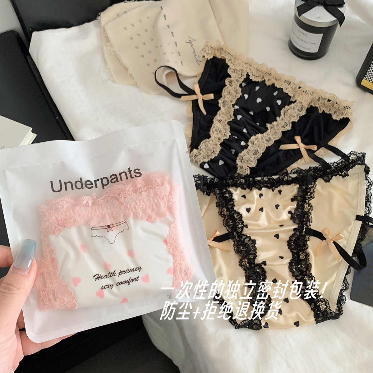 어린 소녀의 천연식품~ 프렌치 퓨어 소녀 속옷, 섹시한 레이스 스트랩, 유혹적인 중공 로우웨이스트 팬티