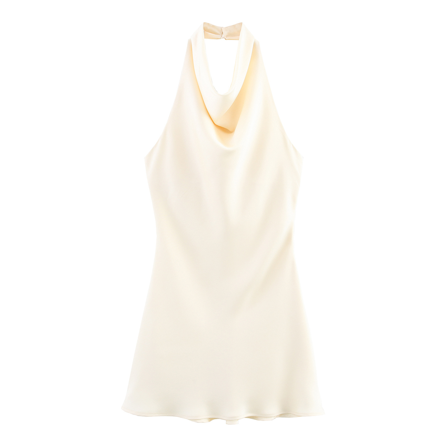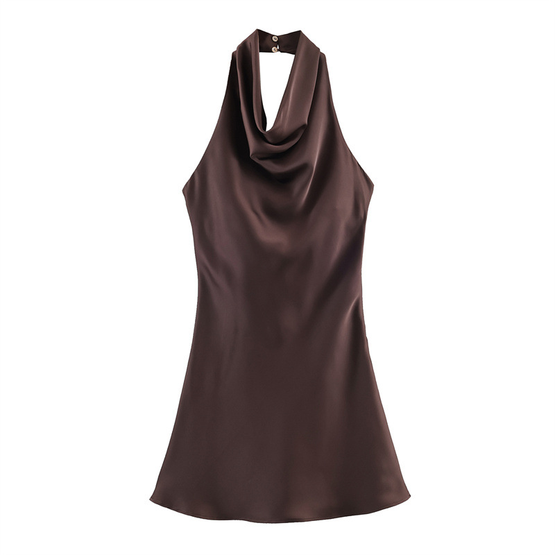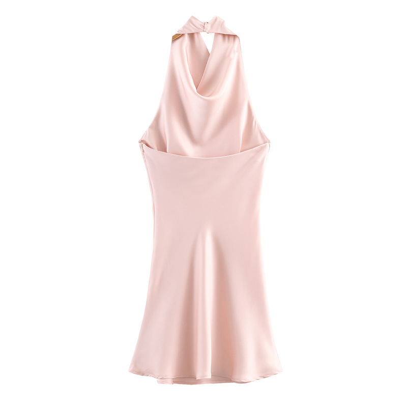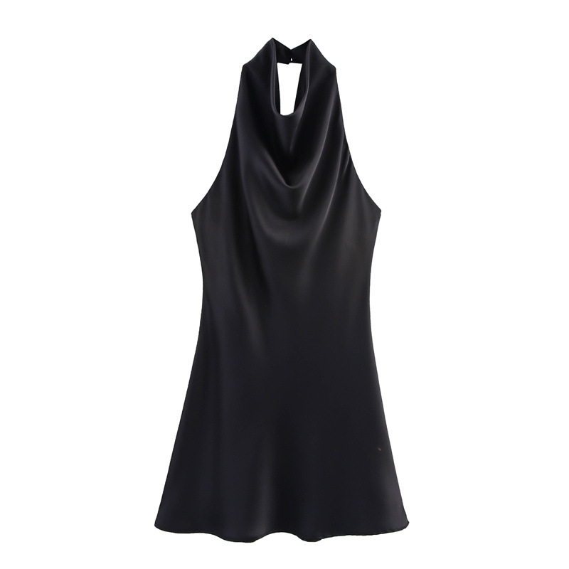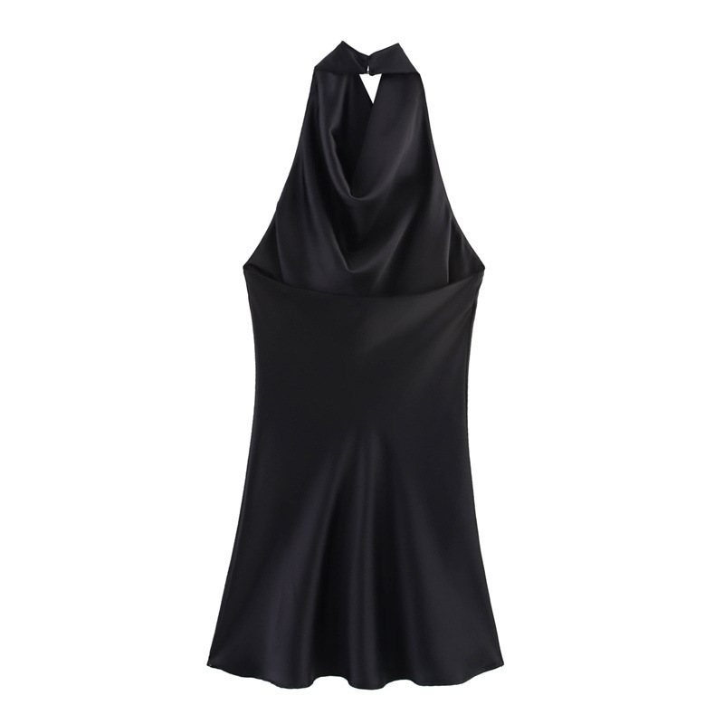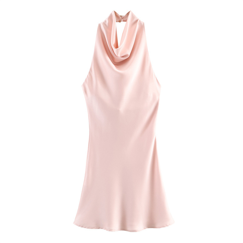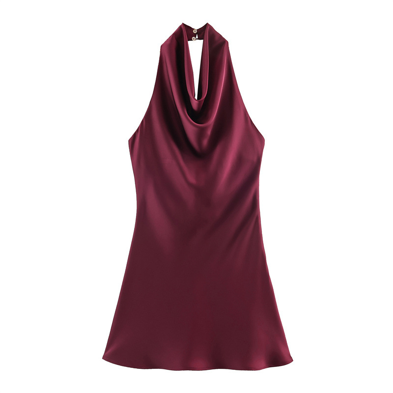대외 무역 2025 신상 여름 솔리드 컬러 실크 새틴 홀터넥 넥 스트랩 민소매 드레스 8741074