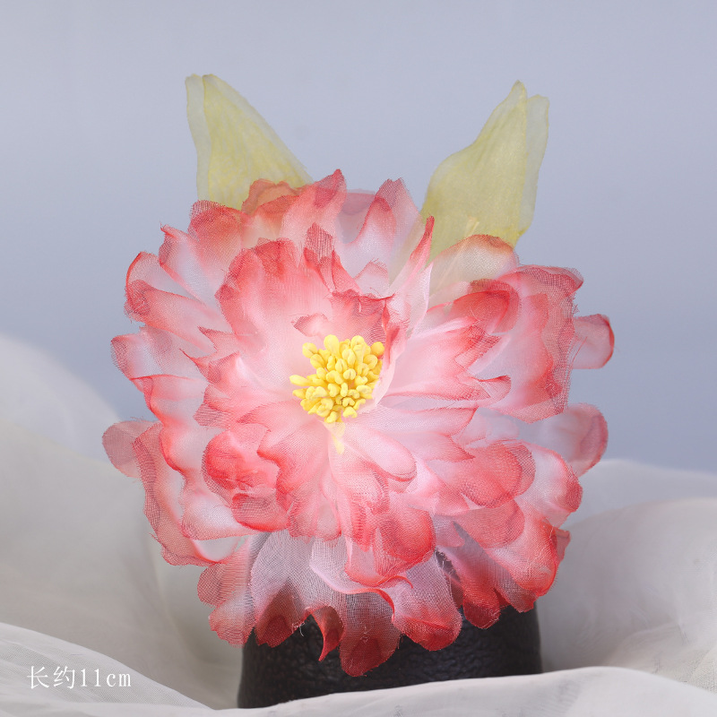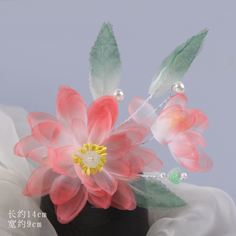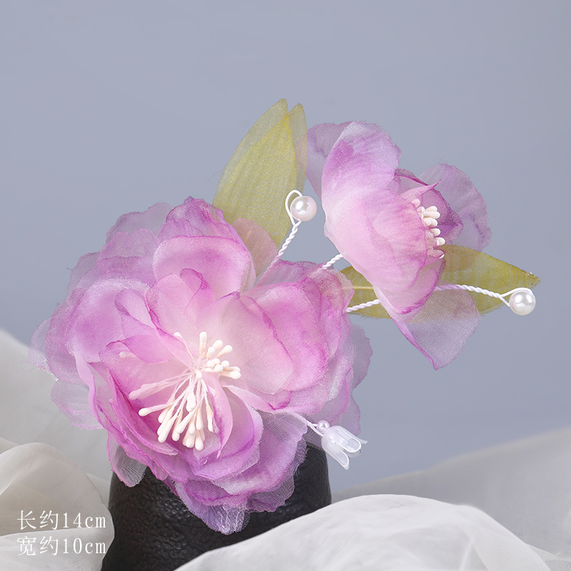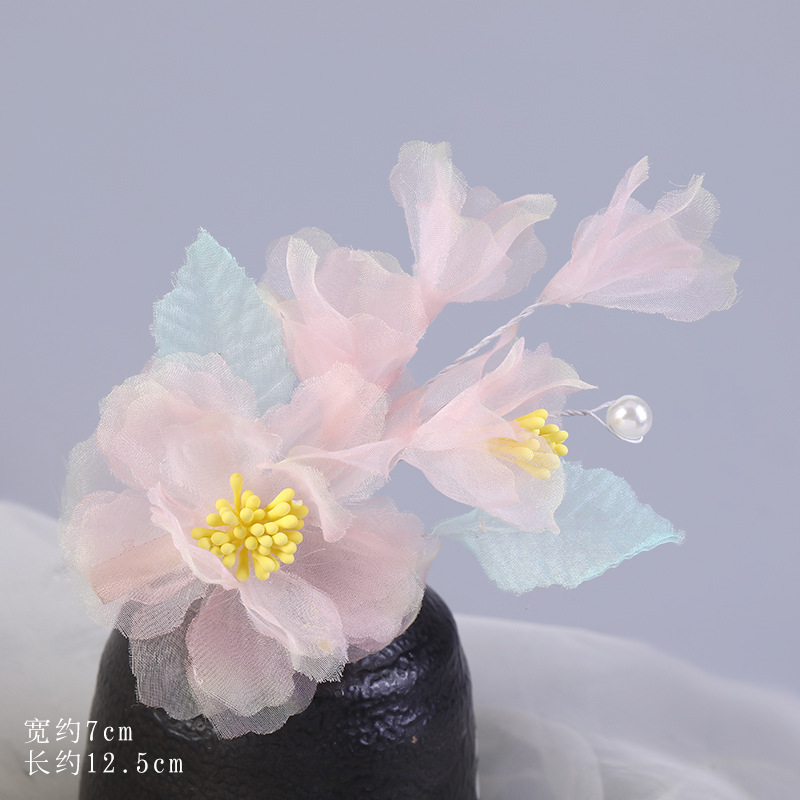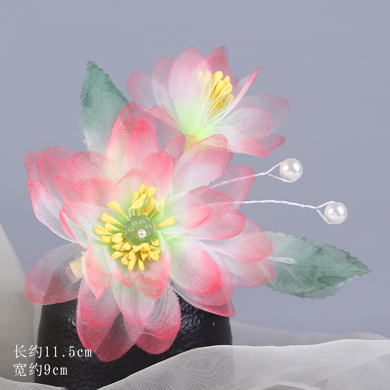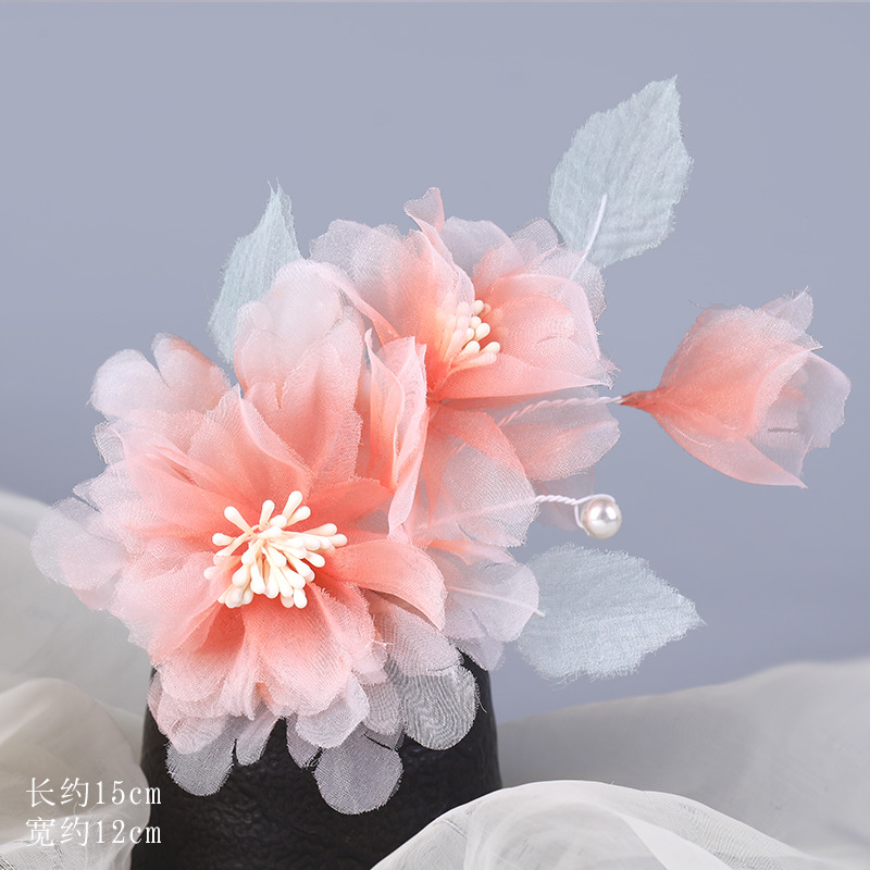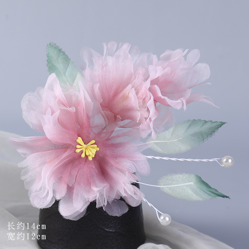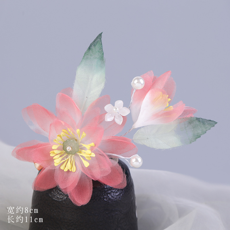 그라데이션 핫플라워 원사 헤어 액세서리, 앤티크 스타일 머리핀, 실크 플라워 헤드피스, 한복 머리핀, U핀, 앤티크 스타일 아동 액세서리