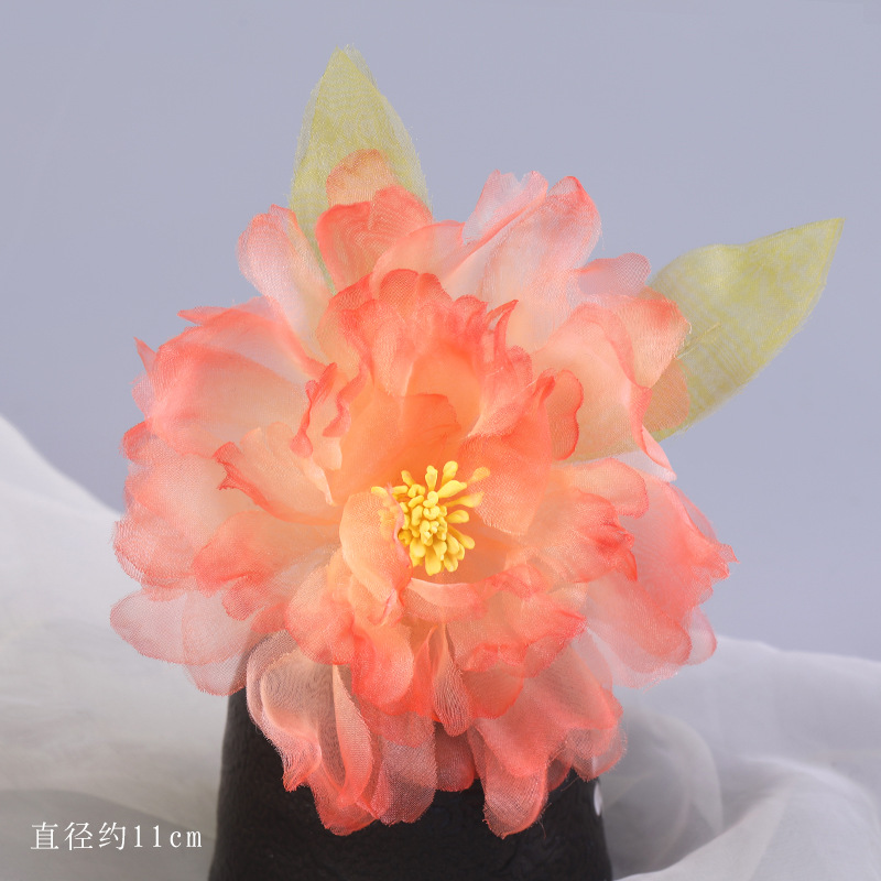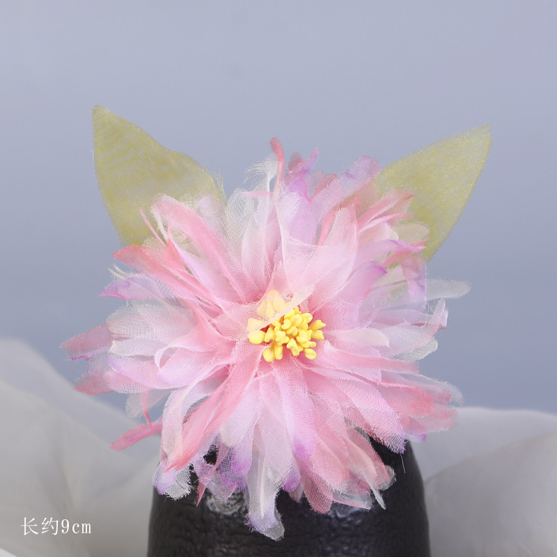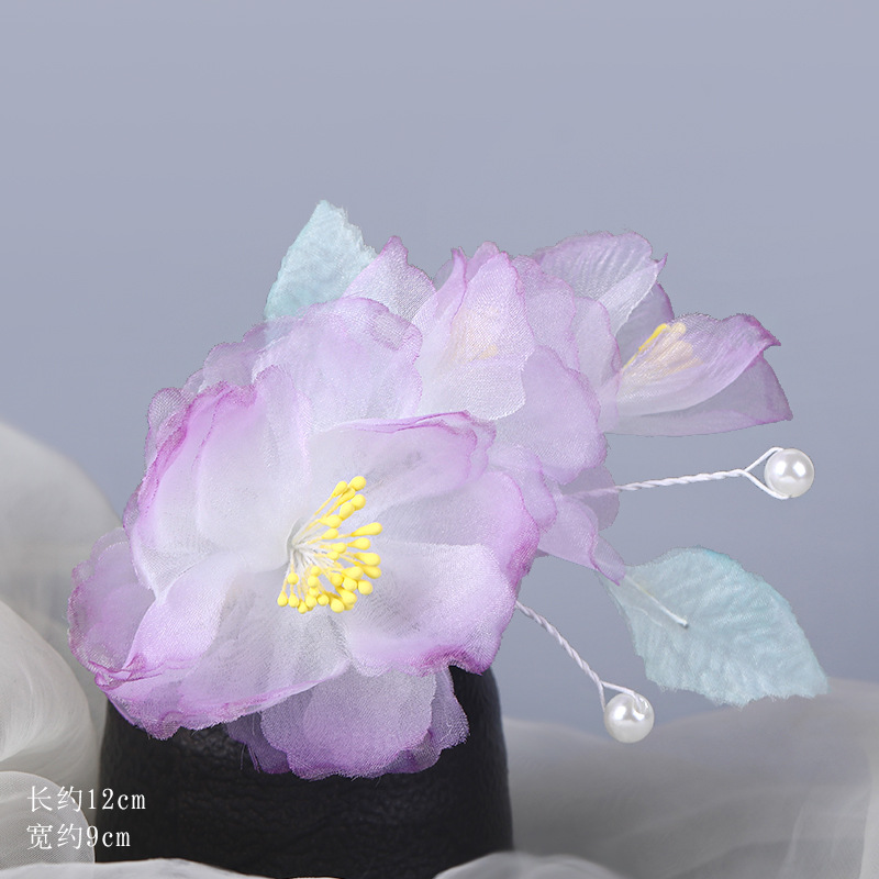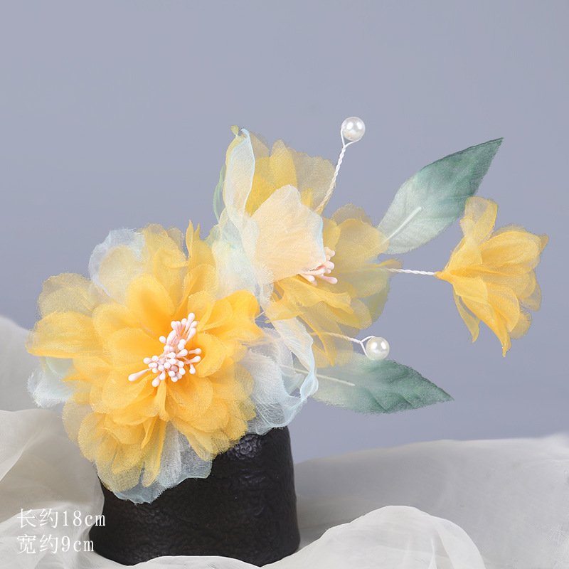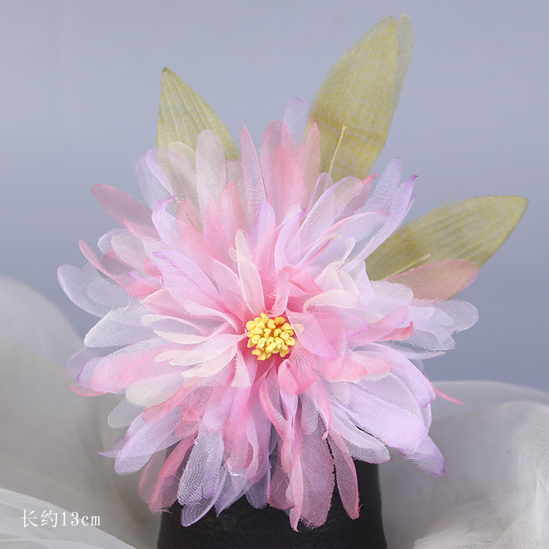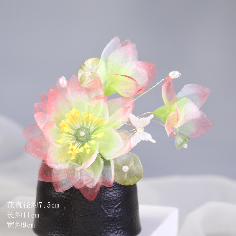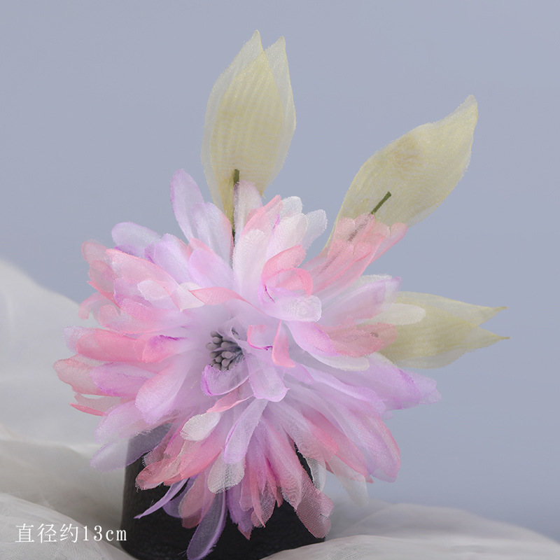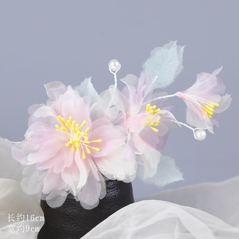 그라데이션 핫플라워 원사 헤어 액세서리, 앤티크 스타일 머리핀, 실크 플라워 헤드피스, 한복 머리핀, U핀, 앤티크 스타일 아동 액세서리