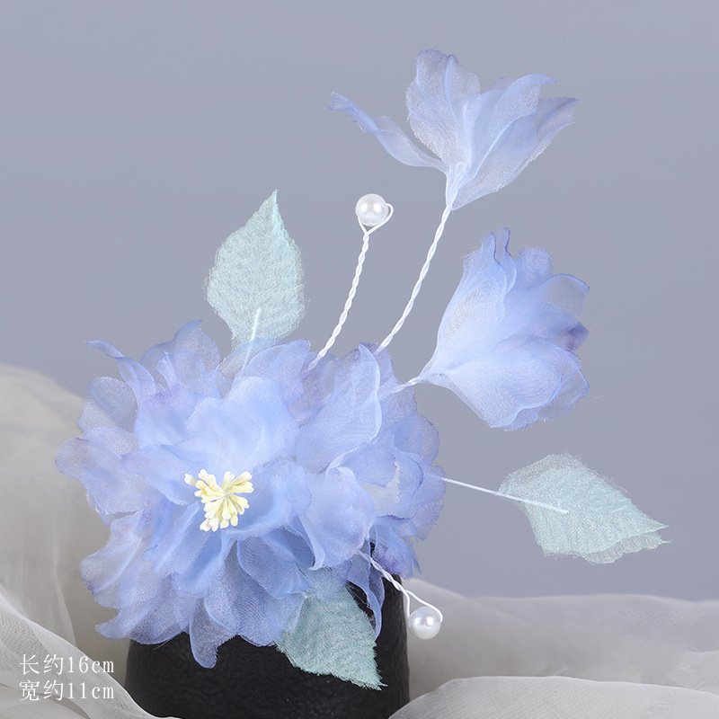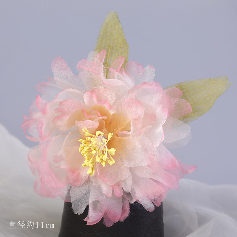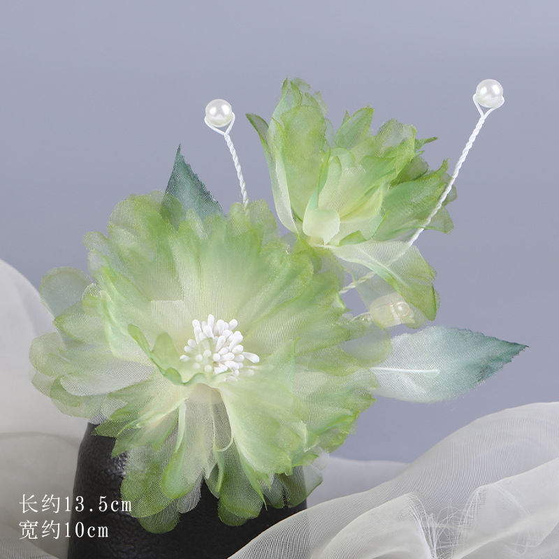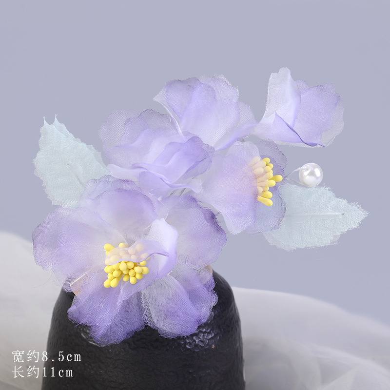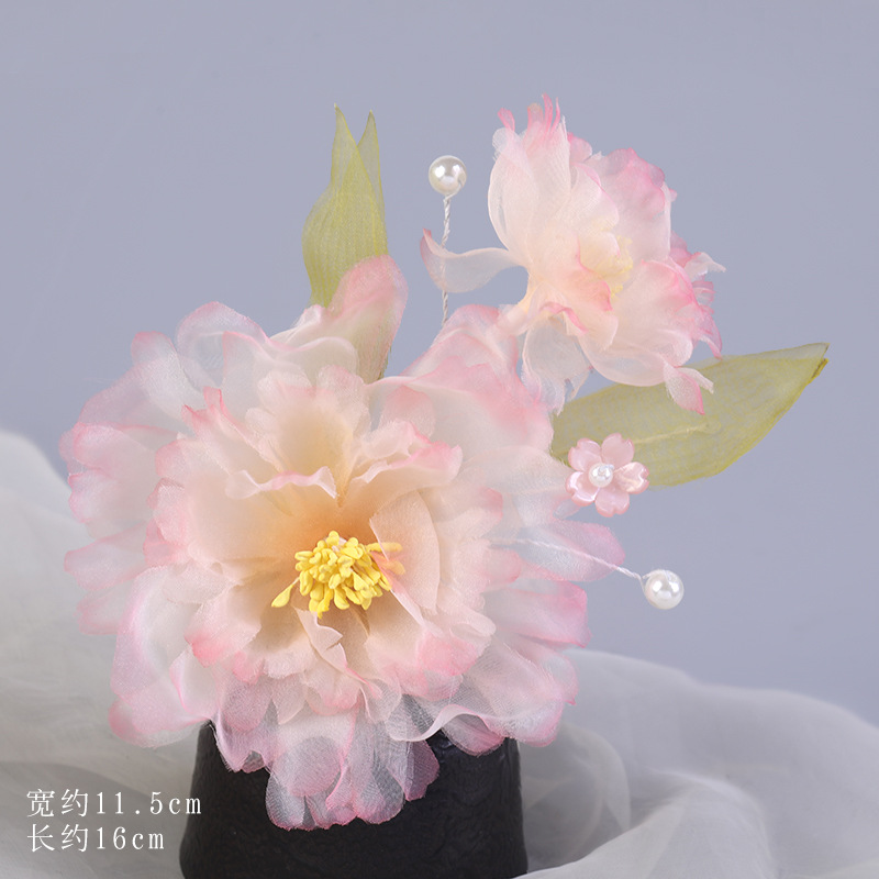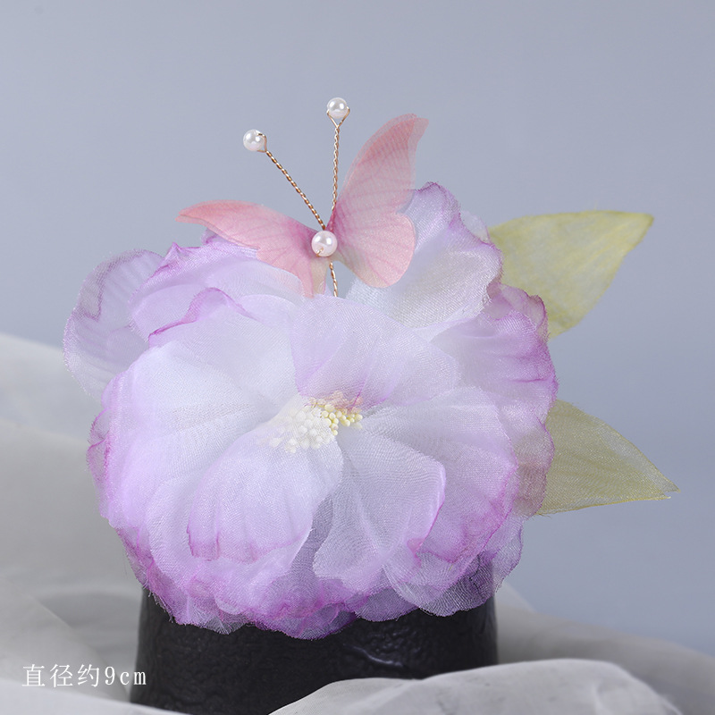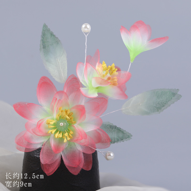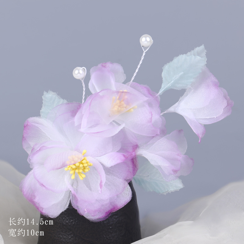 그라데이션 핫플라워 원사 헤어 액세서리, 앤티크 스타일 머리핀, 실크 플라워 헤드피스, 한복 머리핀, U핀, 앤티크 스타일 아동 액세서리