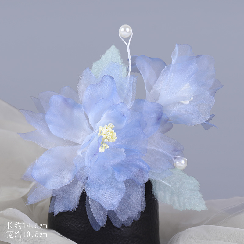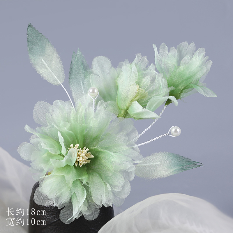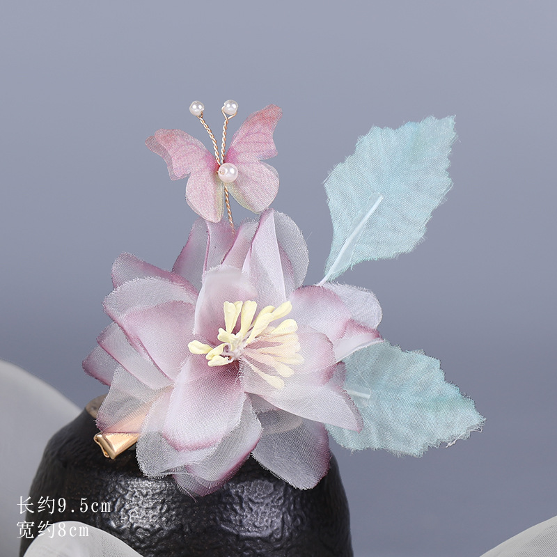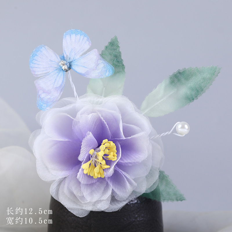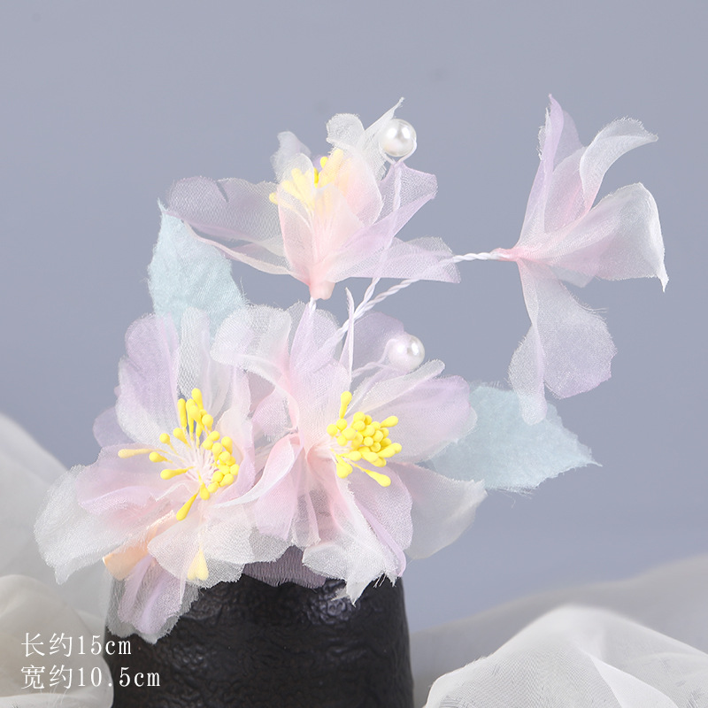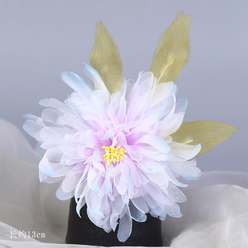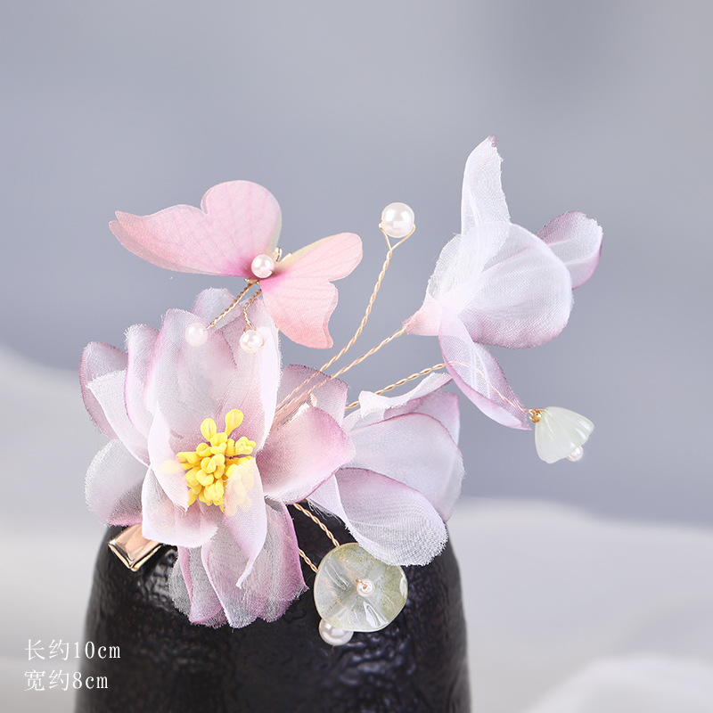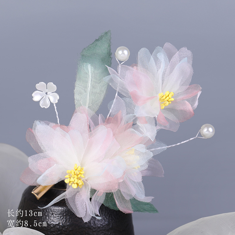 그라데이션 핫플라워 원사 헤어 액세서리, 앤티크 스타일 머리핀, 실크 플라워 헤드피스, 한복 머리핀, U핀, 앤티크 스타일 아동 액세서리