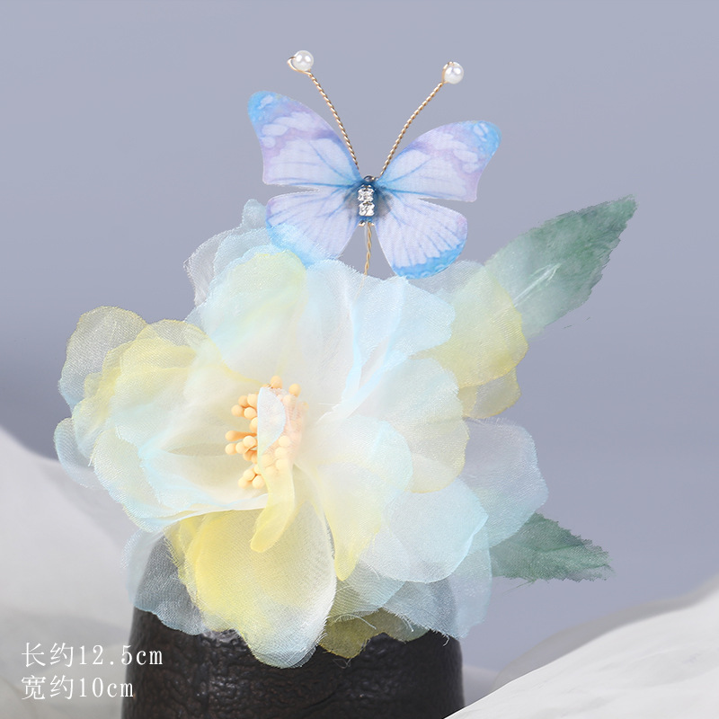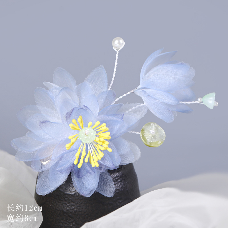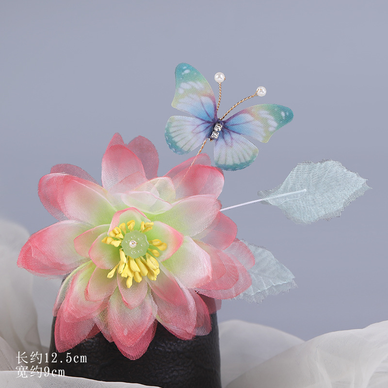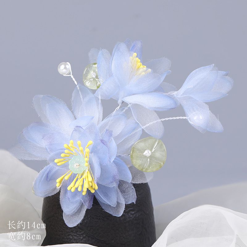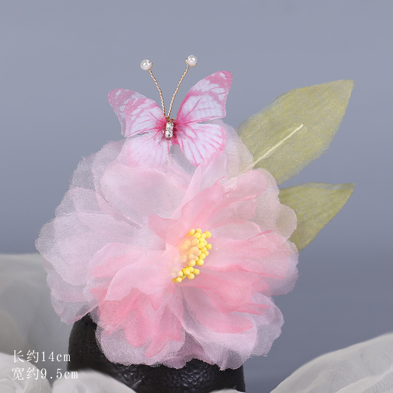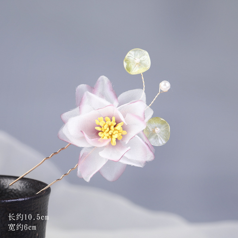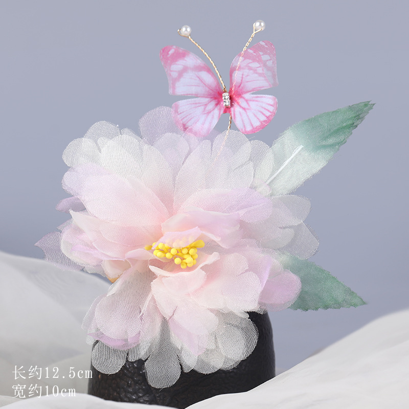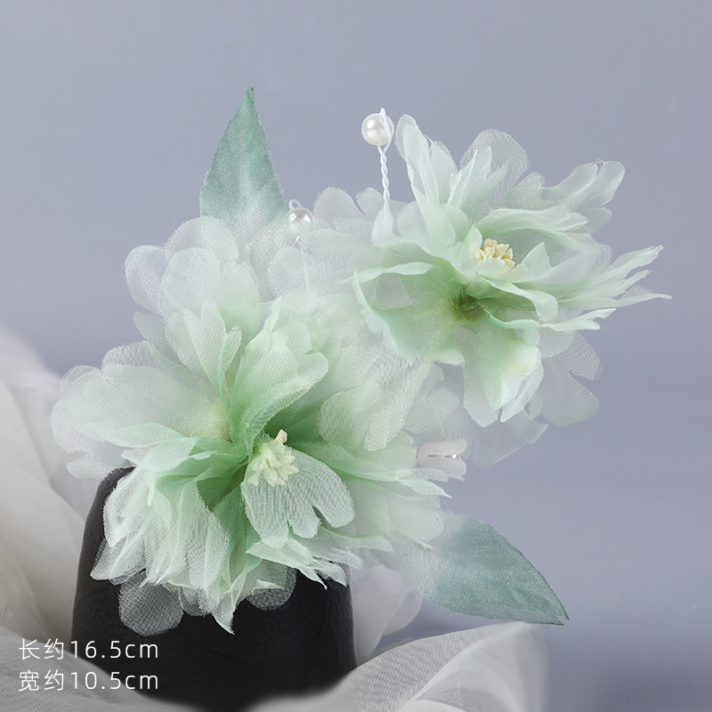 그라데이션 핫플라워 원사 헤어 액세서리, 앤티크 스타일 머리핀, 실크 플라워 헤드피스, 한복 머리핀, U핀, 앤티크 스타일 아동 액세서리