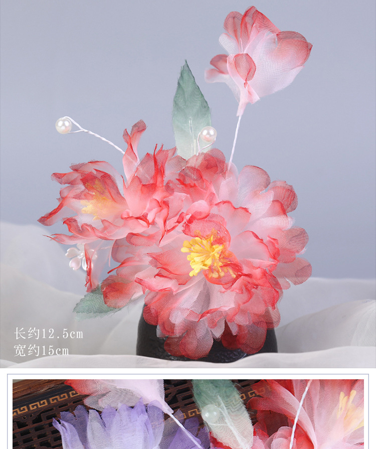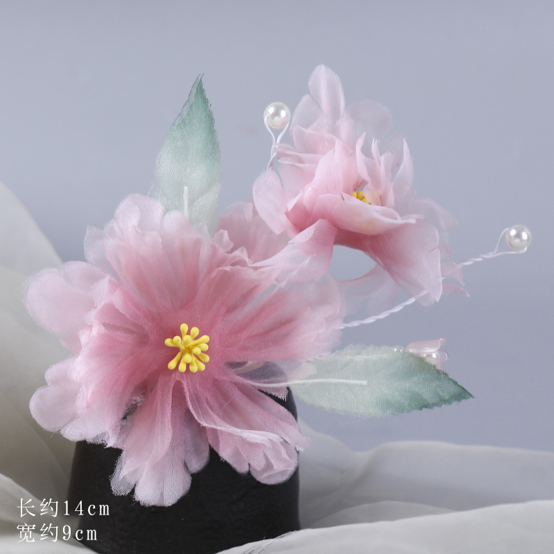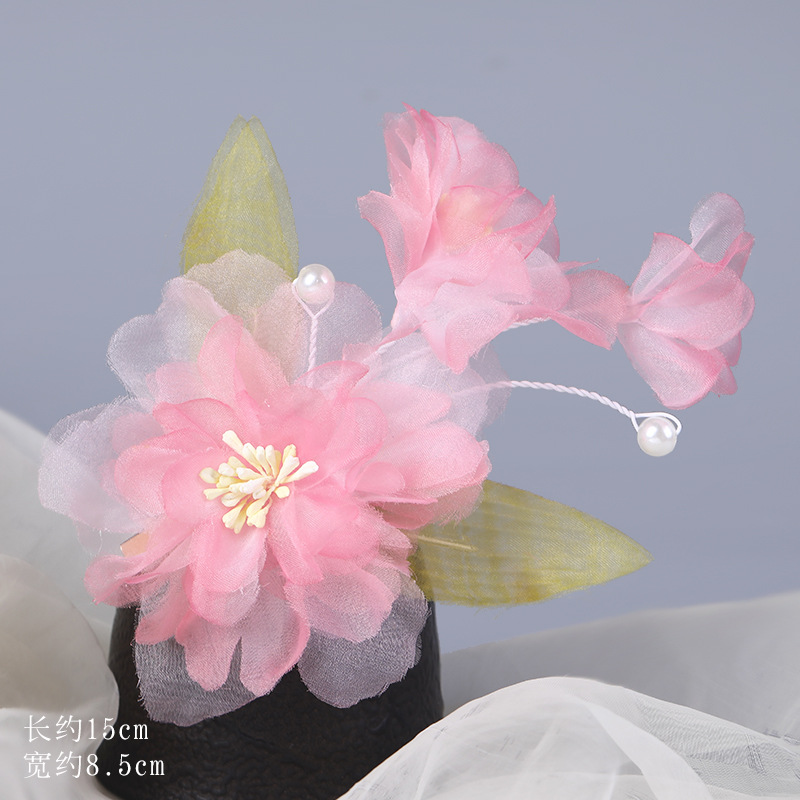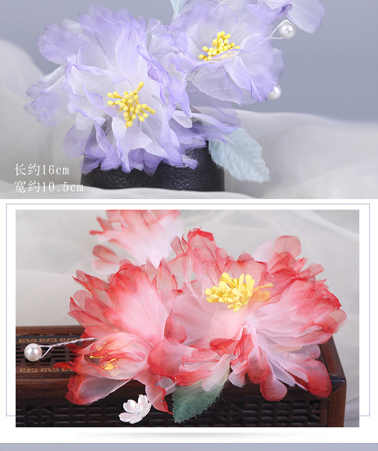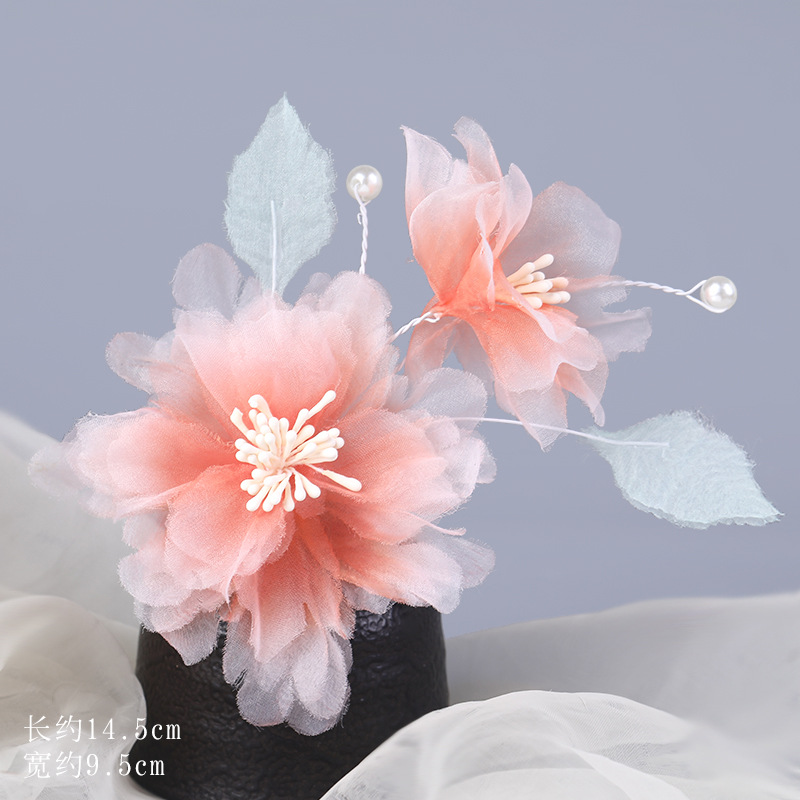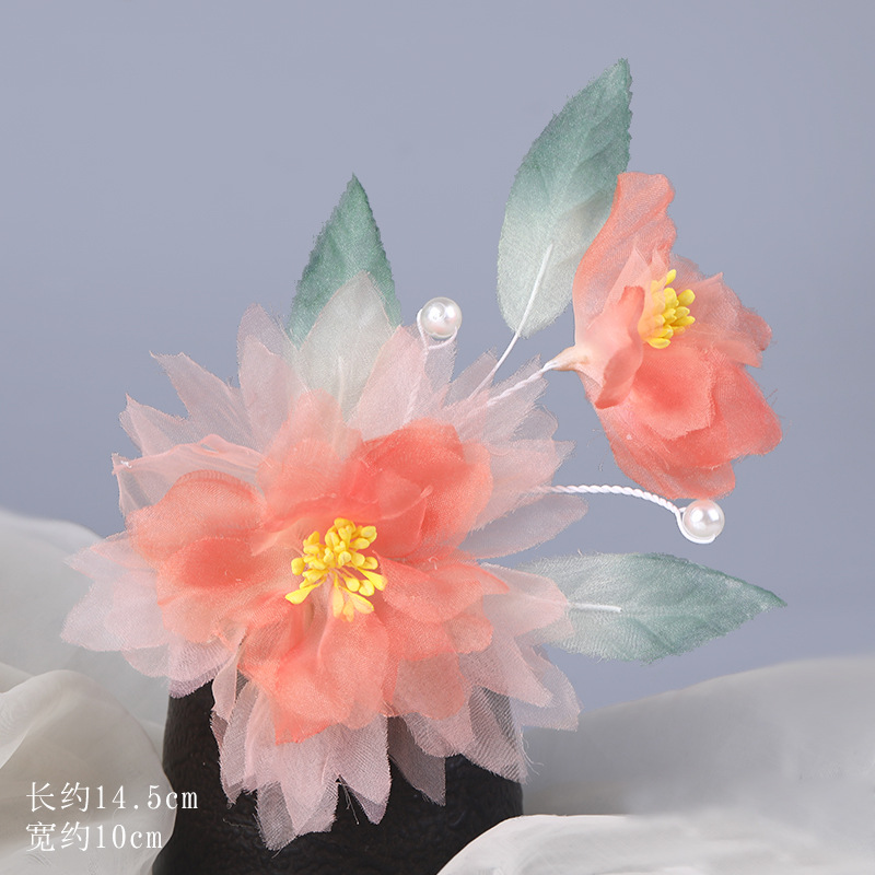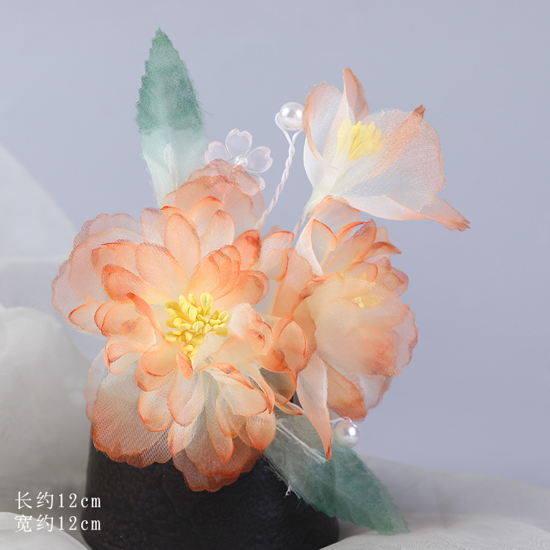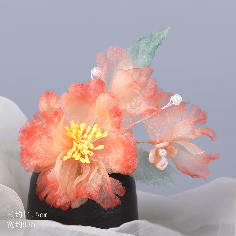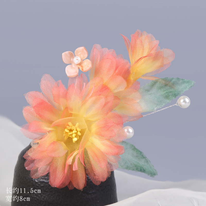 그라데이션 핫플라워 원사 헤어 액세서리, 앤티크 스타일 머리핀, 실크 플라워 헤드피스, 한복 머리핀, U핀, 앤티크 스타일 아동 액세서리스토어 가기