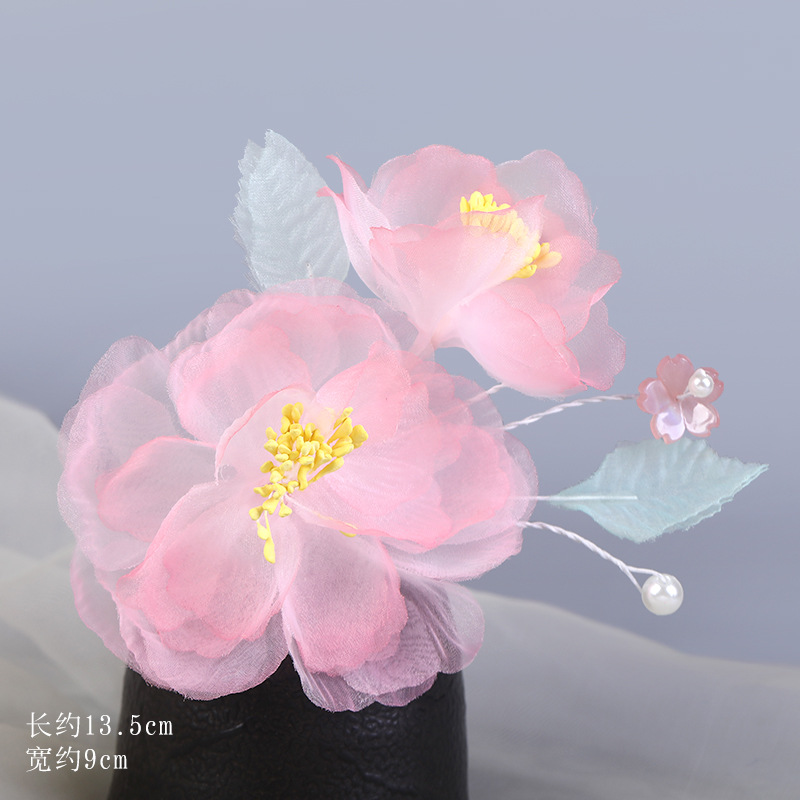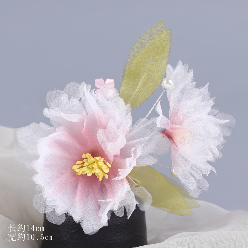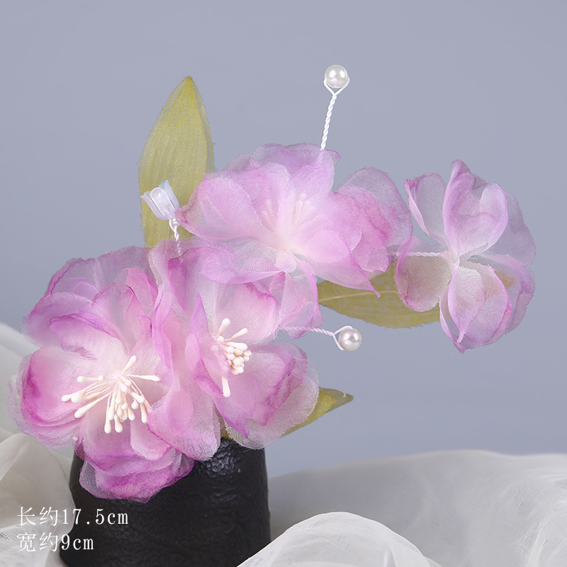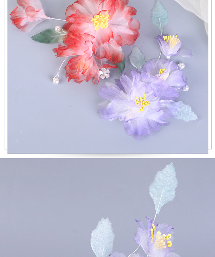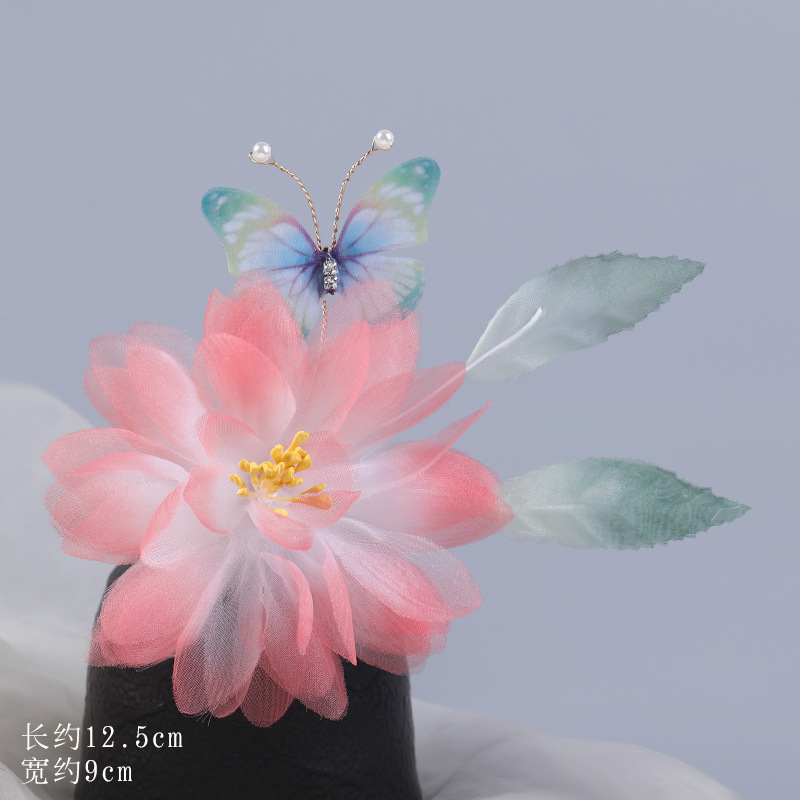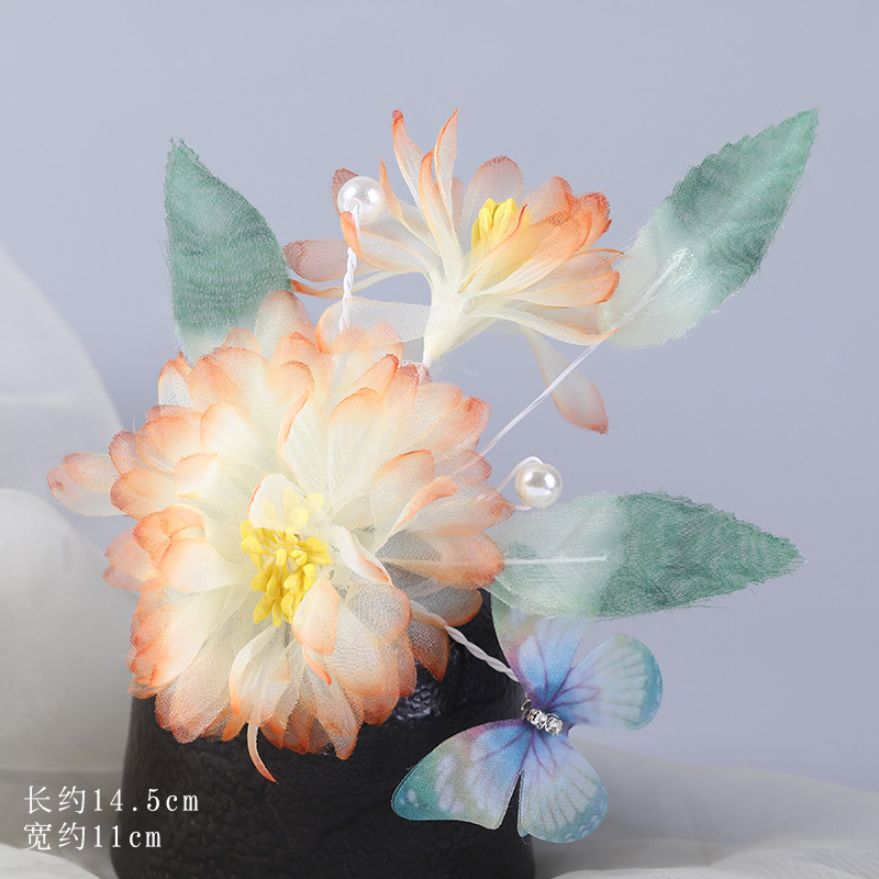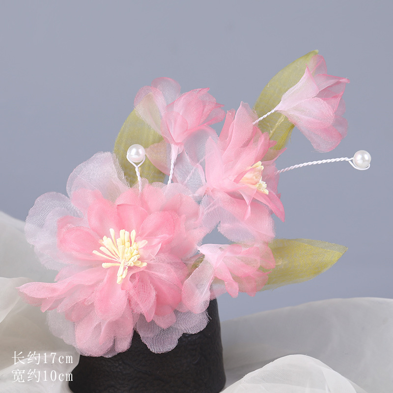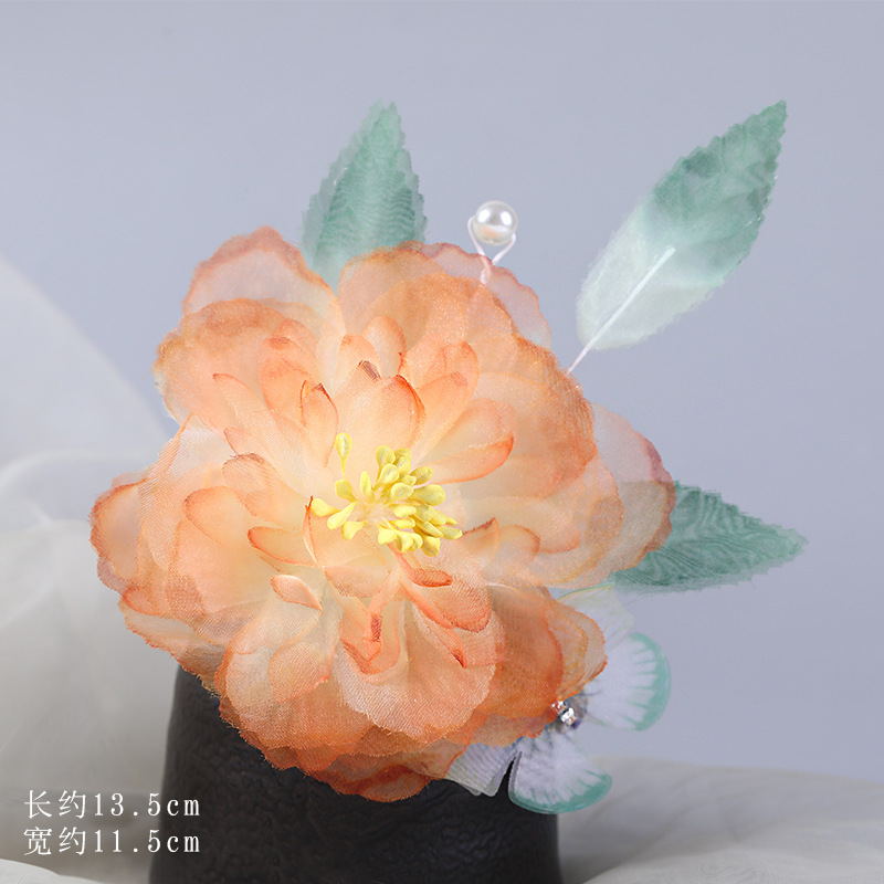 그라데이션 핫플라워 원사 헤어 액세서리, 앤티크 스타일 머리핀, 실크 플라워 헤드피스, 한복 머리핀, U핀, 앤티크 스타일 아동 액세서리스토어 가기