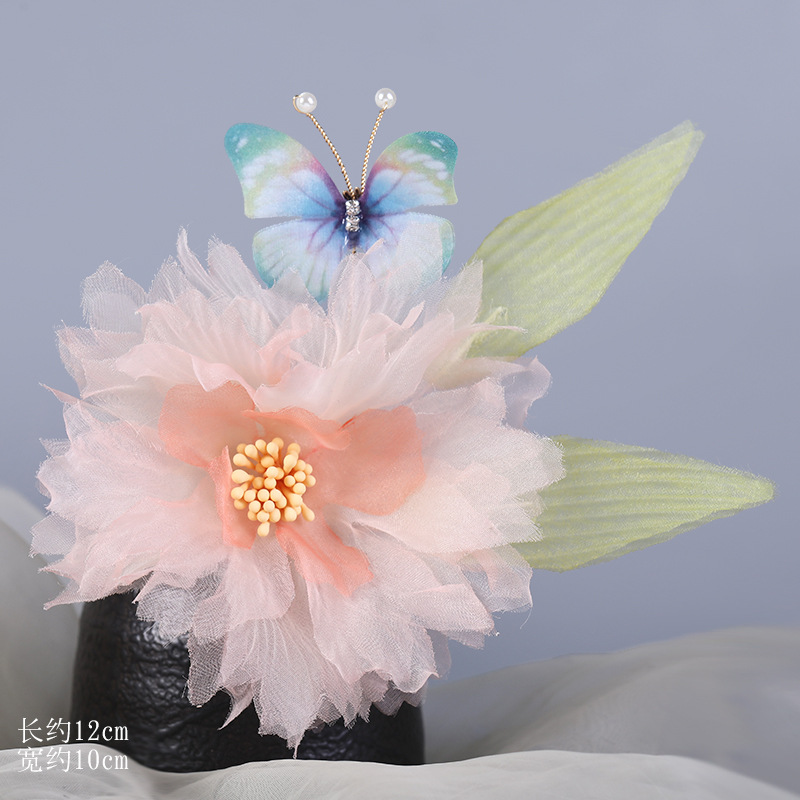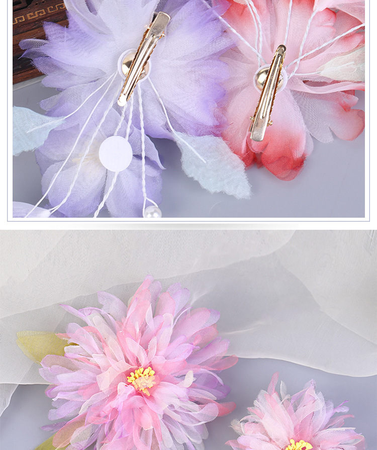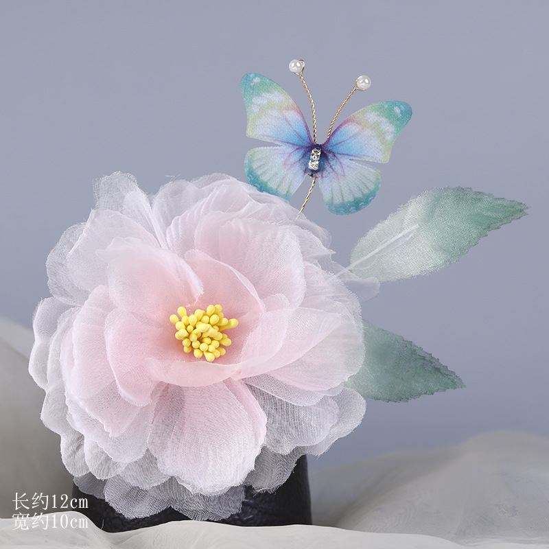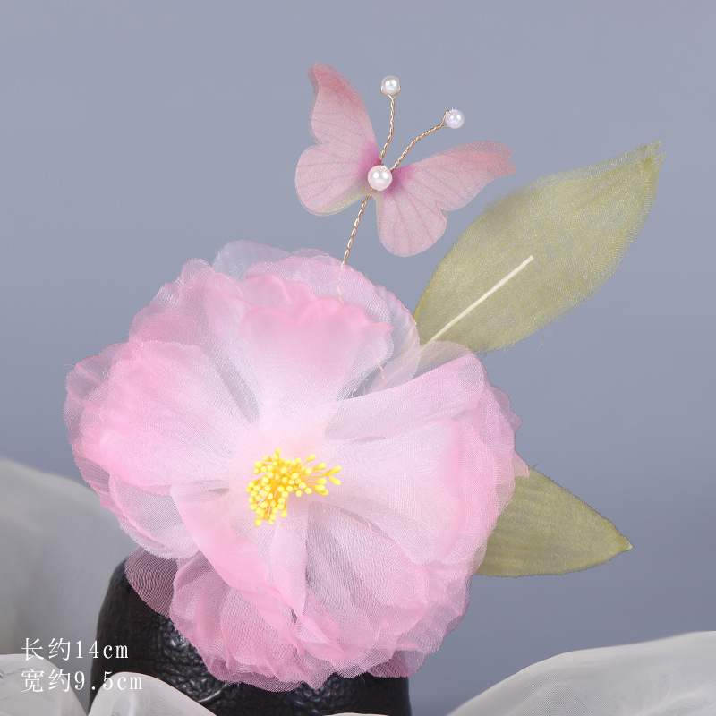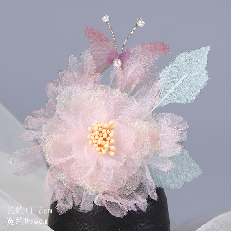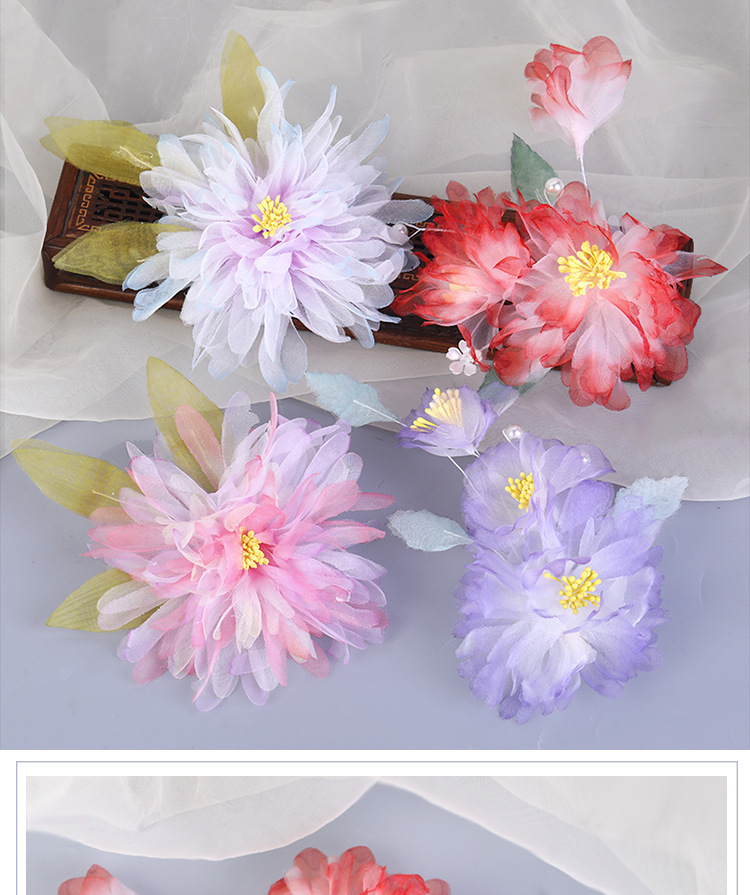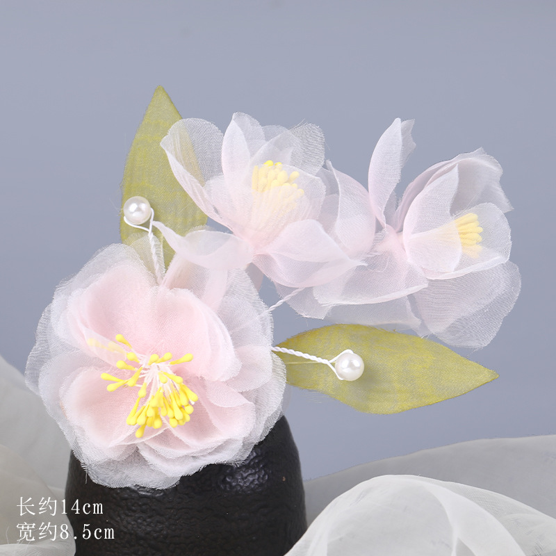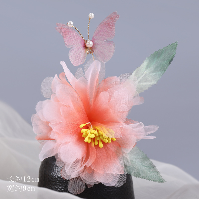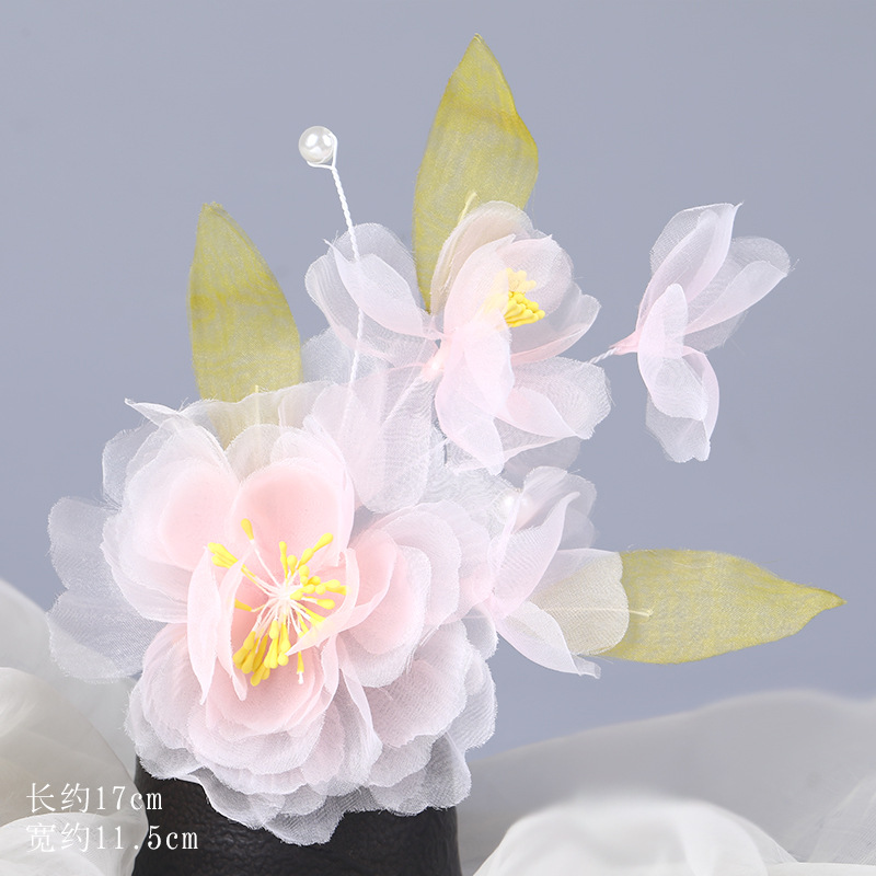 그라데이션 핫플라워 원사 헤어 액세서리, 앤티크 스타일 머리핀, 실크 플라워 헤드피스, 한복 머리핀, U핀, 앤티크 스타일 아동 액세서리스토어 가기