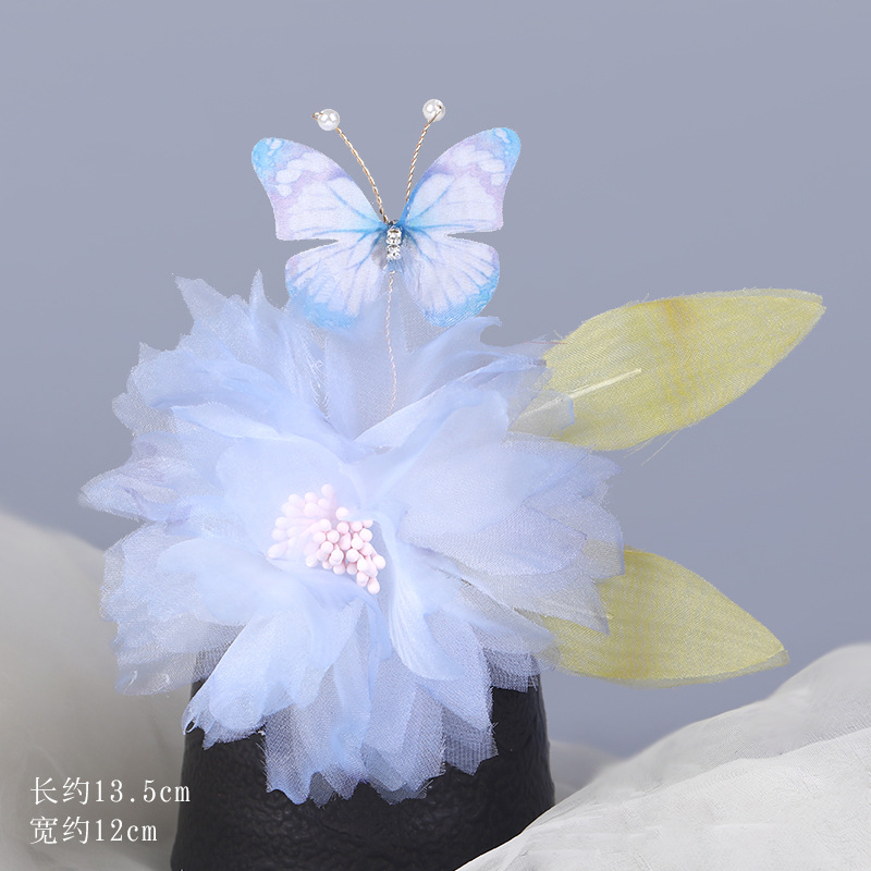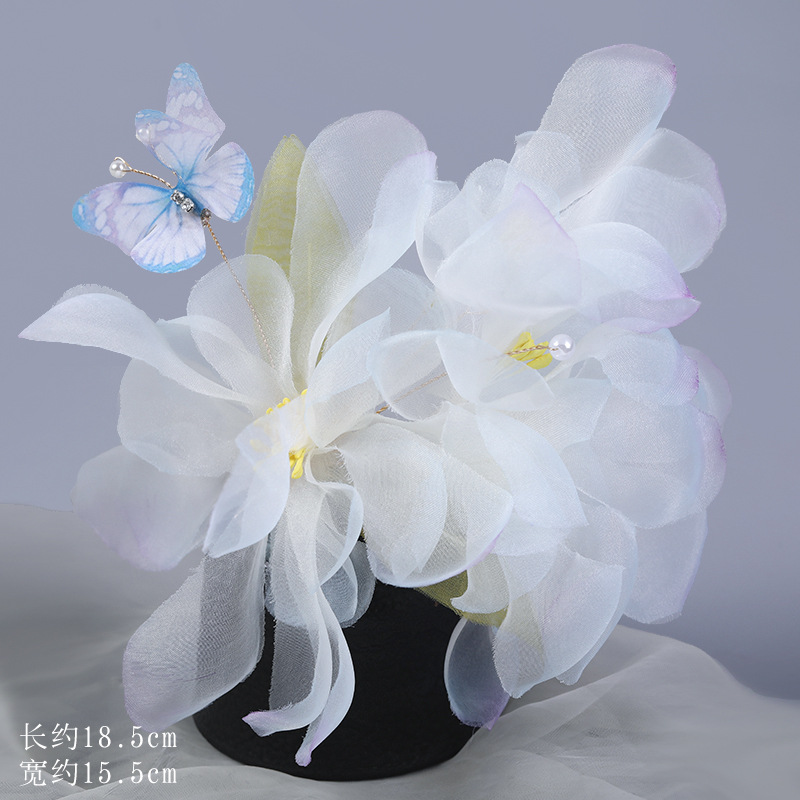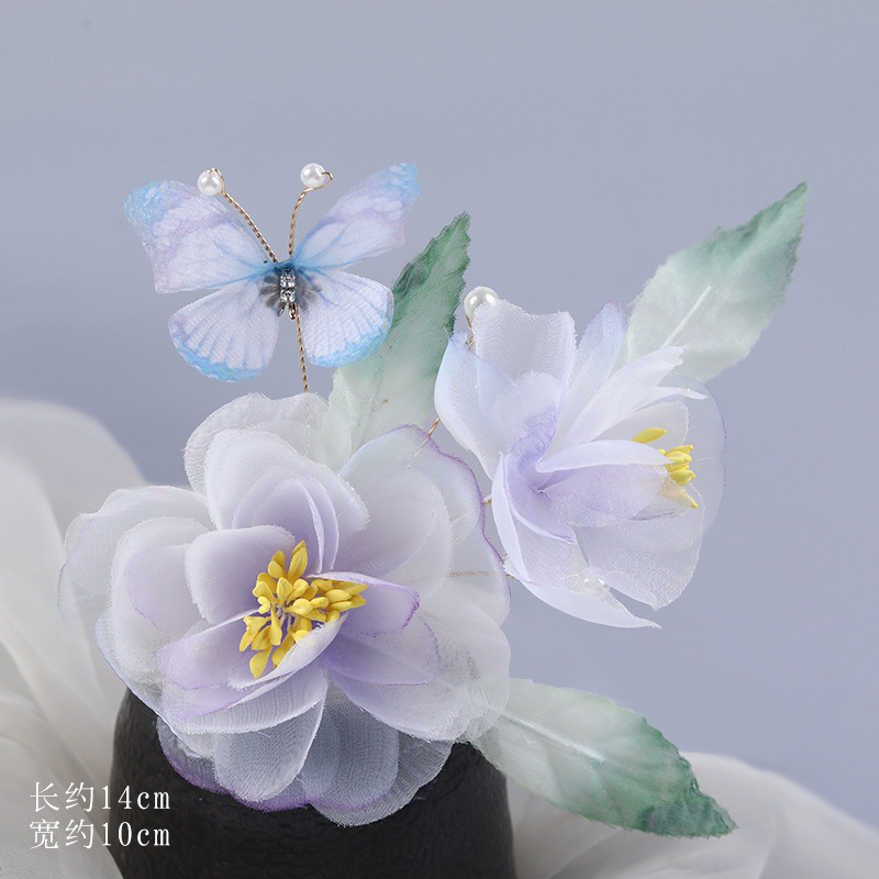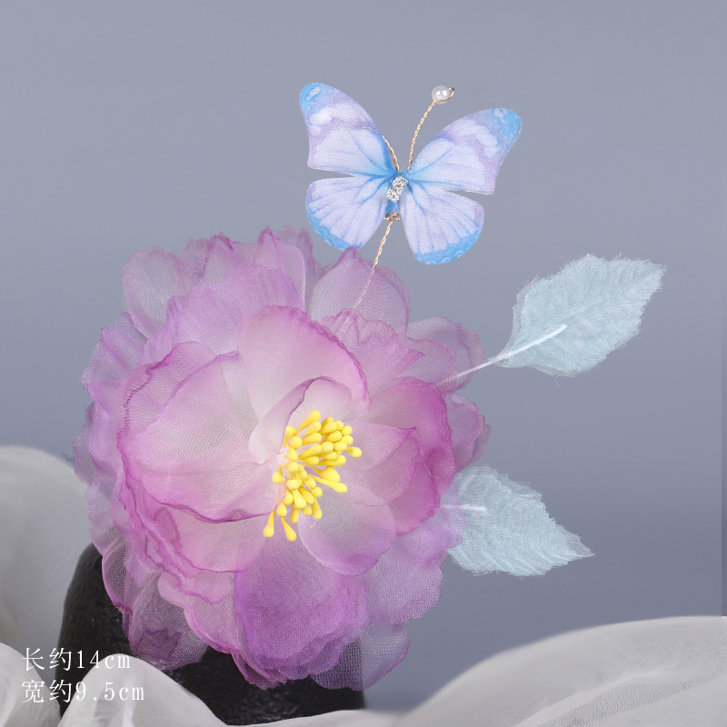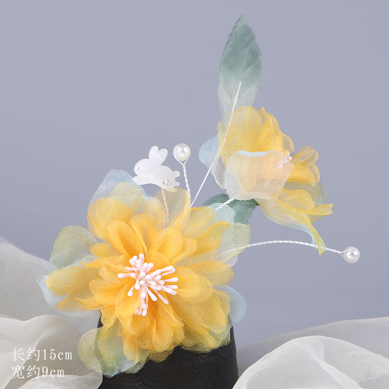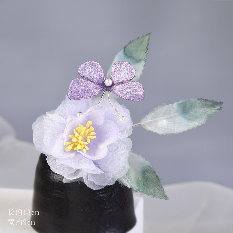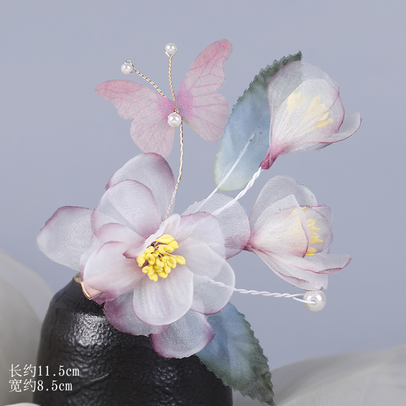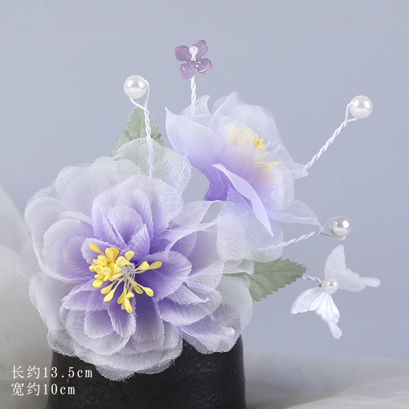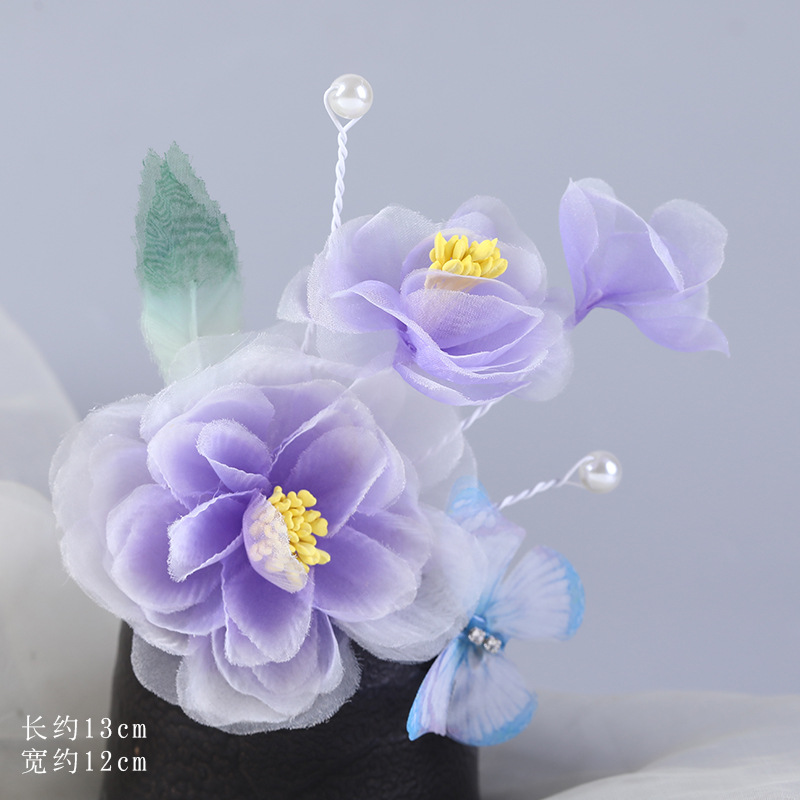 그라데이션 핫플라워 원사 헤어 액세서리, 앤티크 스타일 머리핀, 실크 플라워 헤드피스, 한복 머리핀, U핀, 앤티크 스타일 아동 액세서리스토어 가기