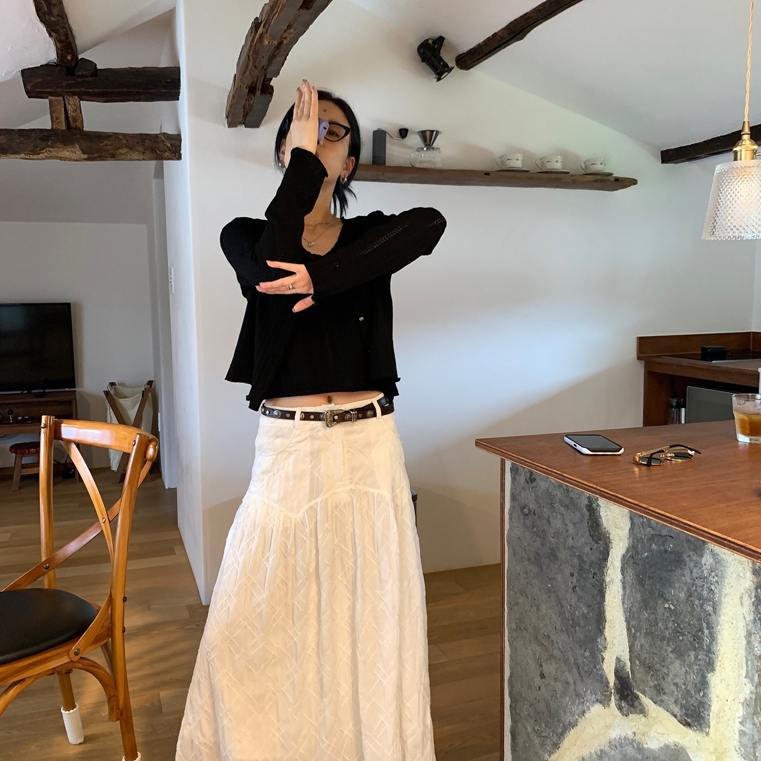 여성을 위한 크로스보더 Feifei Fave 독점적인 입체 격자 무늬 컷 꽃 흰색 스커트 봄 여름 새로운 패션 디자인