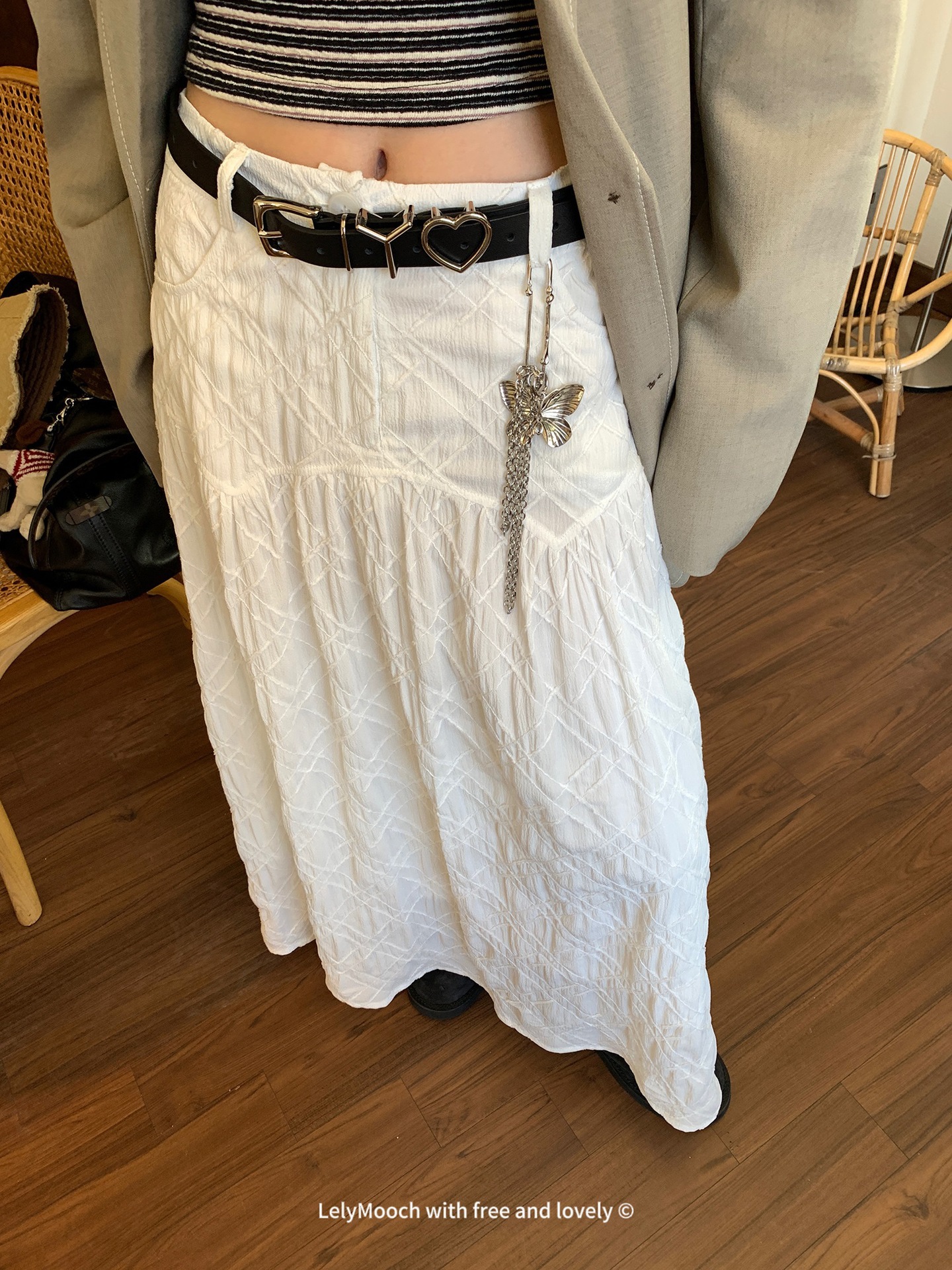여성을 위한 크로스보더 Feifei Fave 독점적인 입체 격자 무늬 컷 꽃 흰색 스커트 봄 여름 새로운 패션 디자인스토어 가기