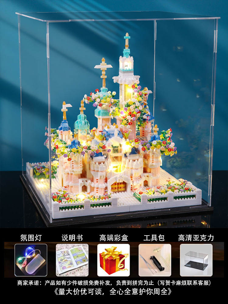 • 가든 디즈니 프린세스 캐슬 + 고급 아크릴 + 주변 조명 + 도구 키트