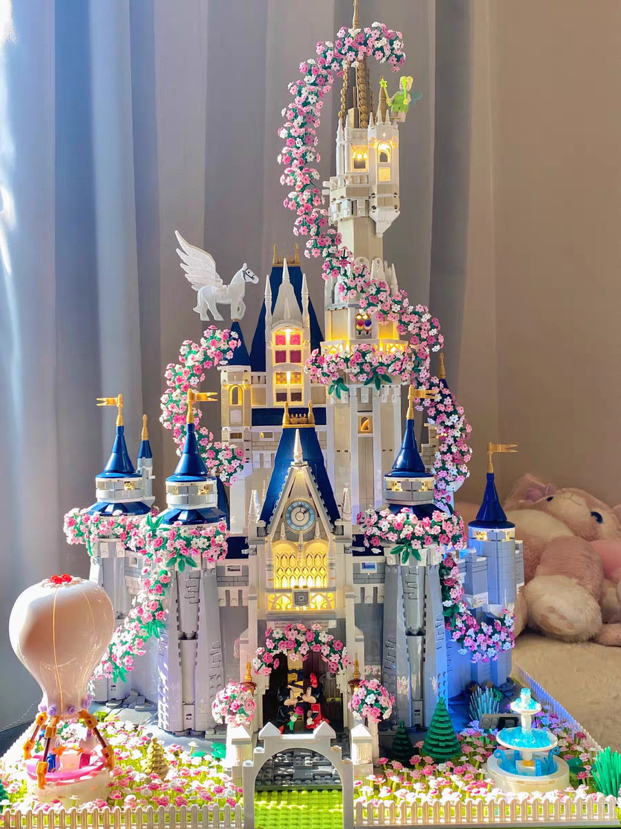 • 매너 디즈니 사쿠라 성 + 고급 아크릴 + 주변 조명 + 도구 키트 + 미니피겨 5개