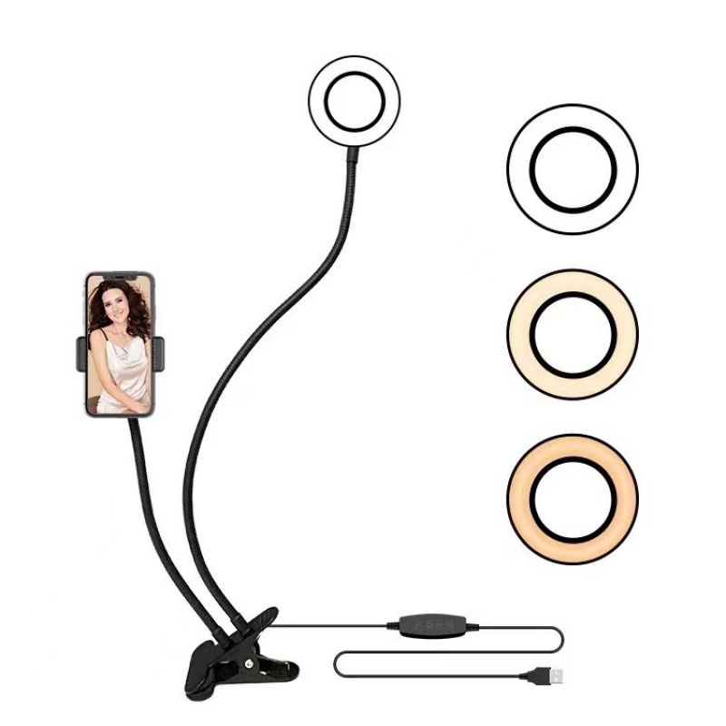 금속 2-in-1 필 라이트 호스 휴대폰 홀더 셀카 라이브 라이트 세트(클립 포함) 테이블 램프 침대 옆 램프